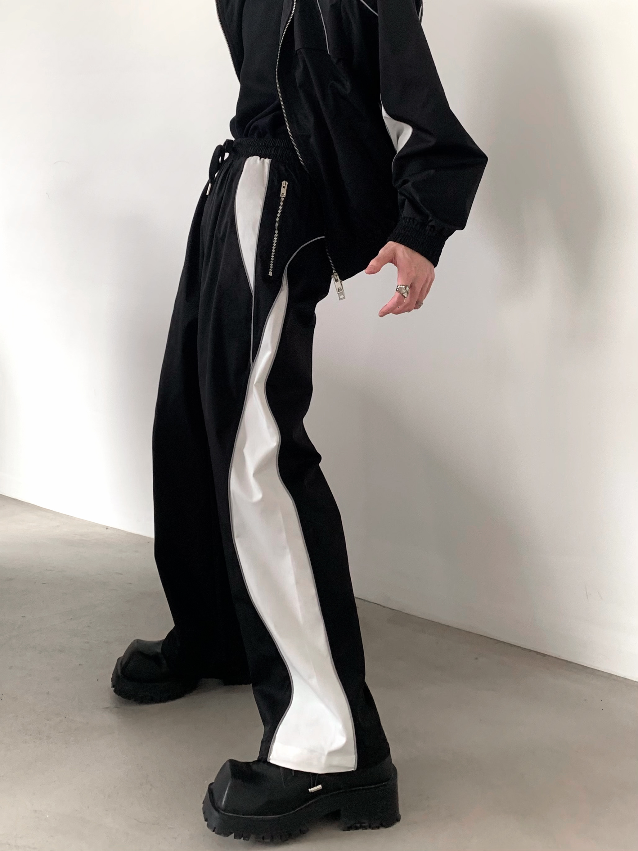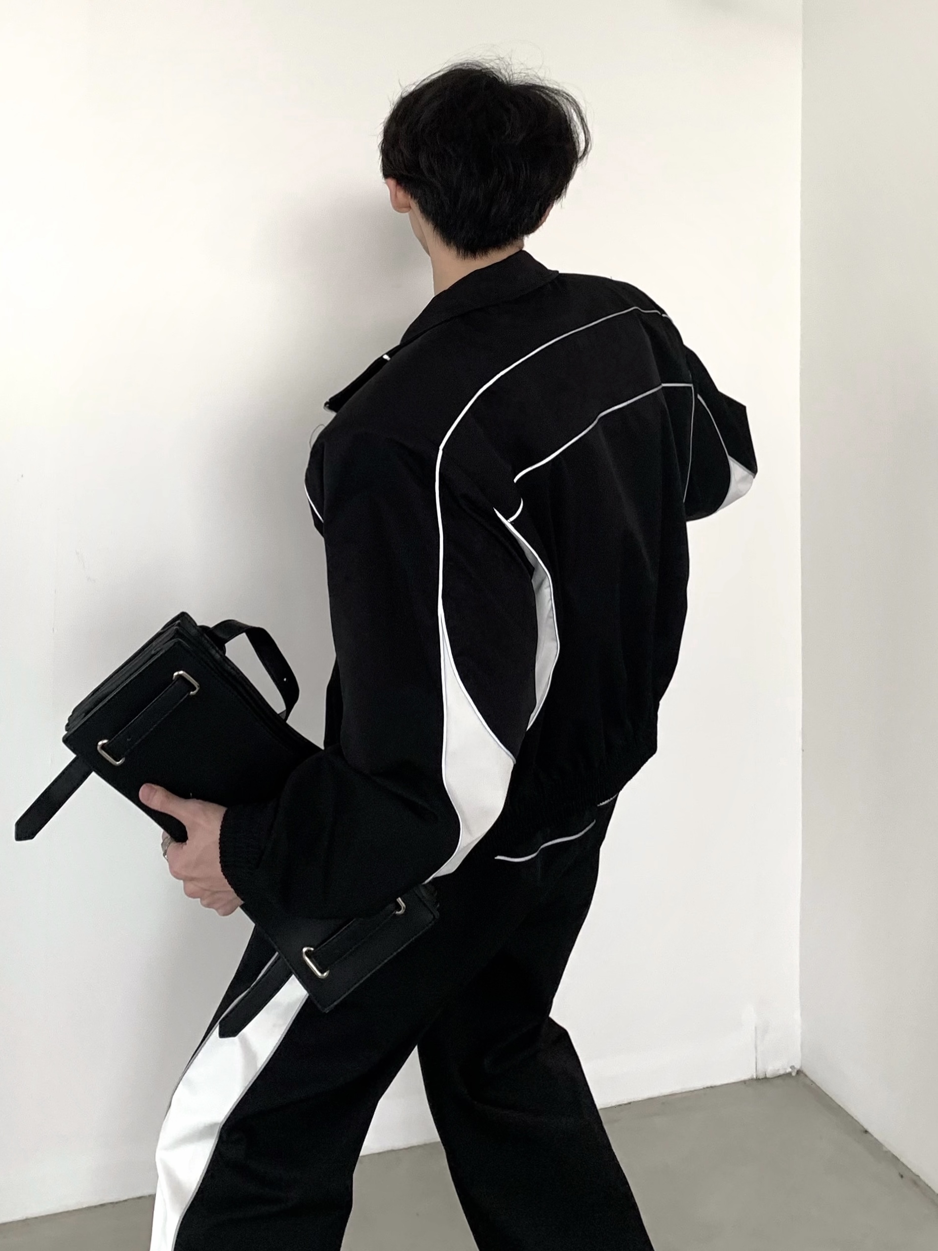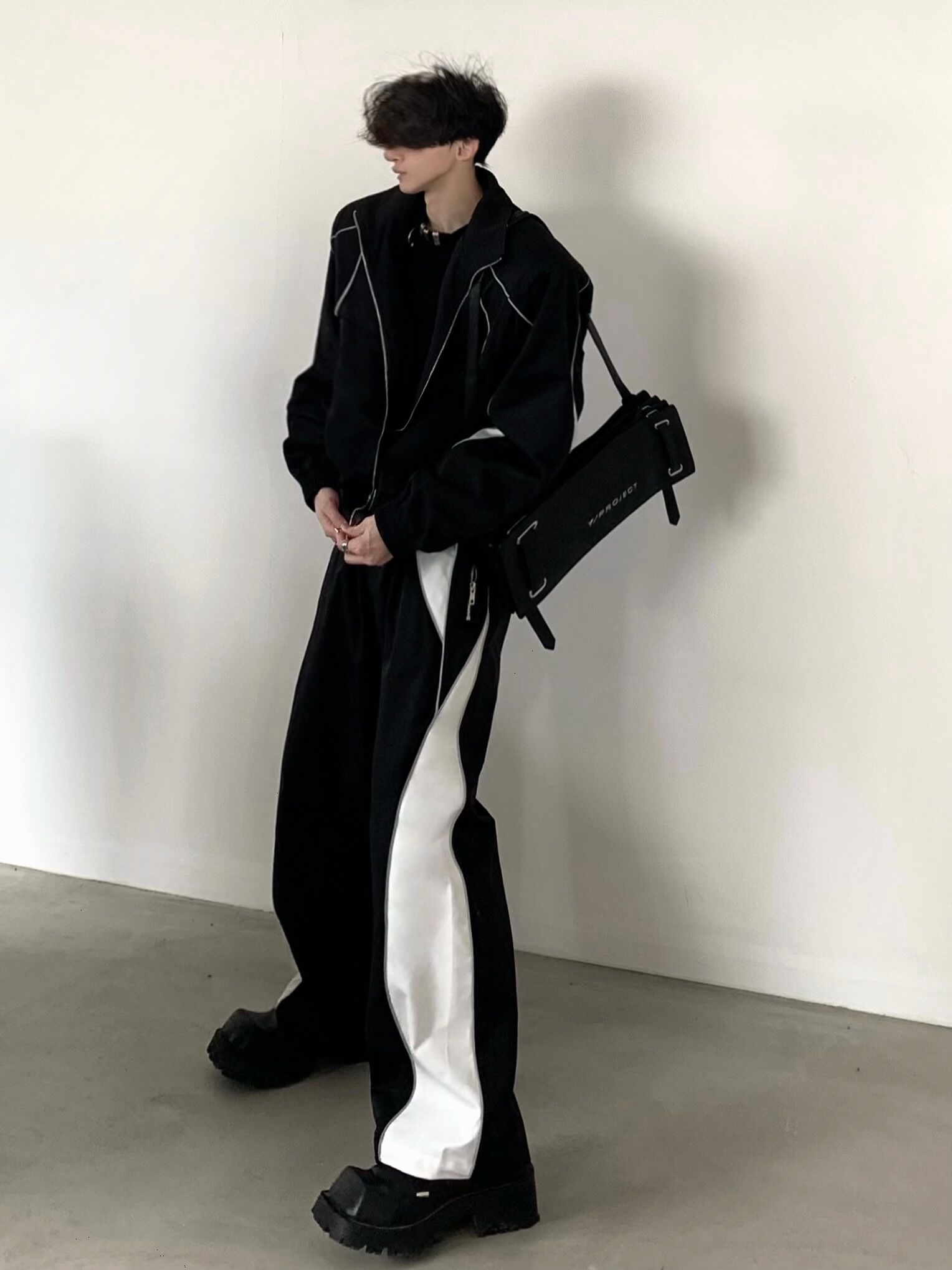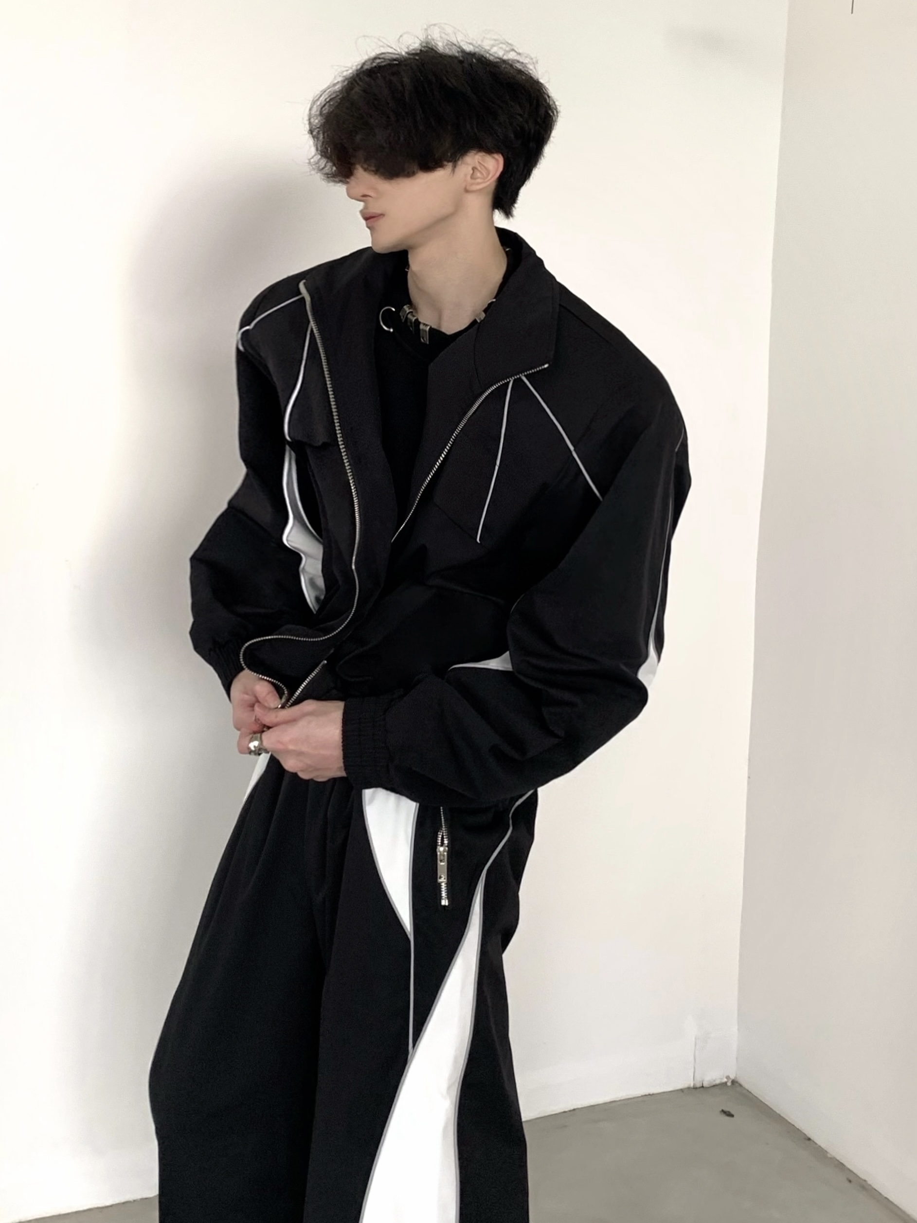Zipper Shoulder Pad Sporty Jacket & Wide-Leg Pants Setup WN5973