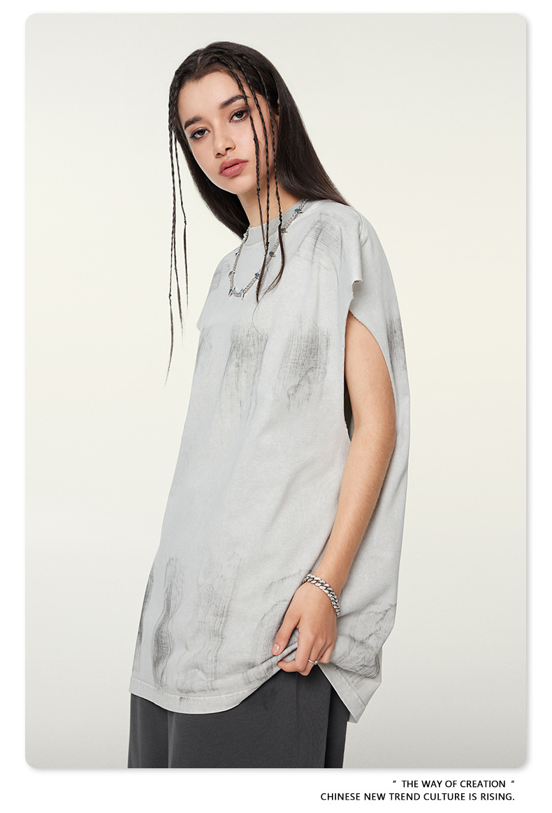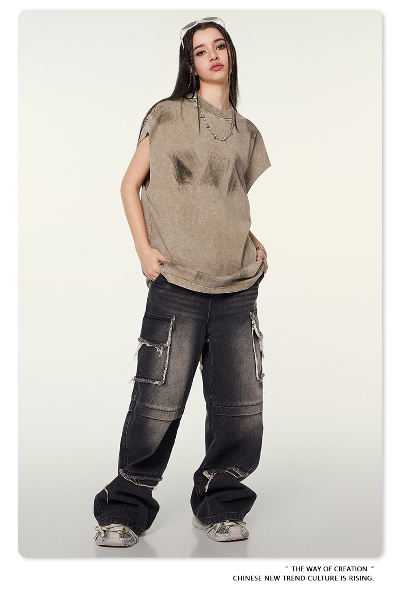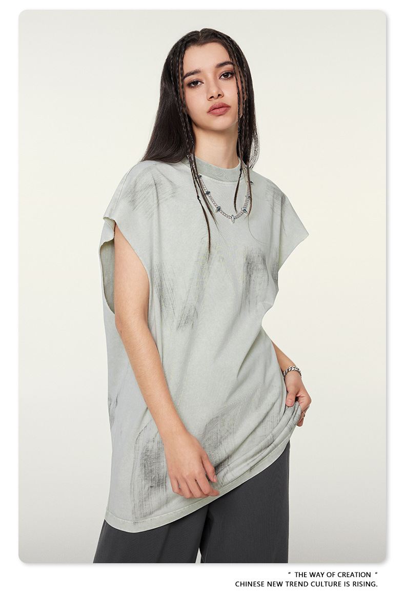 Washed Damage Oversize Tank Top T-shirt WN6440