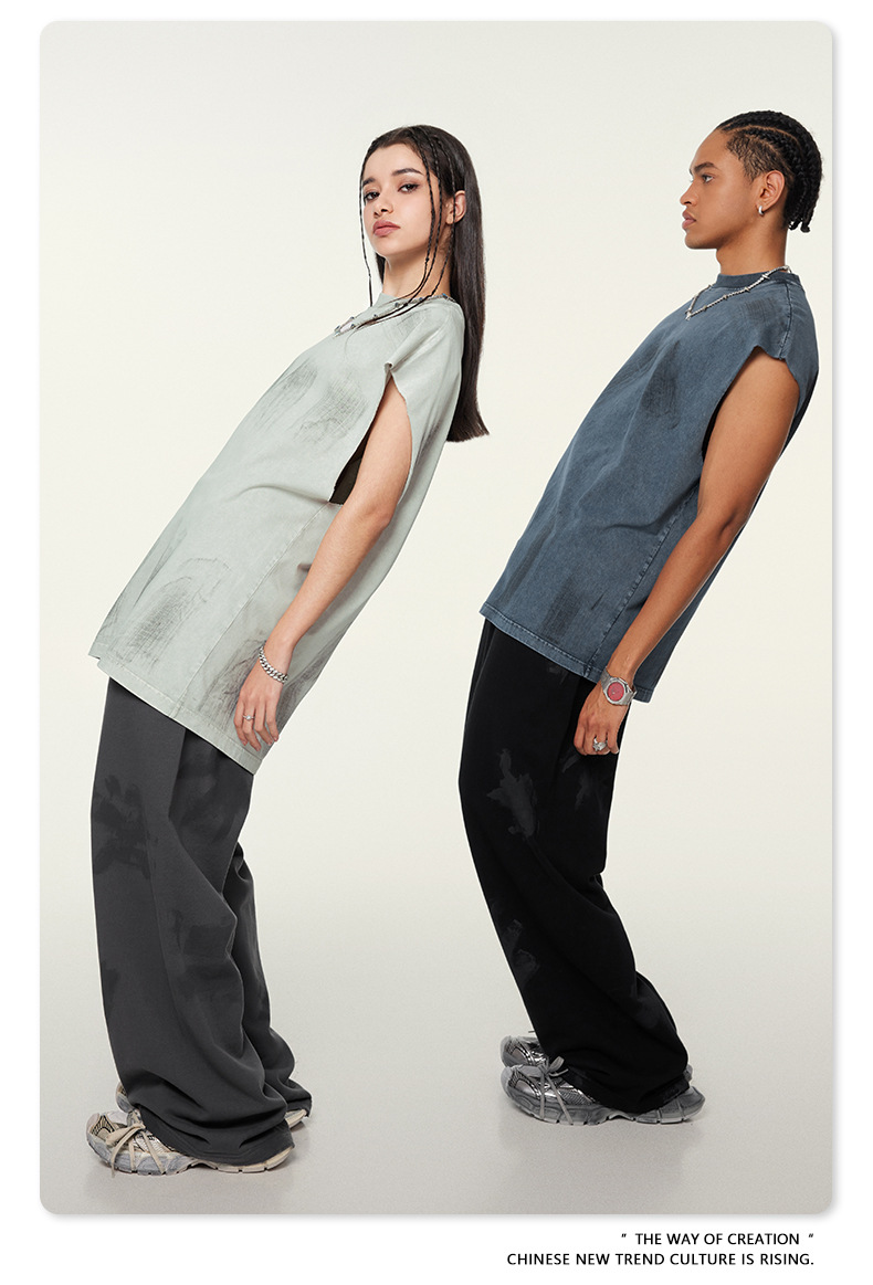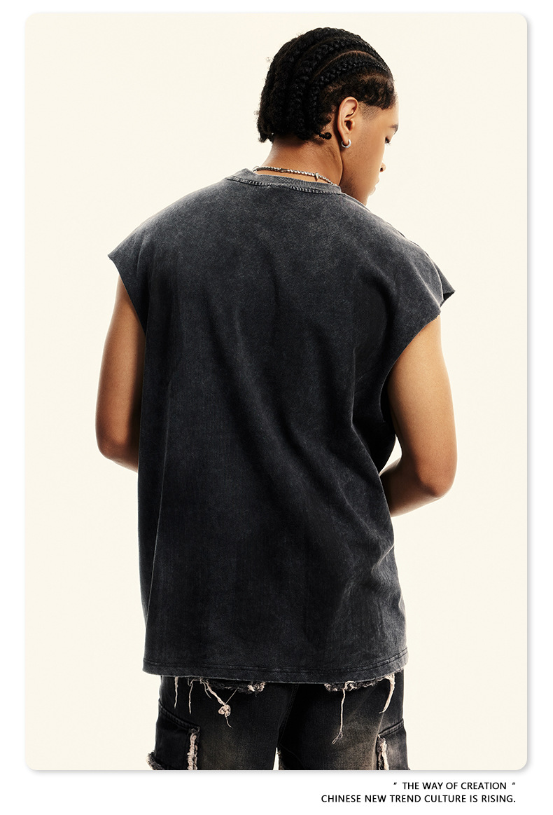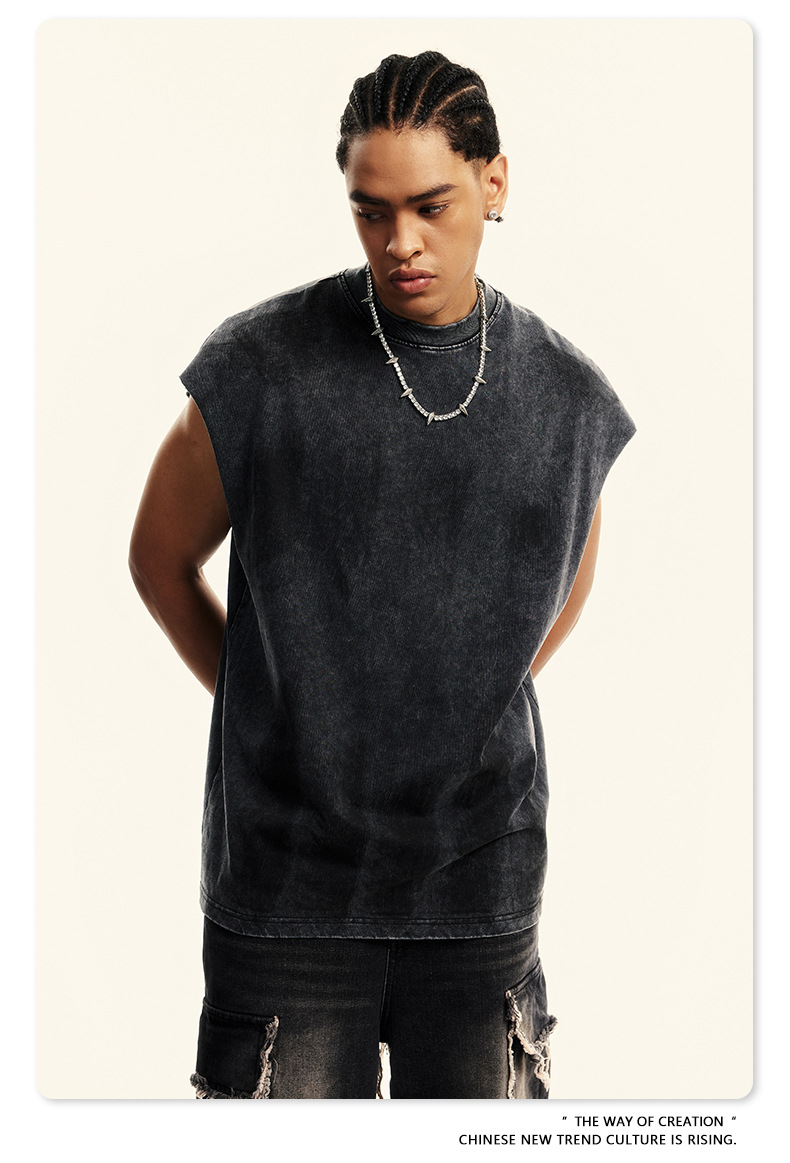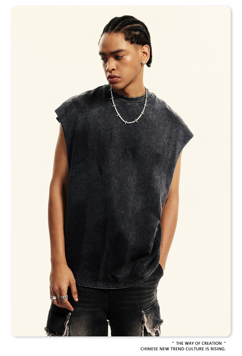 Washed Damage Oversize Tank Top T-shirt WN6440