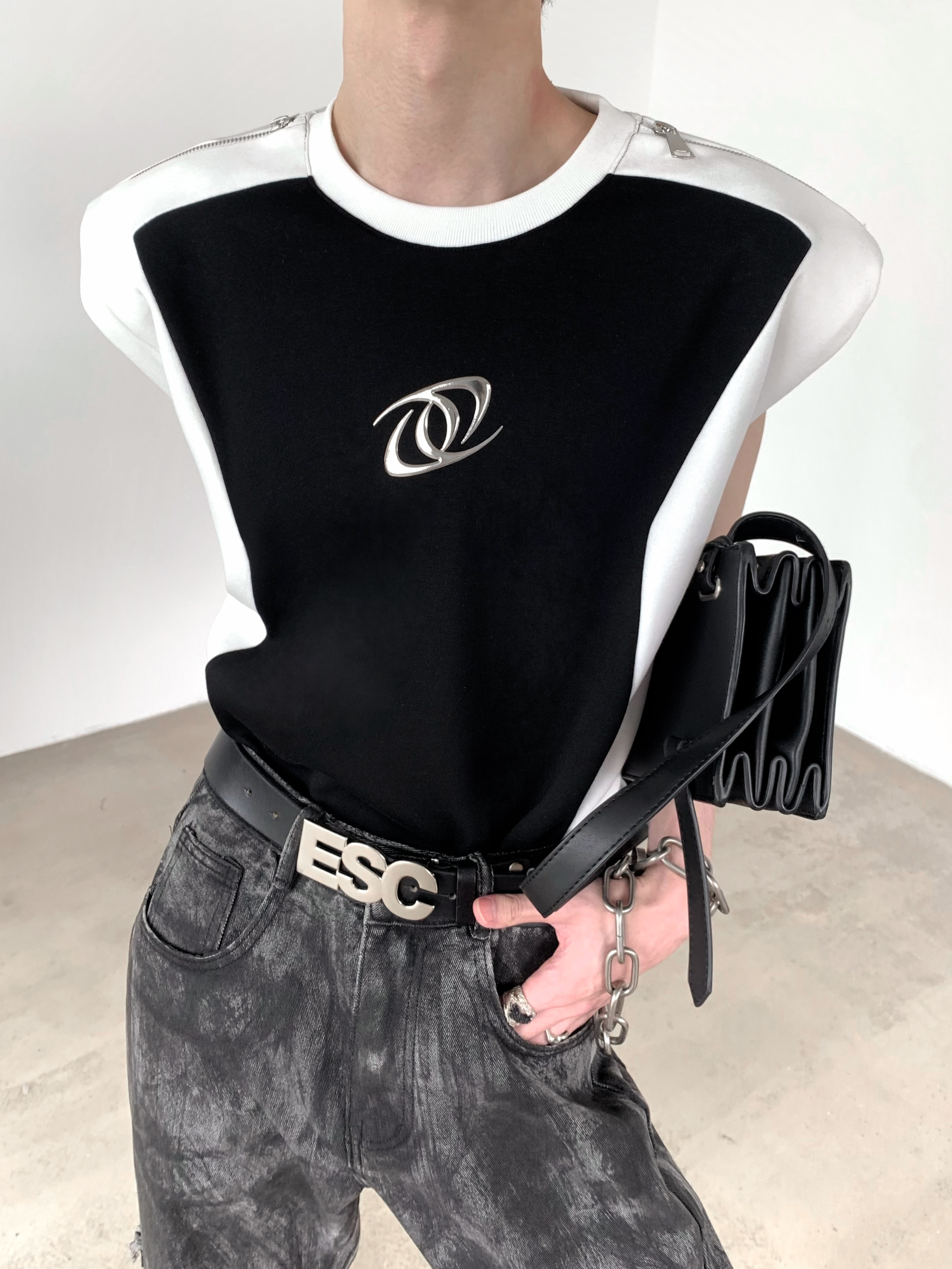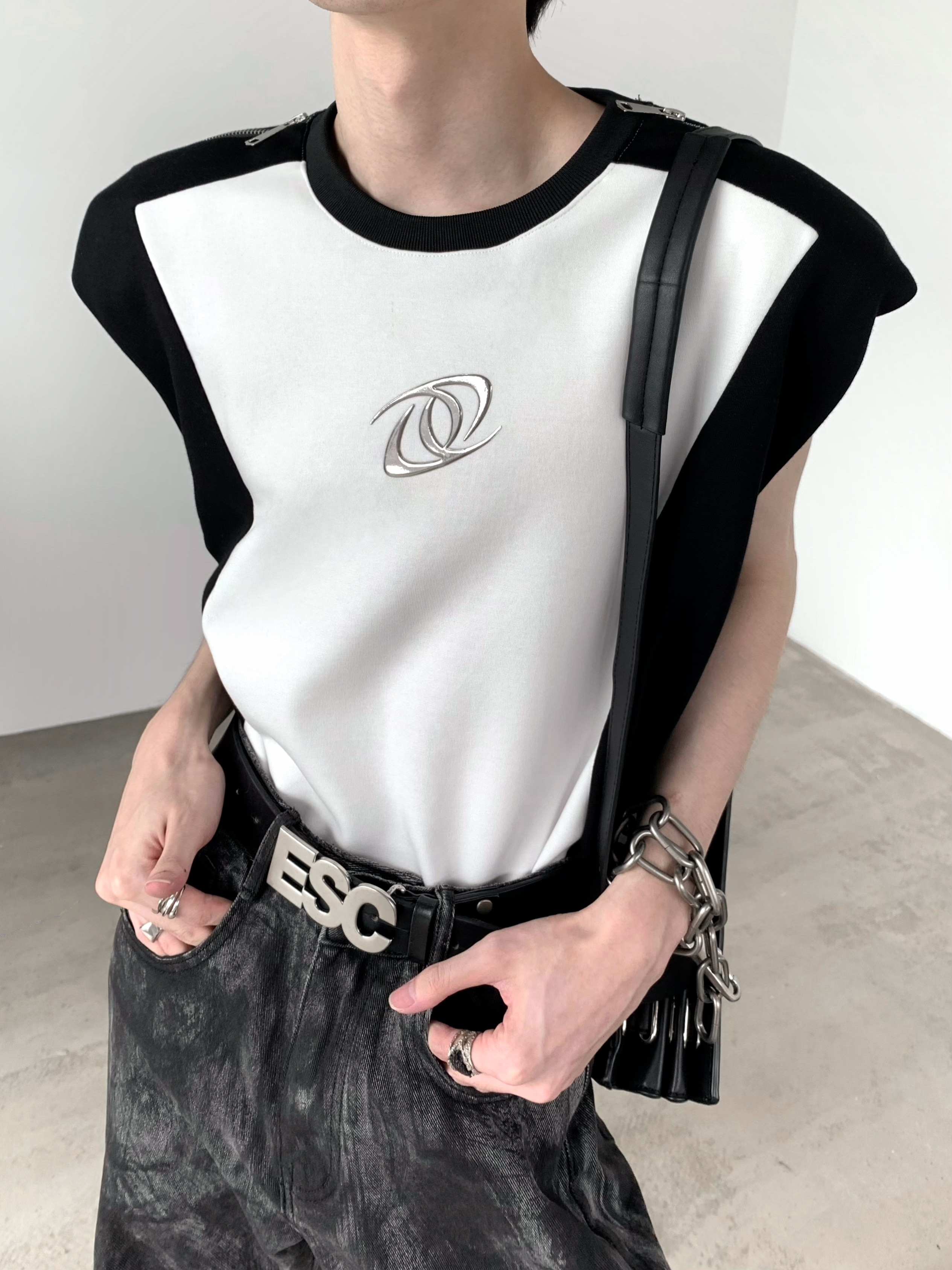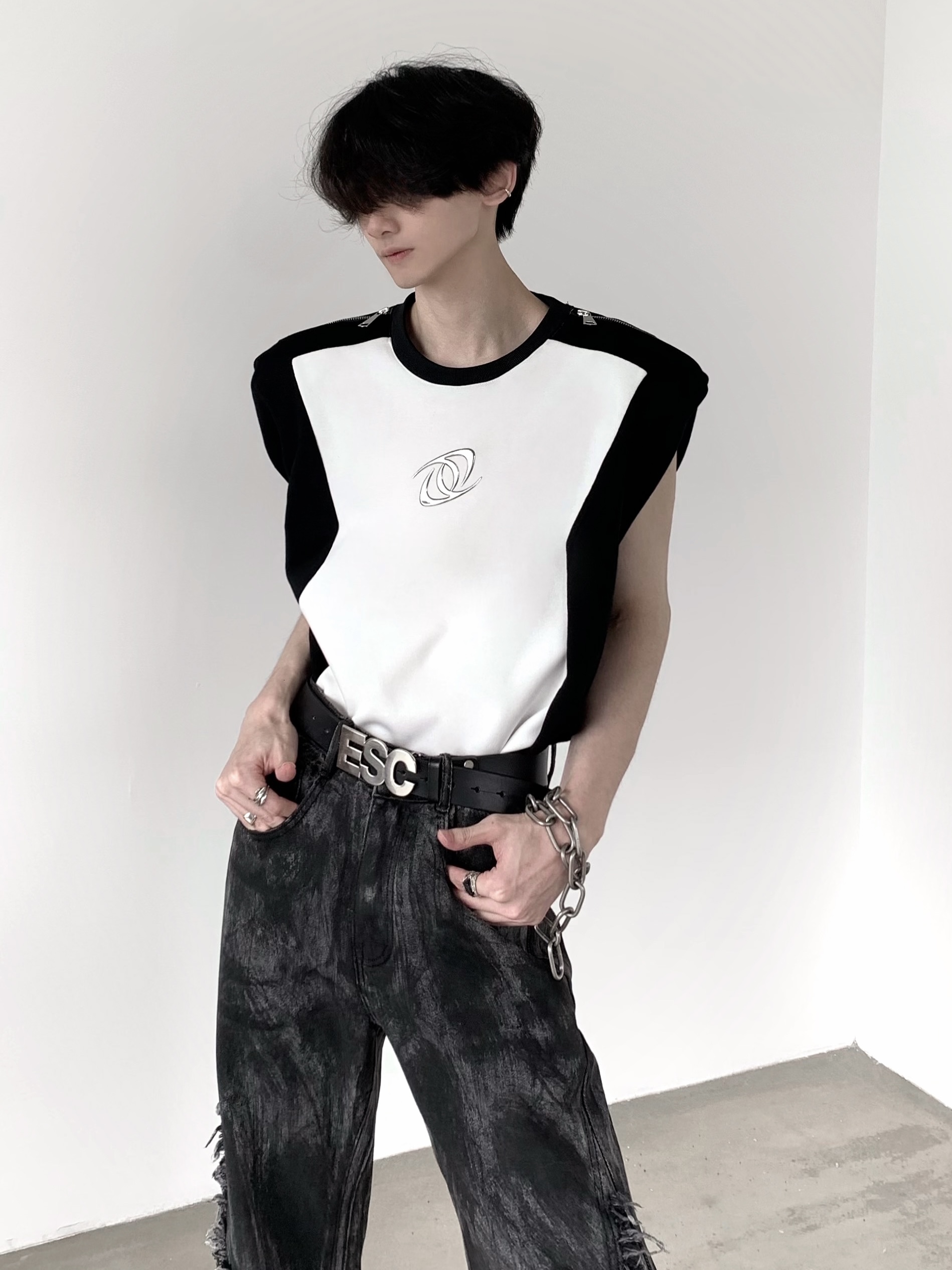 Patchwork Shoulder Pad Sleeveless T-shirt WN7057