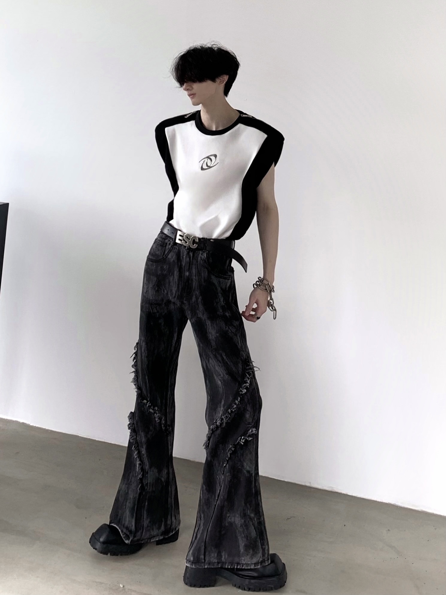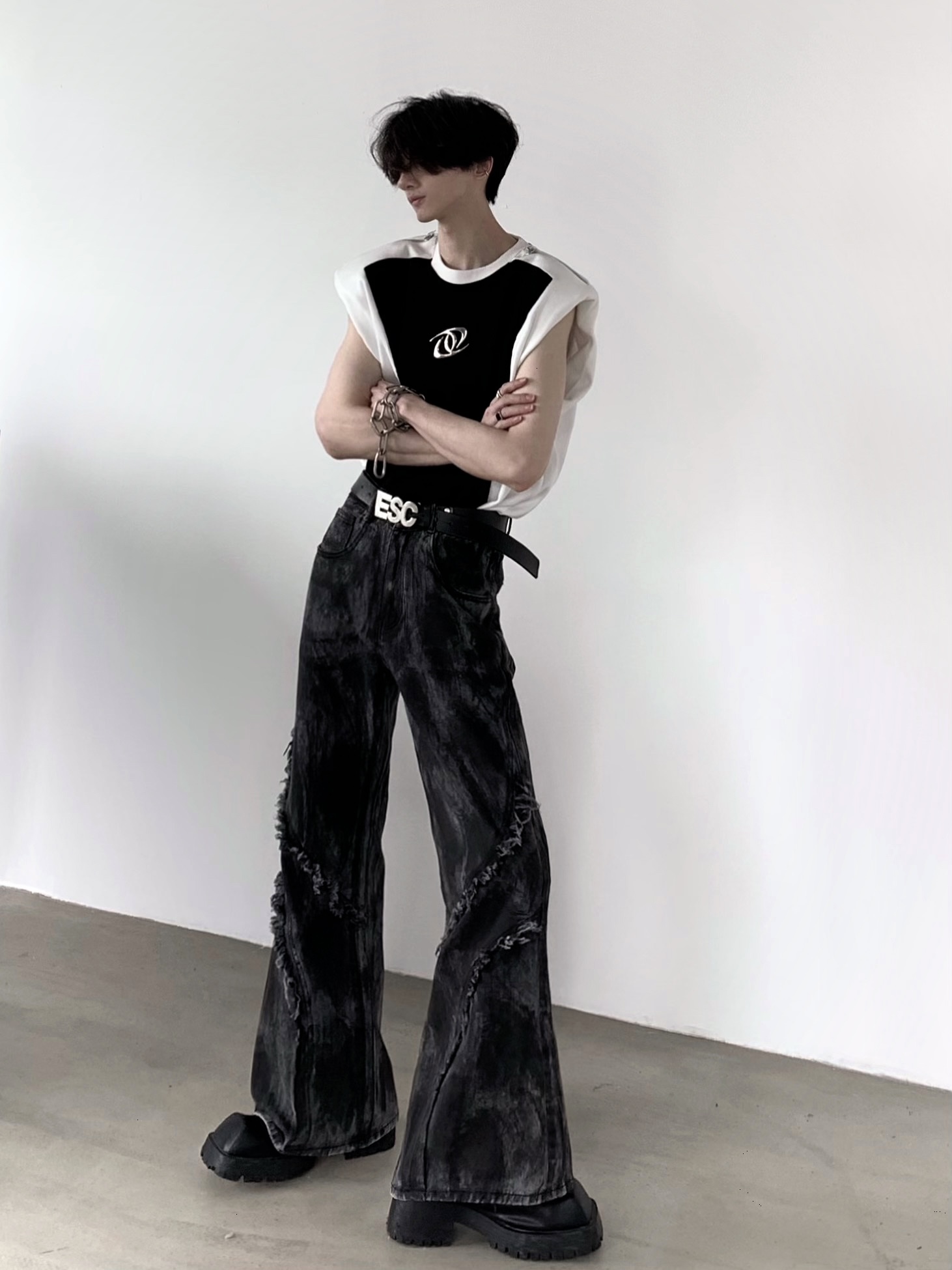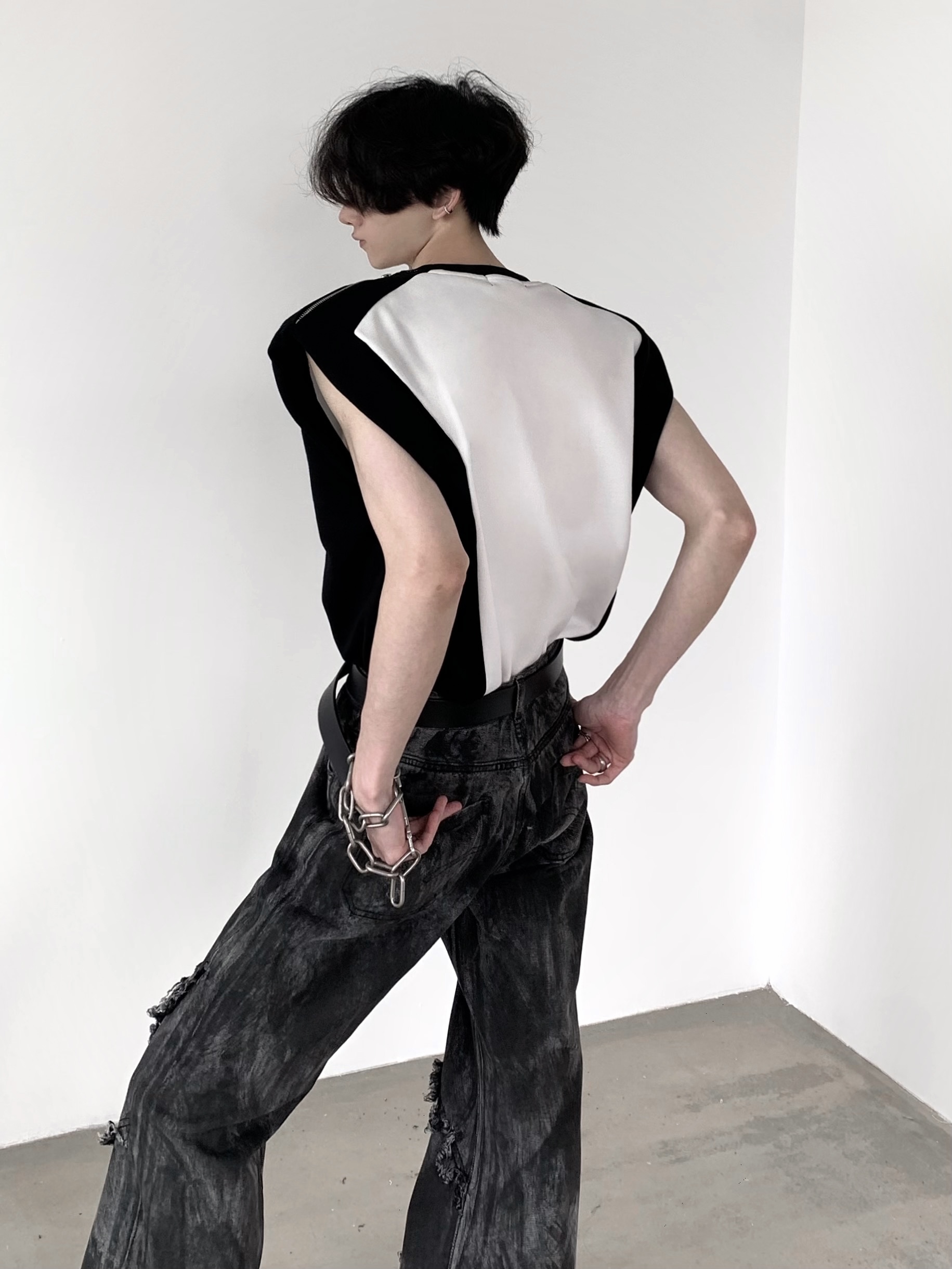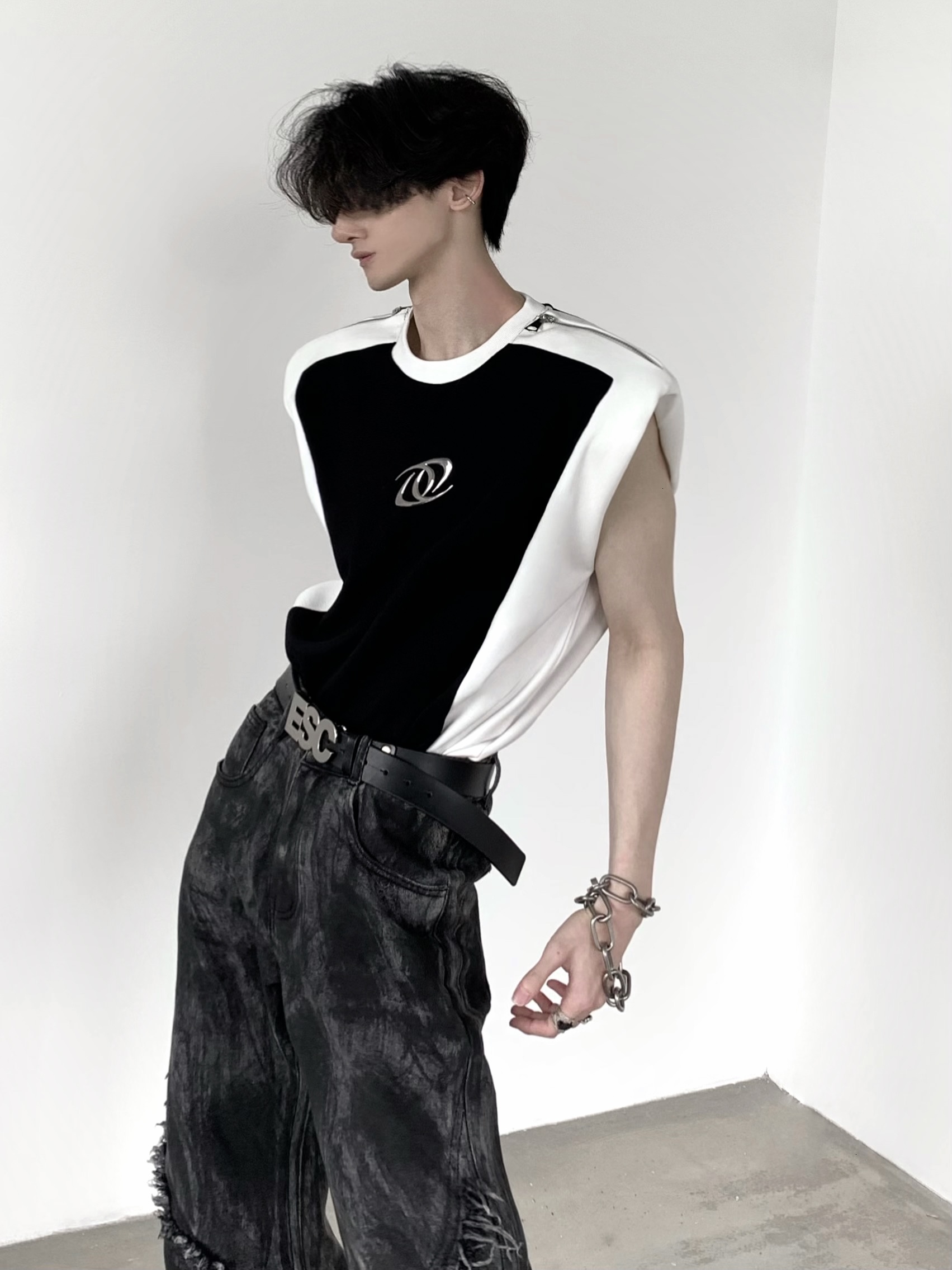 Patchwork Shoulder Pad Sleeveless T-shirt WN7057