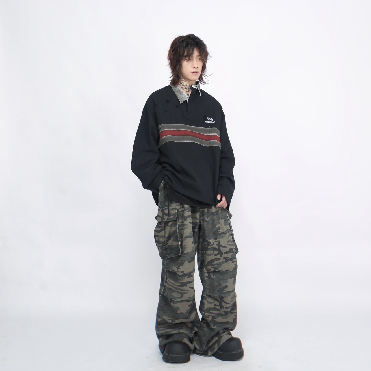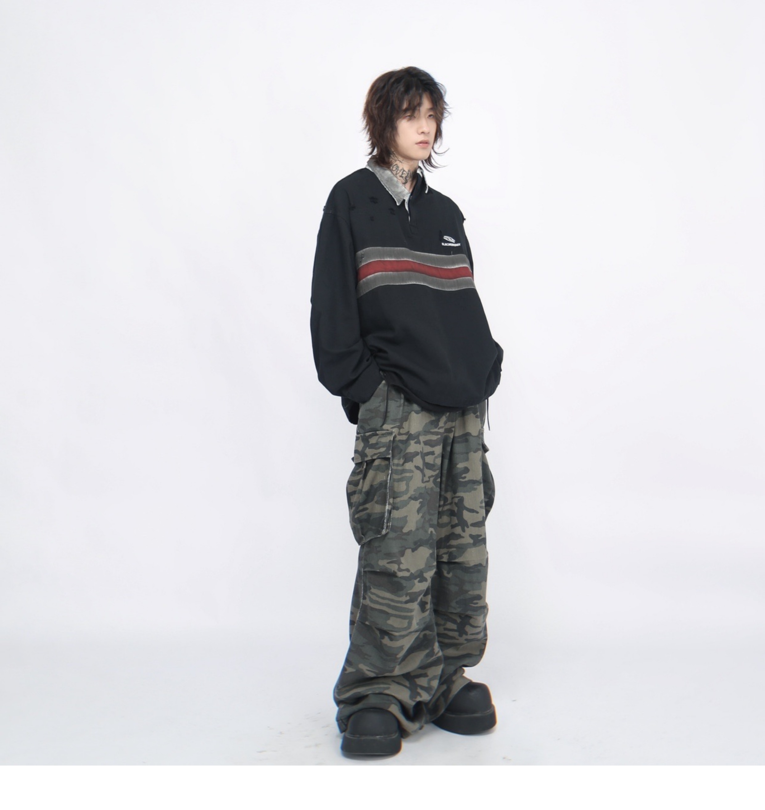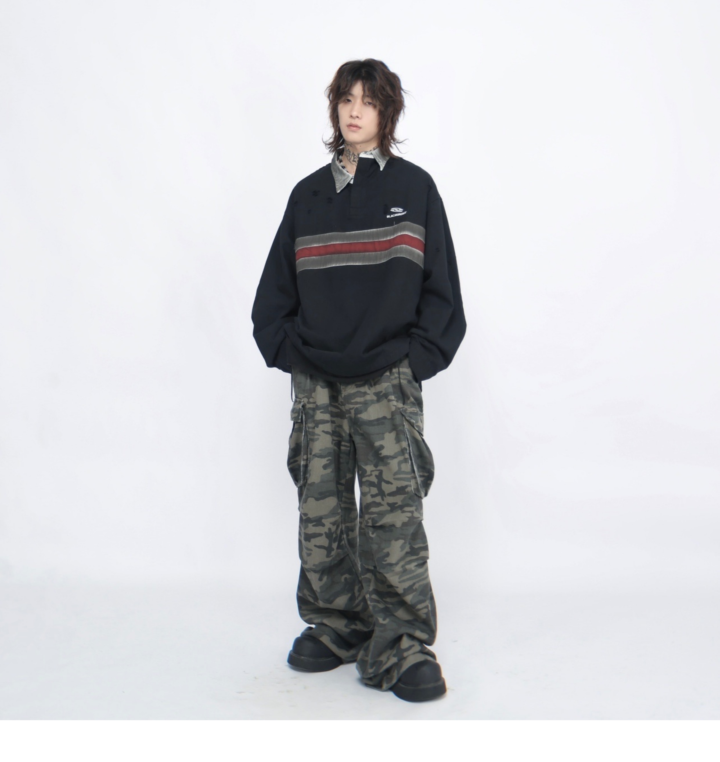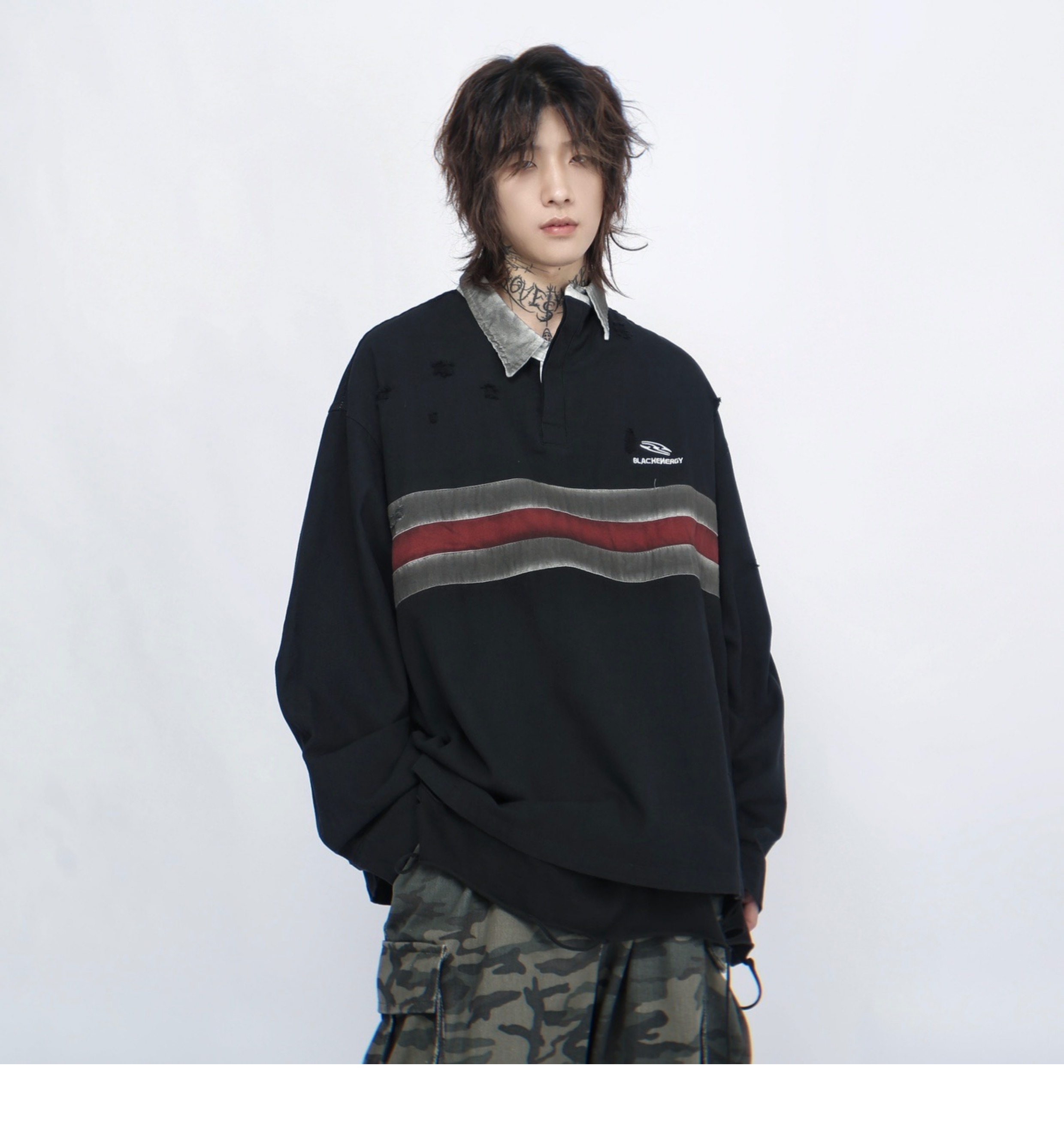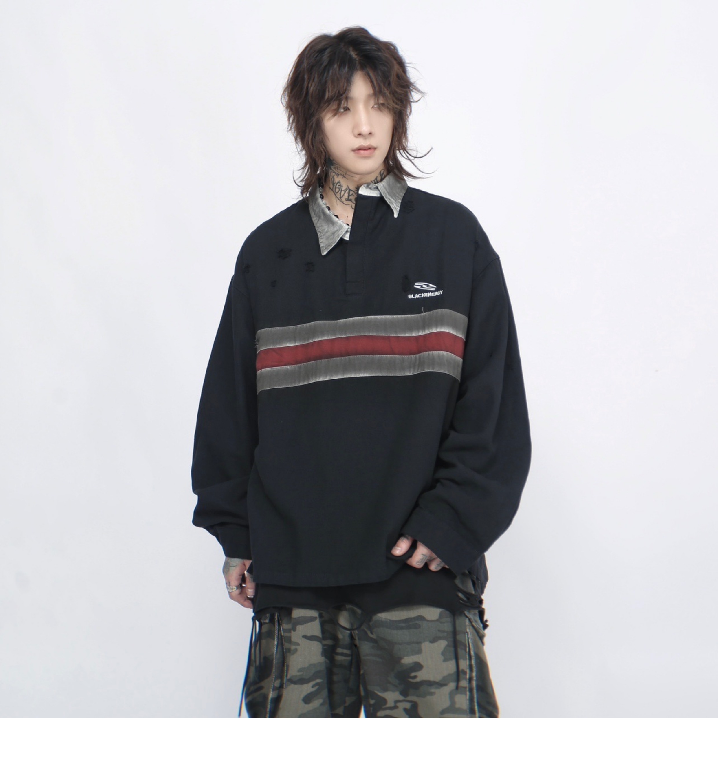 Irregular Long Sleeve Polo Sweatshirt WN7714
