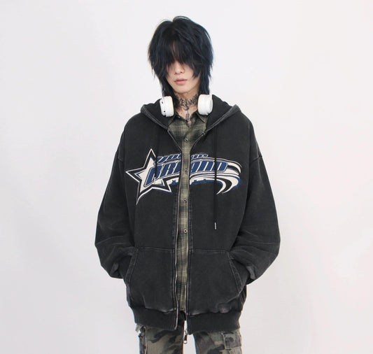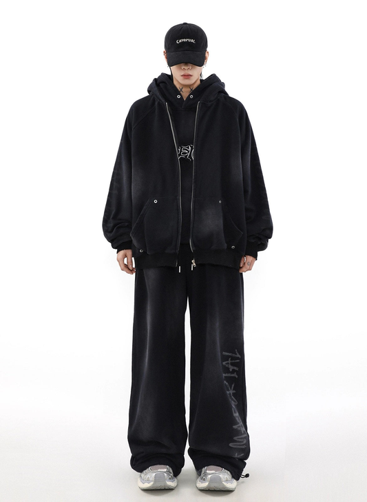 Oversize Patch Graffiti Zipper Hoodie & Wide-leg Graffiti Sweatpants Setup WN3043