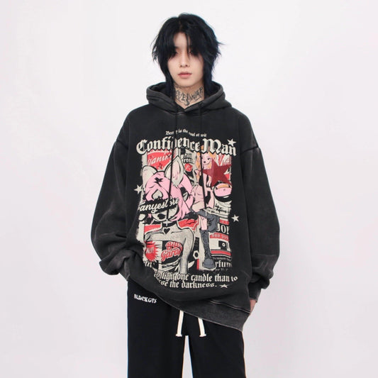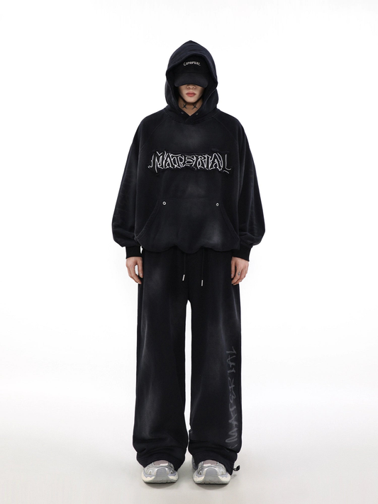 Oversize Patch Hoodie & Wide-leg Graffiti Sweatpants Setup WN3041