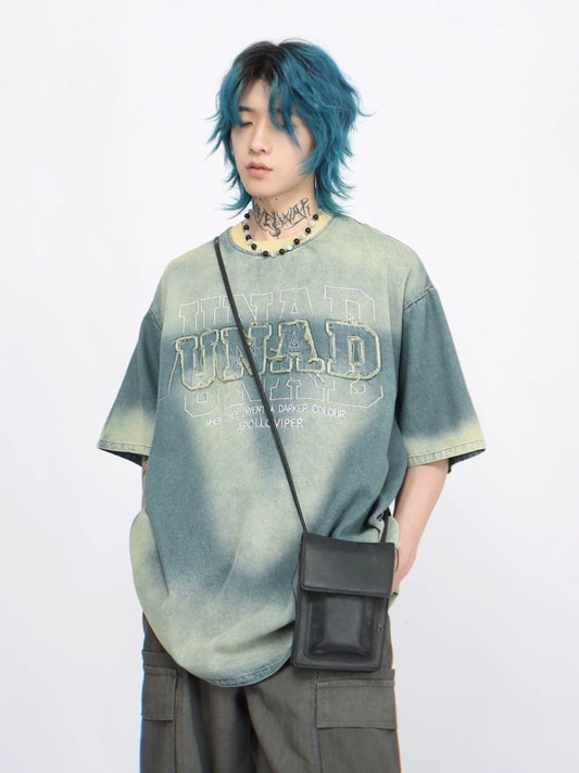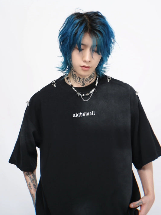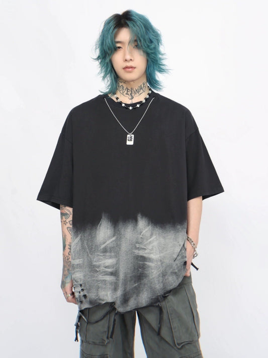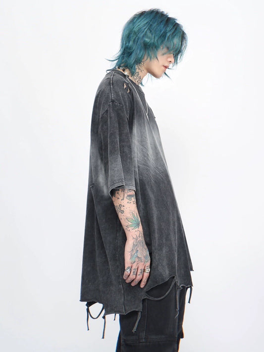 Washed Gradient Damage Oversize Short Sleeve T-Shirt WN5849
