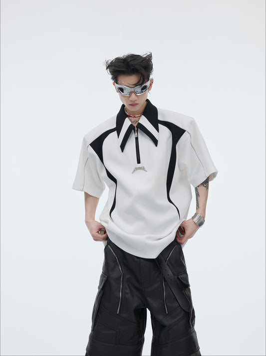 Half Zipper Metal Decoration Polo Shirt WN5607