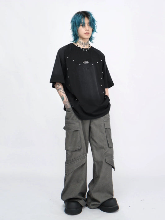 Metal Rivet Design Oversize Short Sleeve T-Shirt WN5862