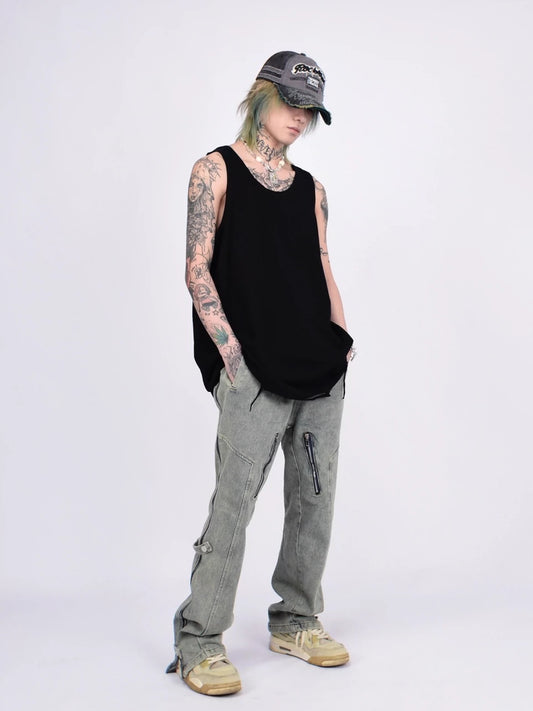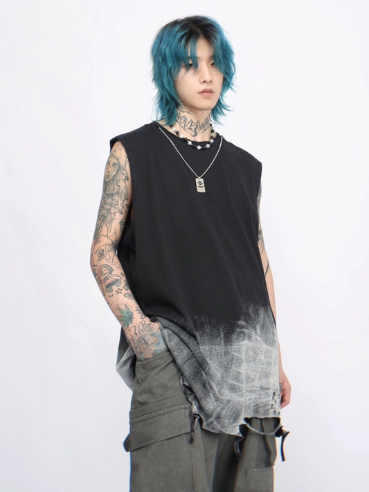 Gradient Damage Oversize Sleeveless T-Shirt WN5868