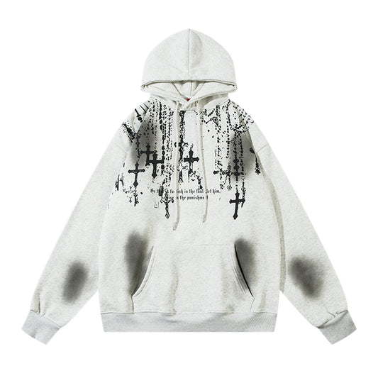 Suede Embossed Graffiti Zipper Hoodie WN11201