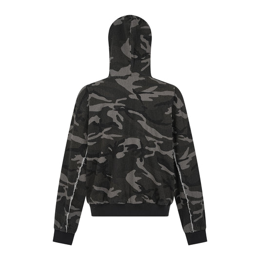 Camouflage Raw-Edge Zipper Hoodie WN11269