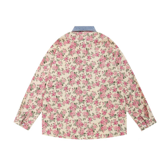 Floral Corduroy Denim Collar Long Sleeve Shirt WN11251