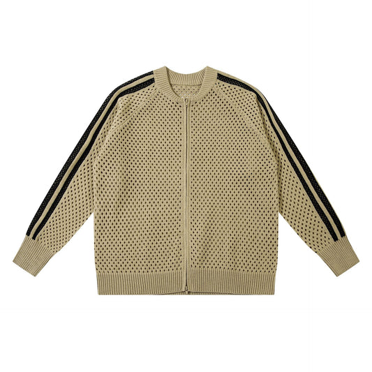Striped Hollow-Out Zipper Knit Cardigan WN11272