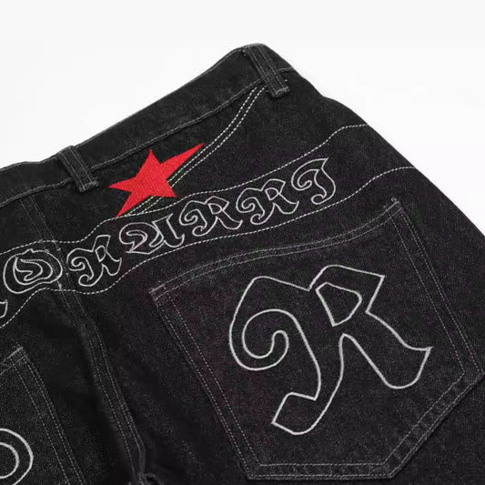 Gothic Embroidery Straight-Leg Denim Jeans WN11292