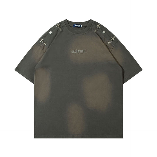 Washed Metal Buckle Short Sleeve T-Shirt WN11229