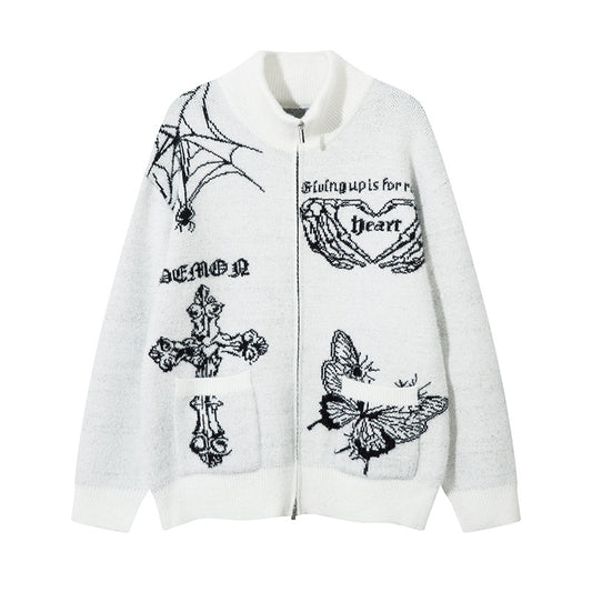 Butterfly Cross Design Oversize Zipper Knit Cardigan WN11170
