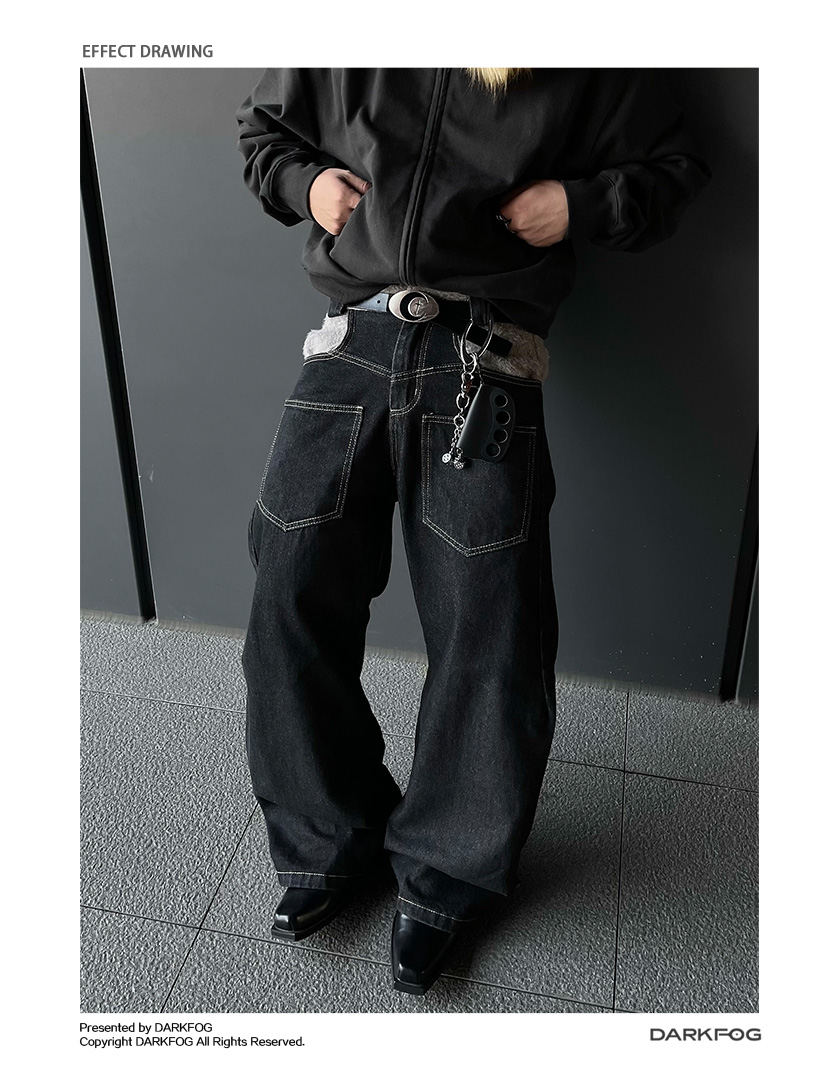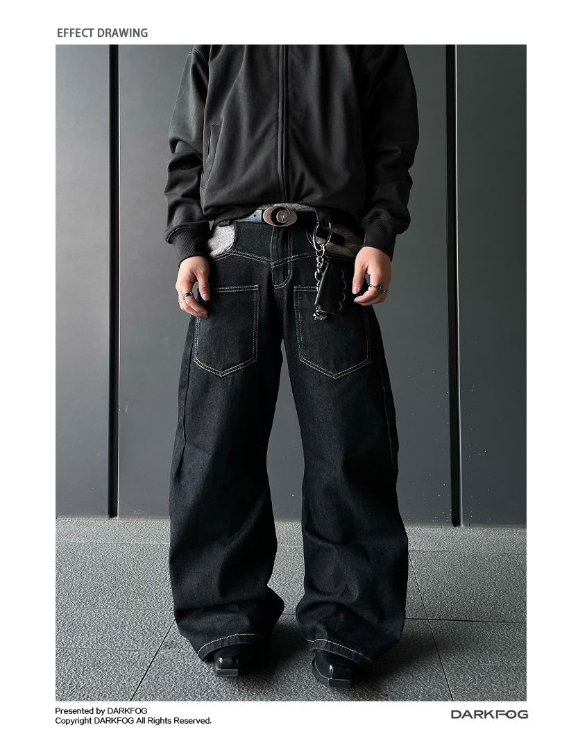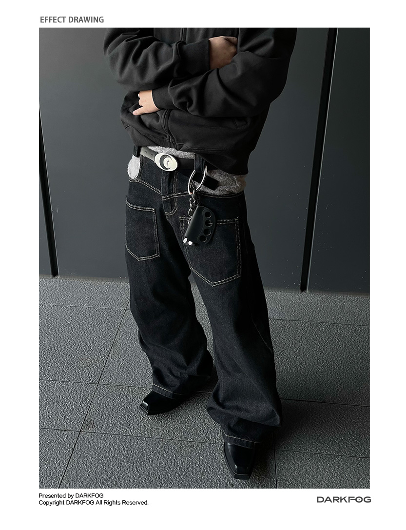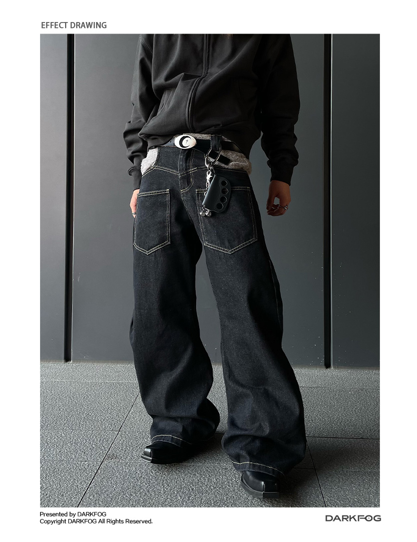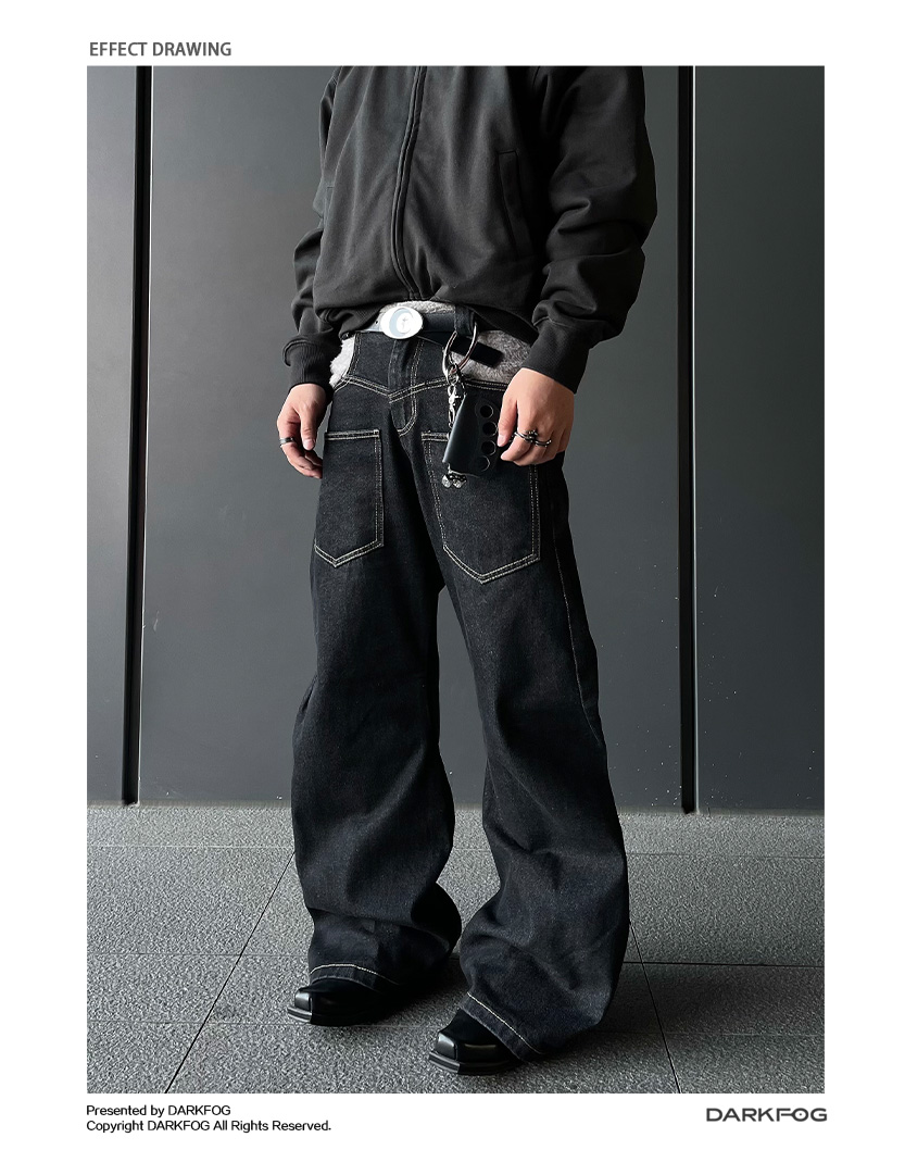 Reverse Stitching Curved Denim Jeans WN10858