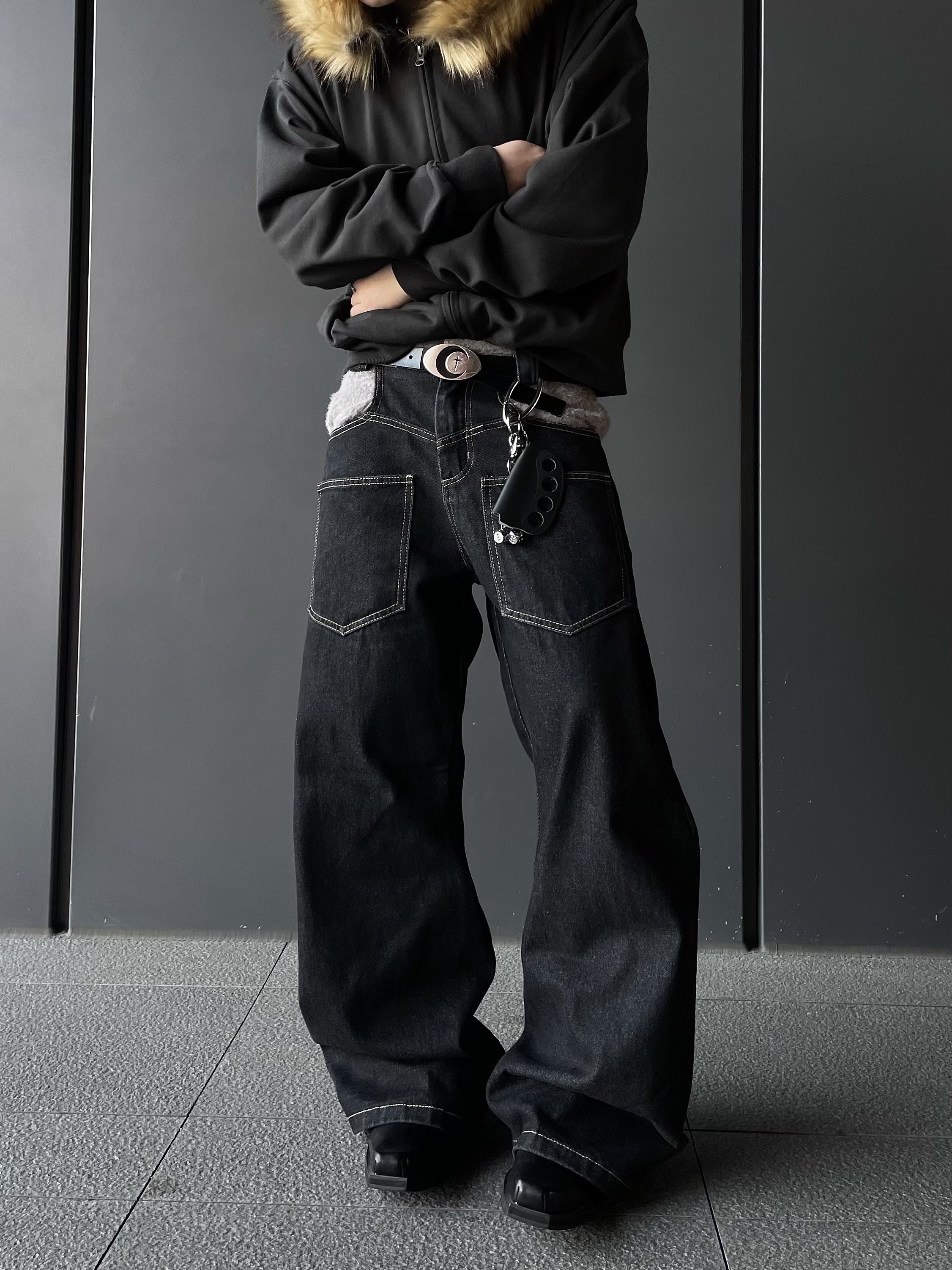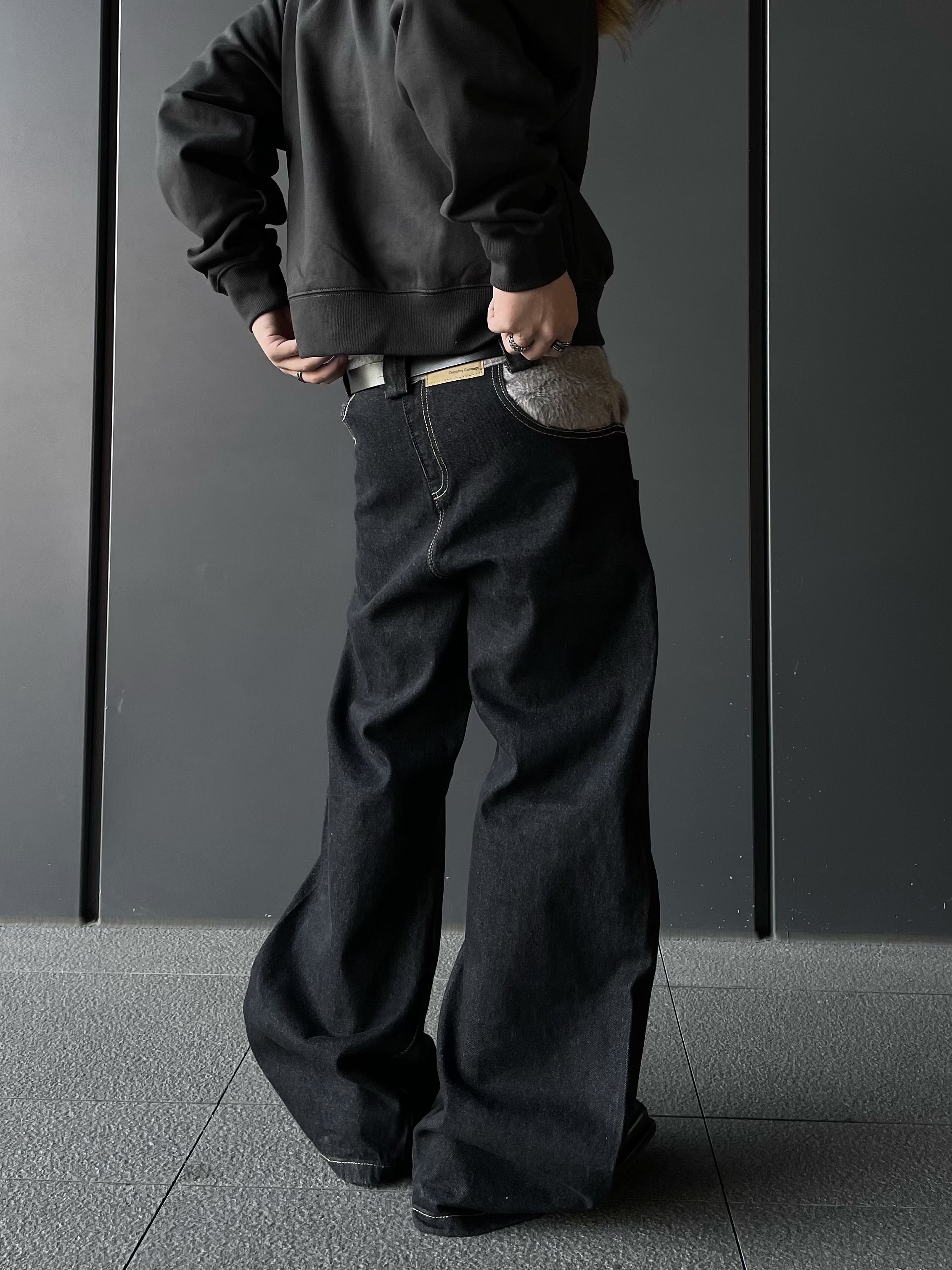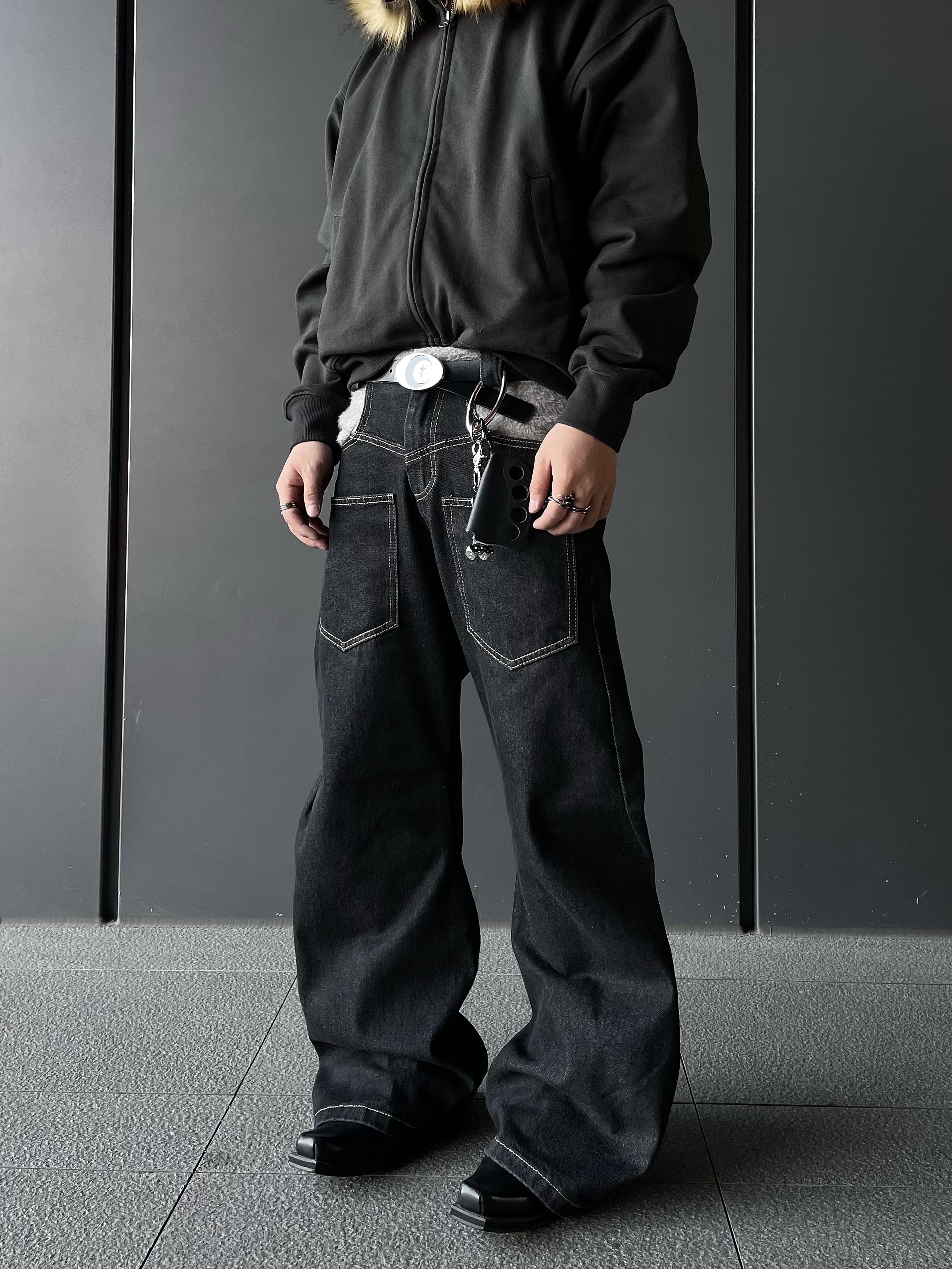 Reverse Stitching Curved Denim Jeans WN10858