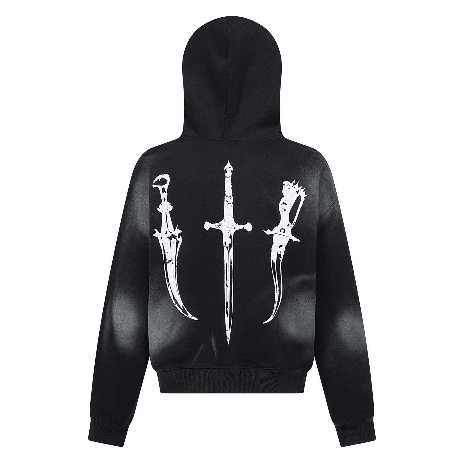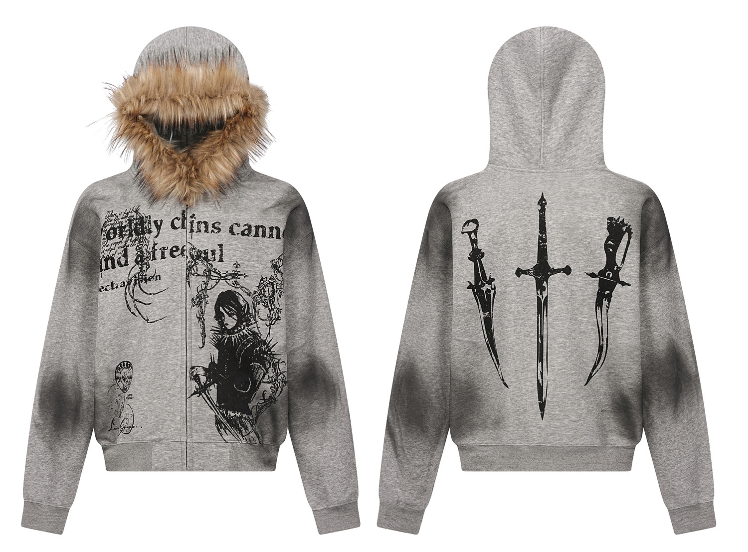 Fake Fur Collar Print Zipper Hoodie WN10999