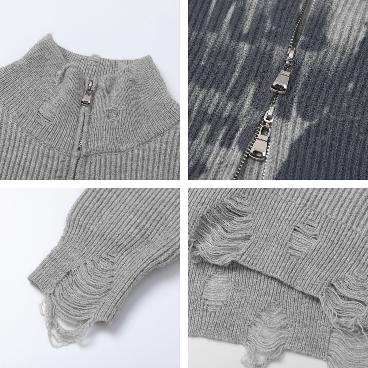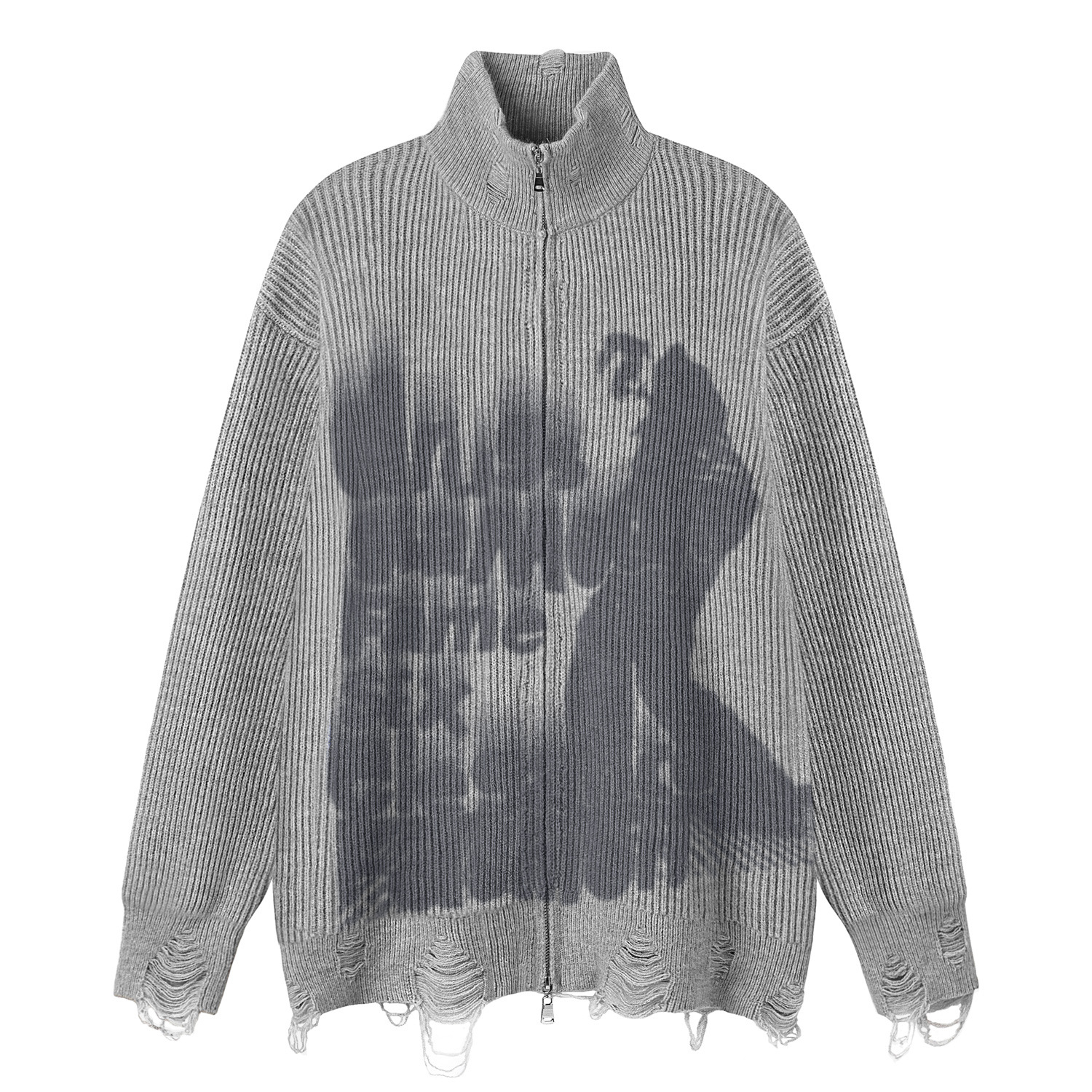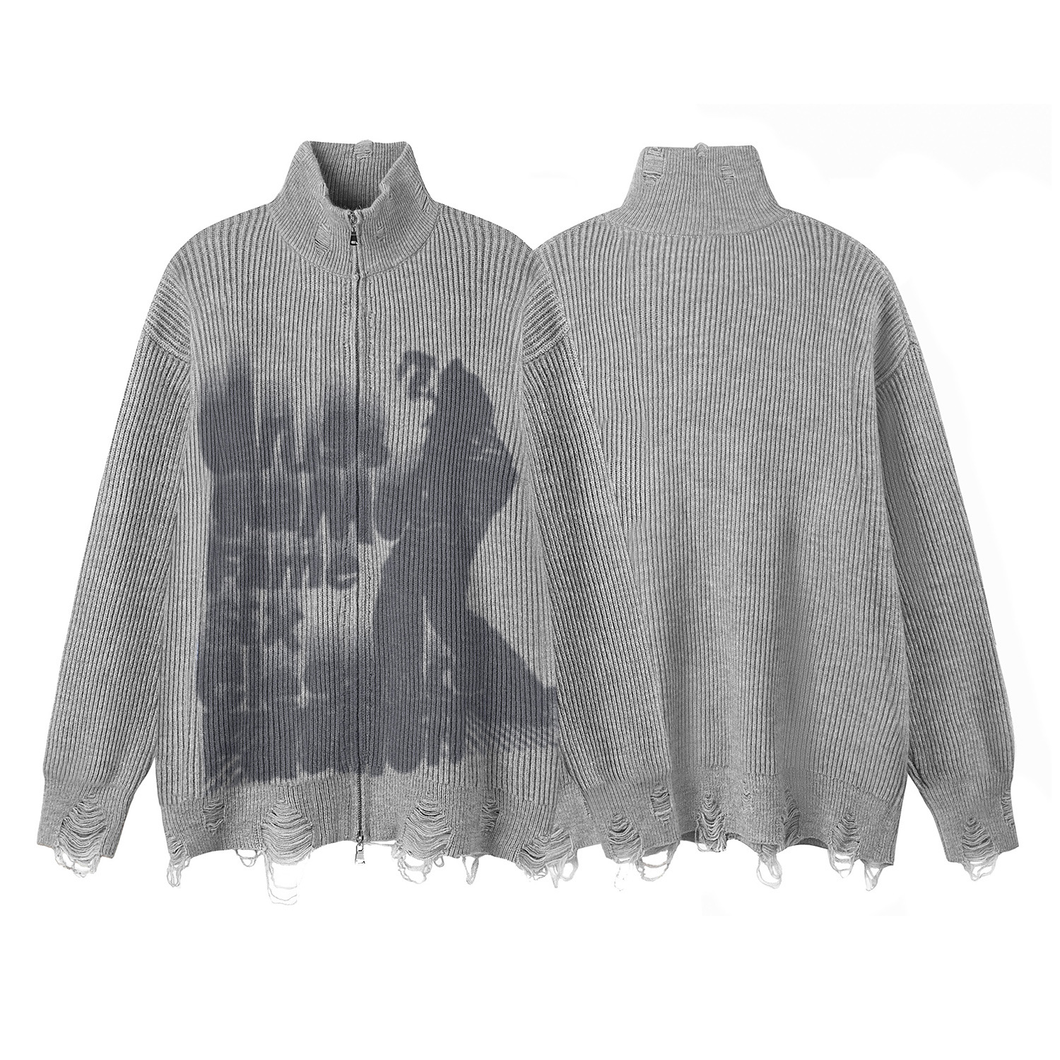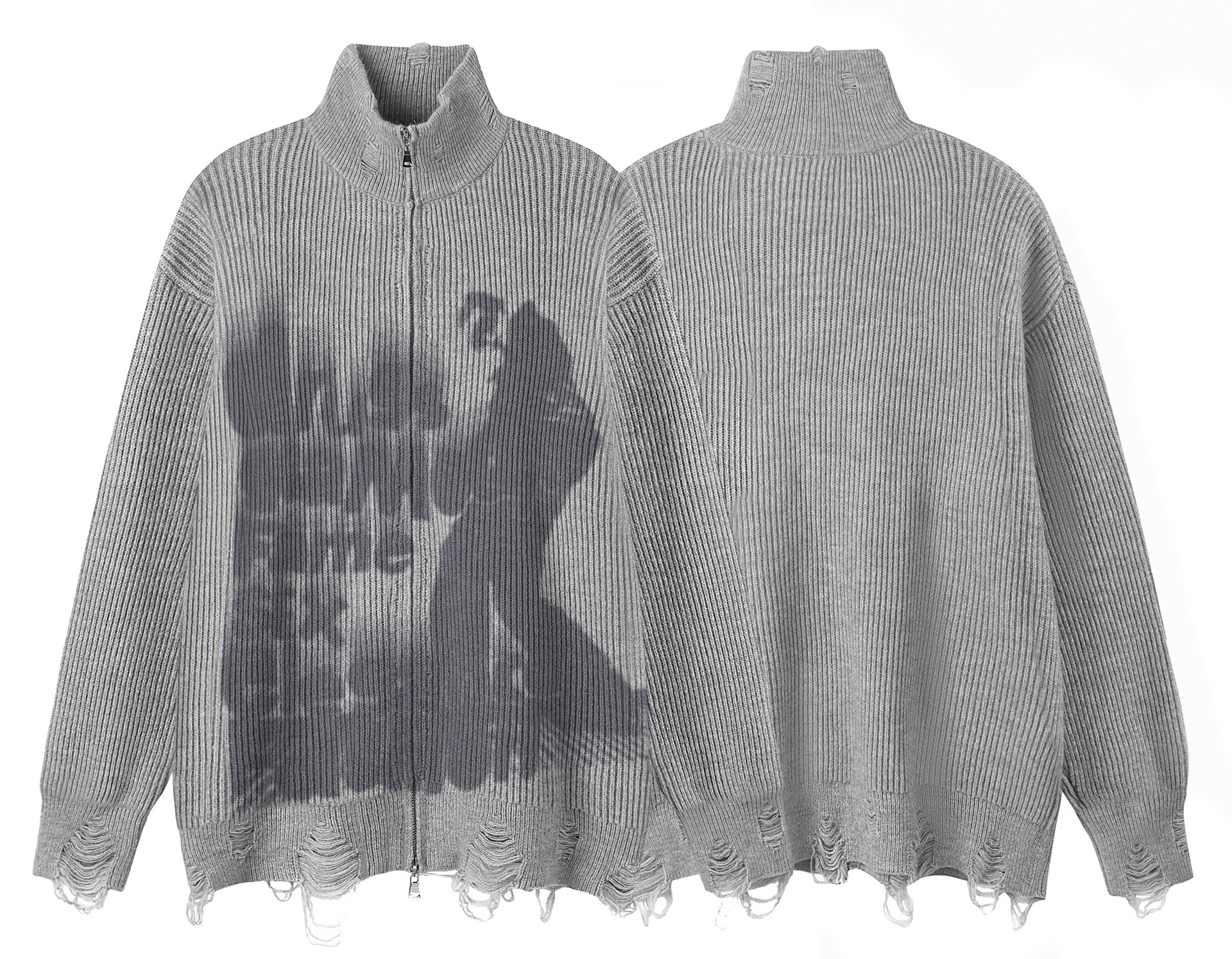 Graffiti Design Damage Knit Zipper Cardigan WN11112