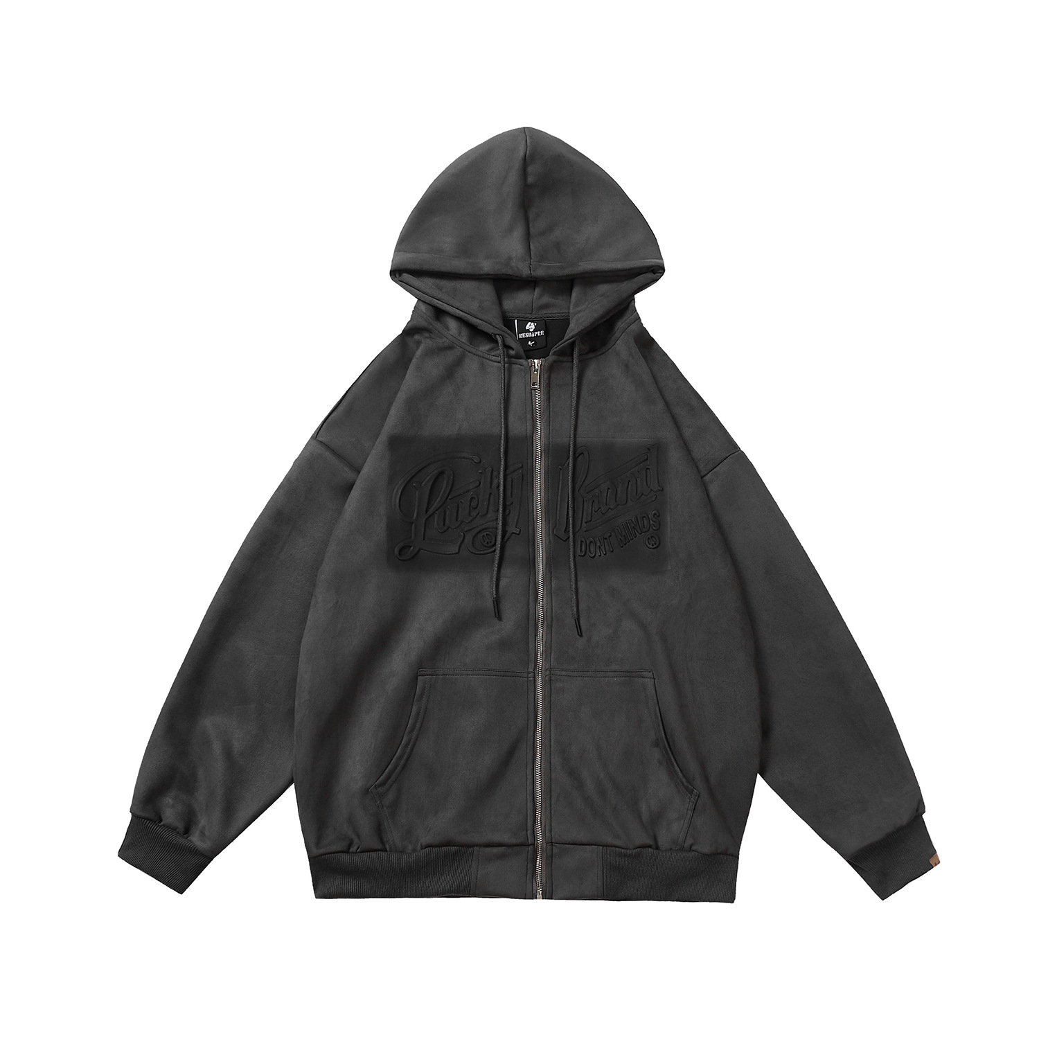 Suede Embossed Graffiti Zipper Hoodie WN11201