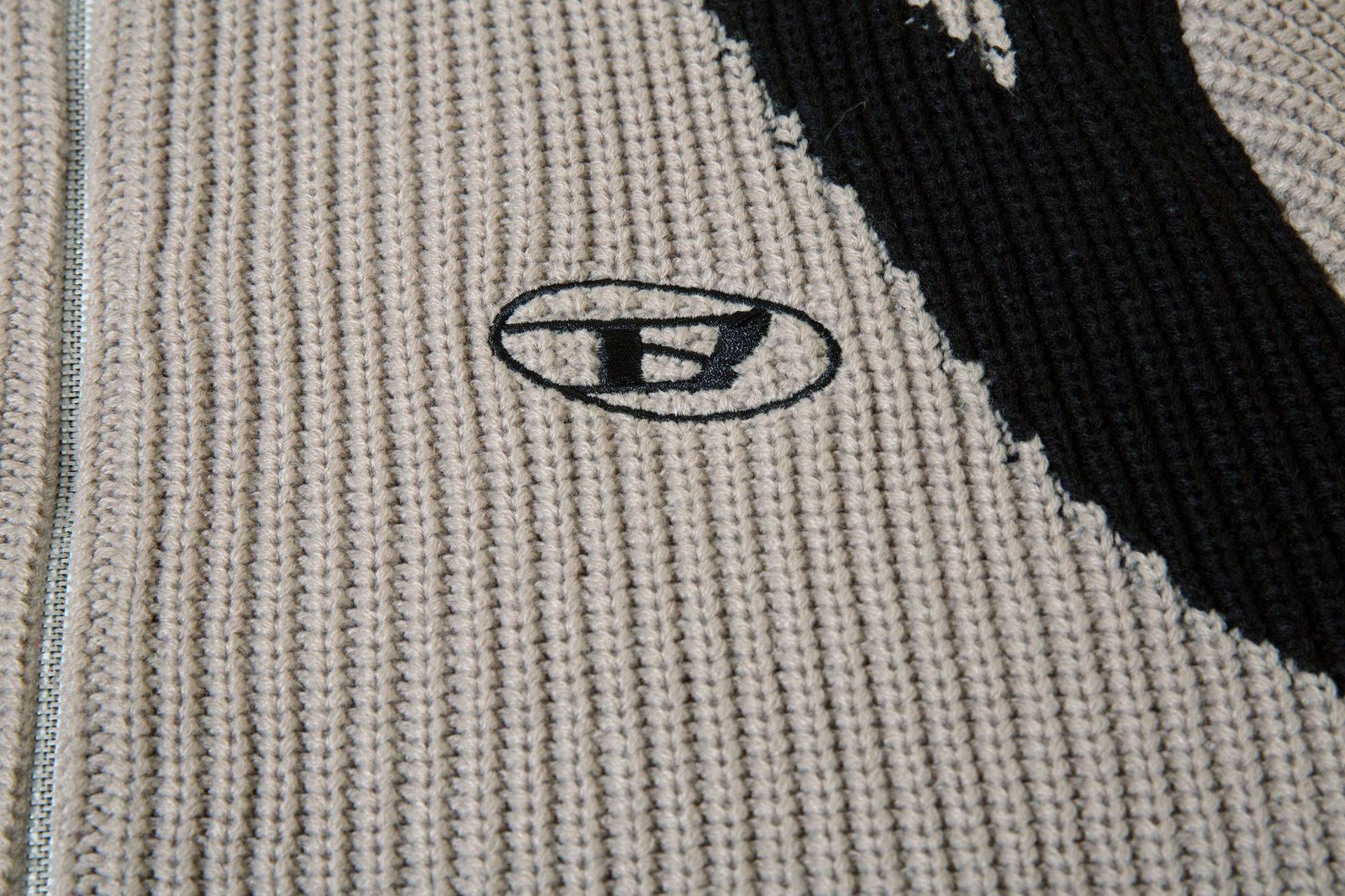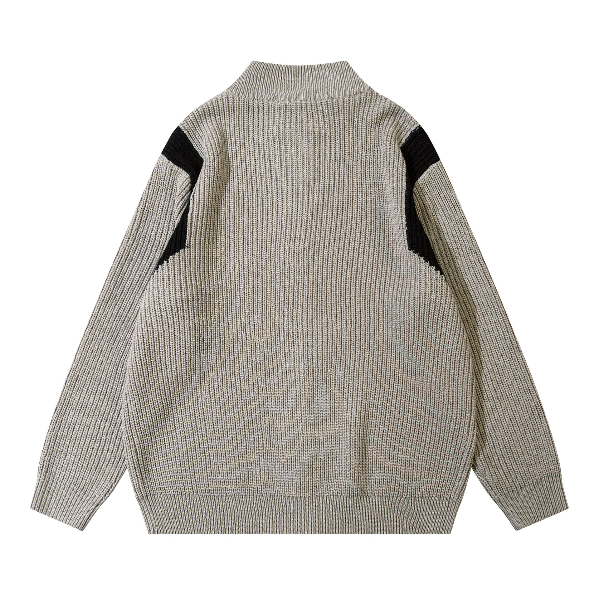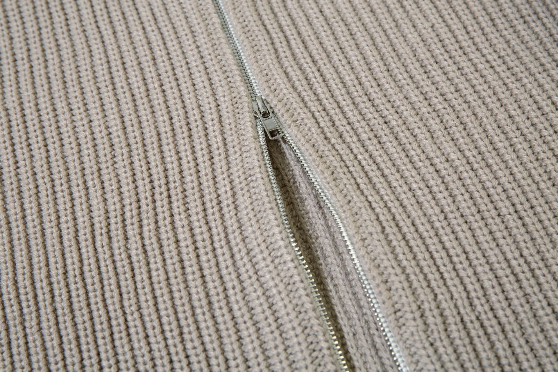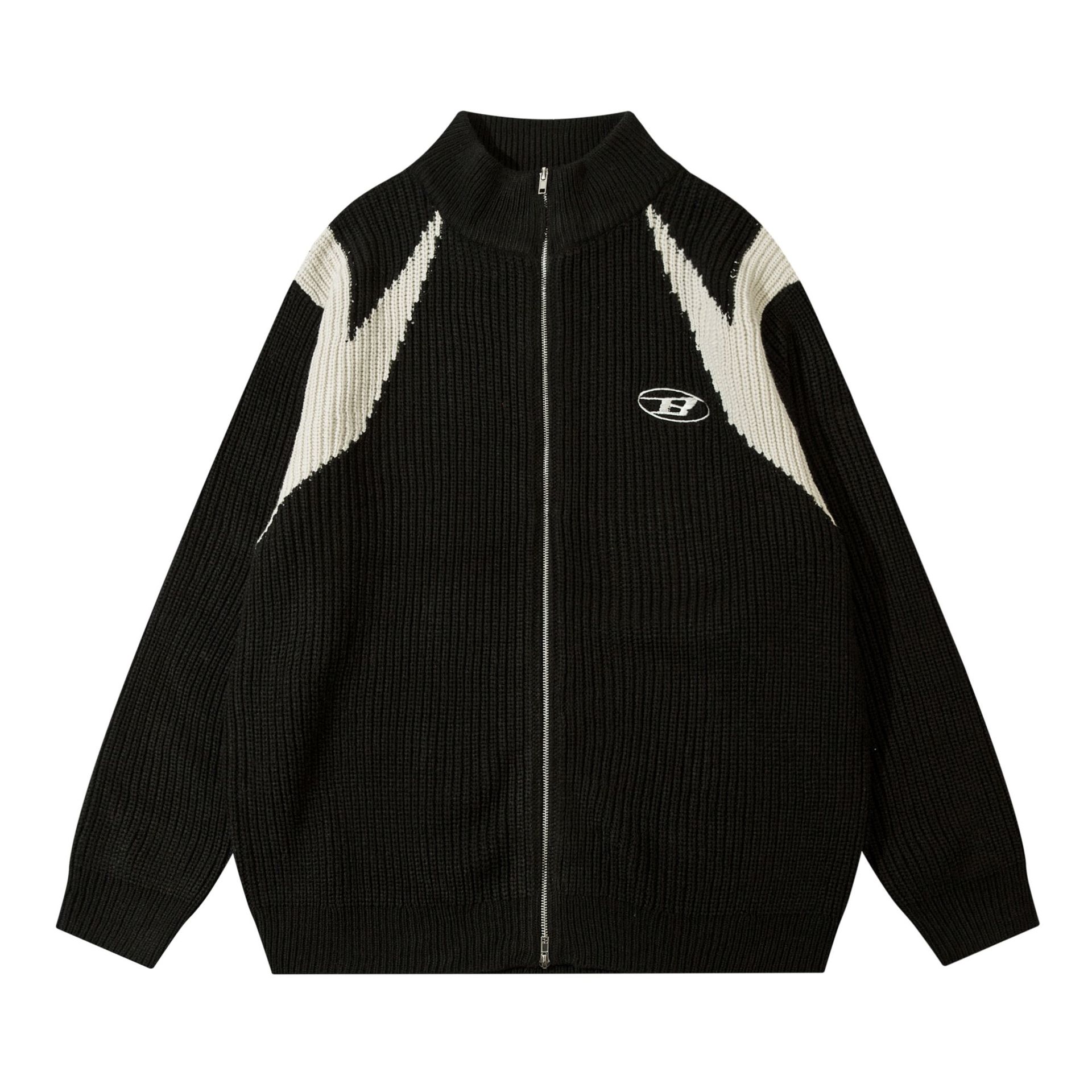 Colorblock Zipper Stand Neck Knit Cardigan WN11227