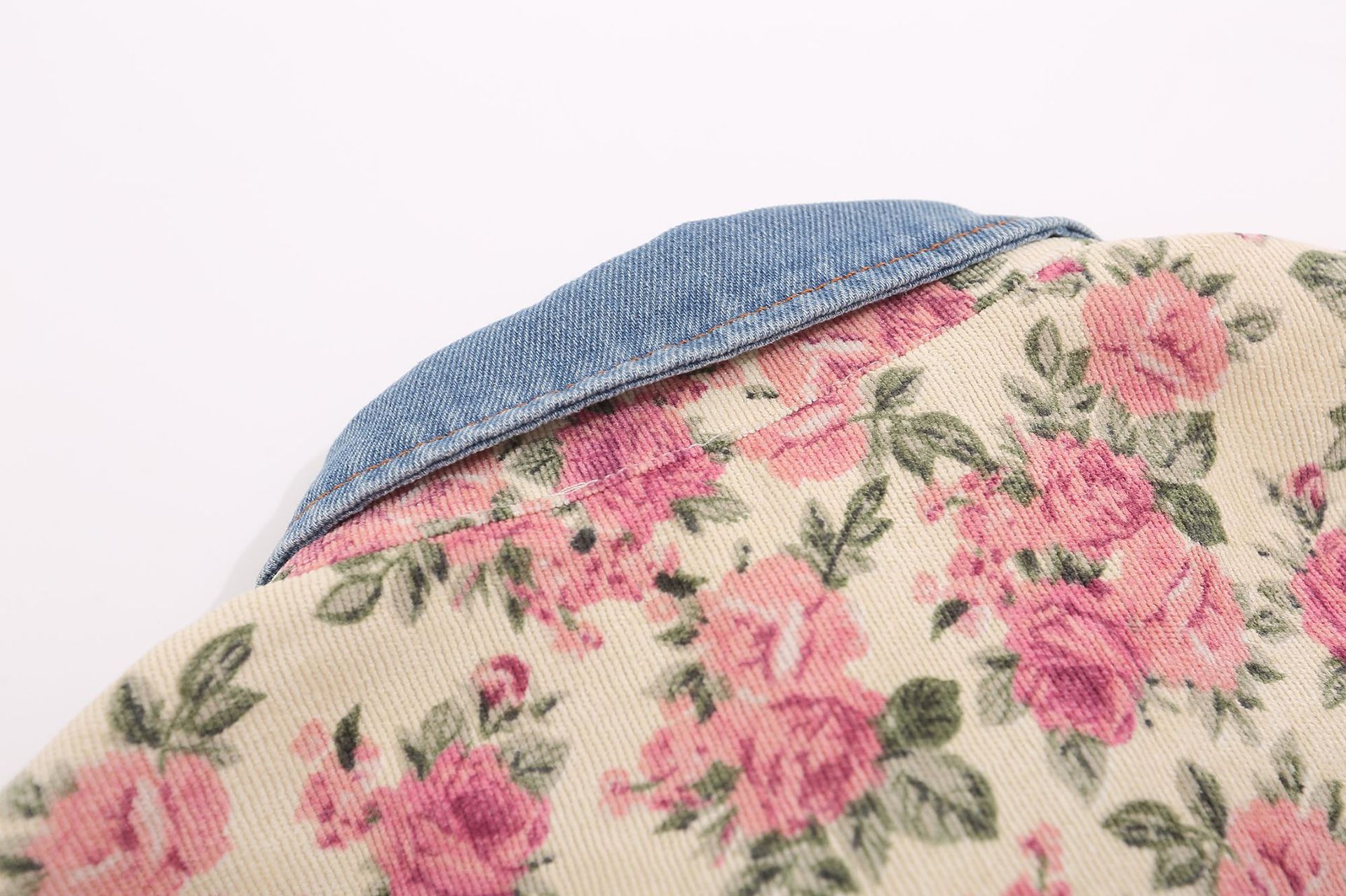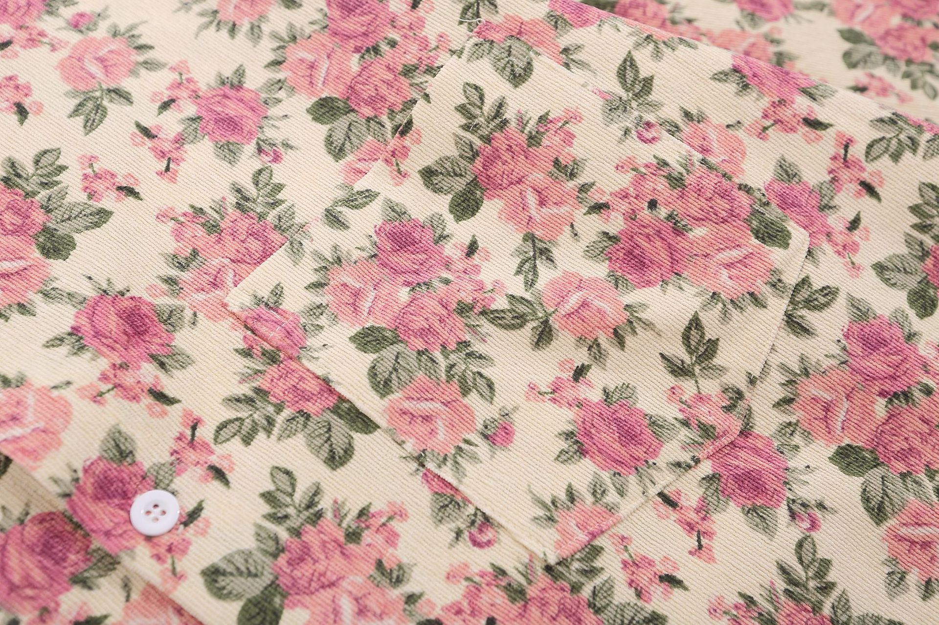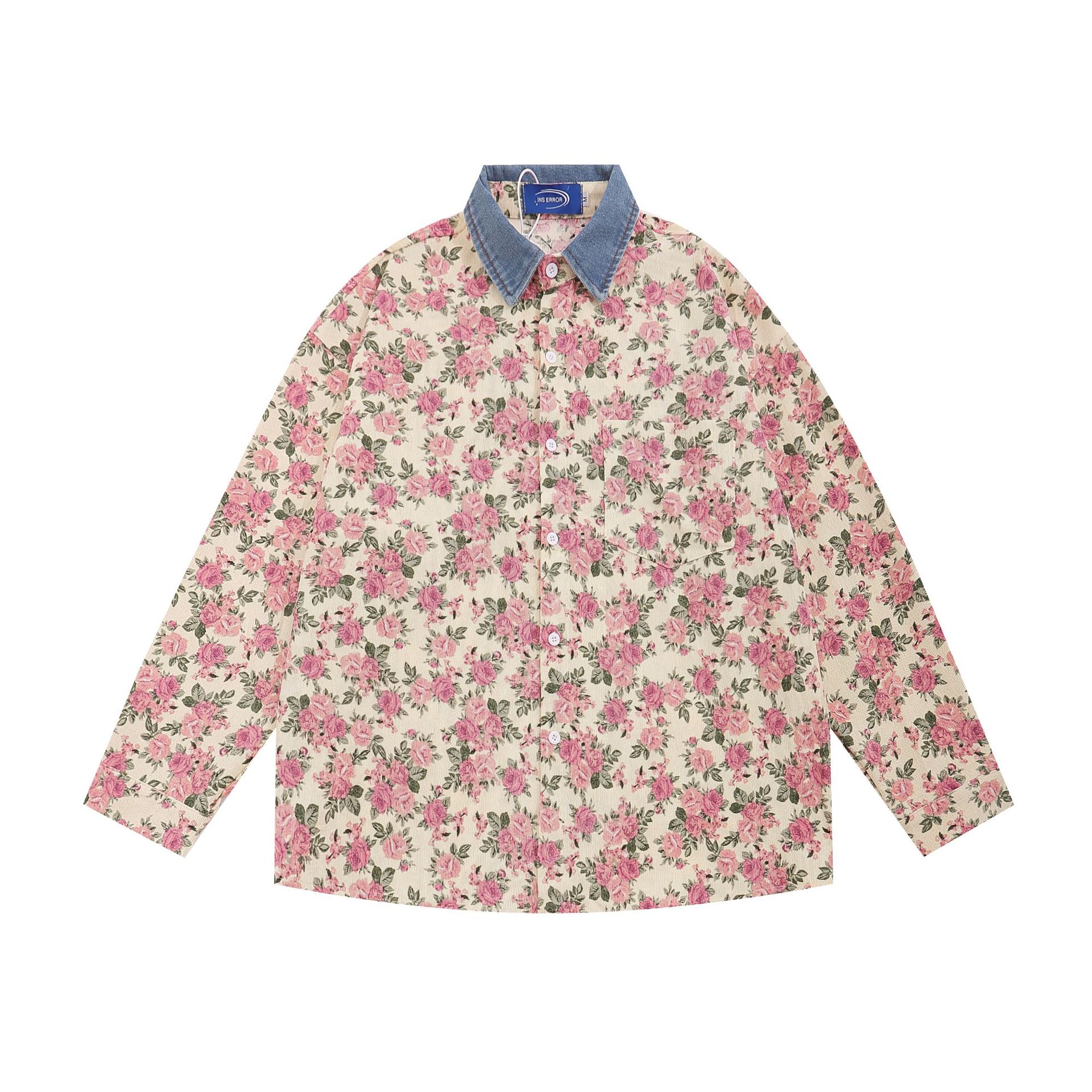 Floral Corduroy Denim Collar Long Sleeve Shirt WN11251