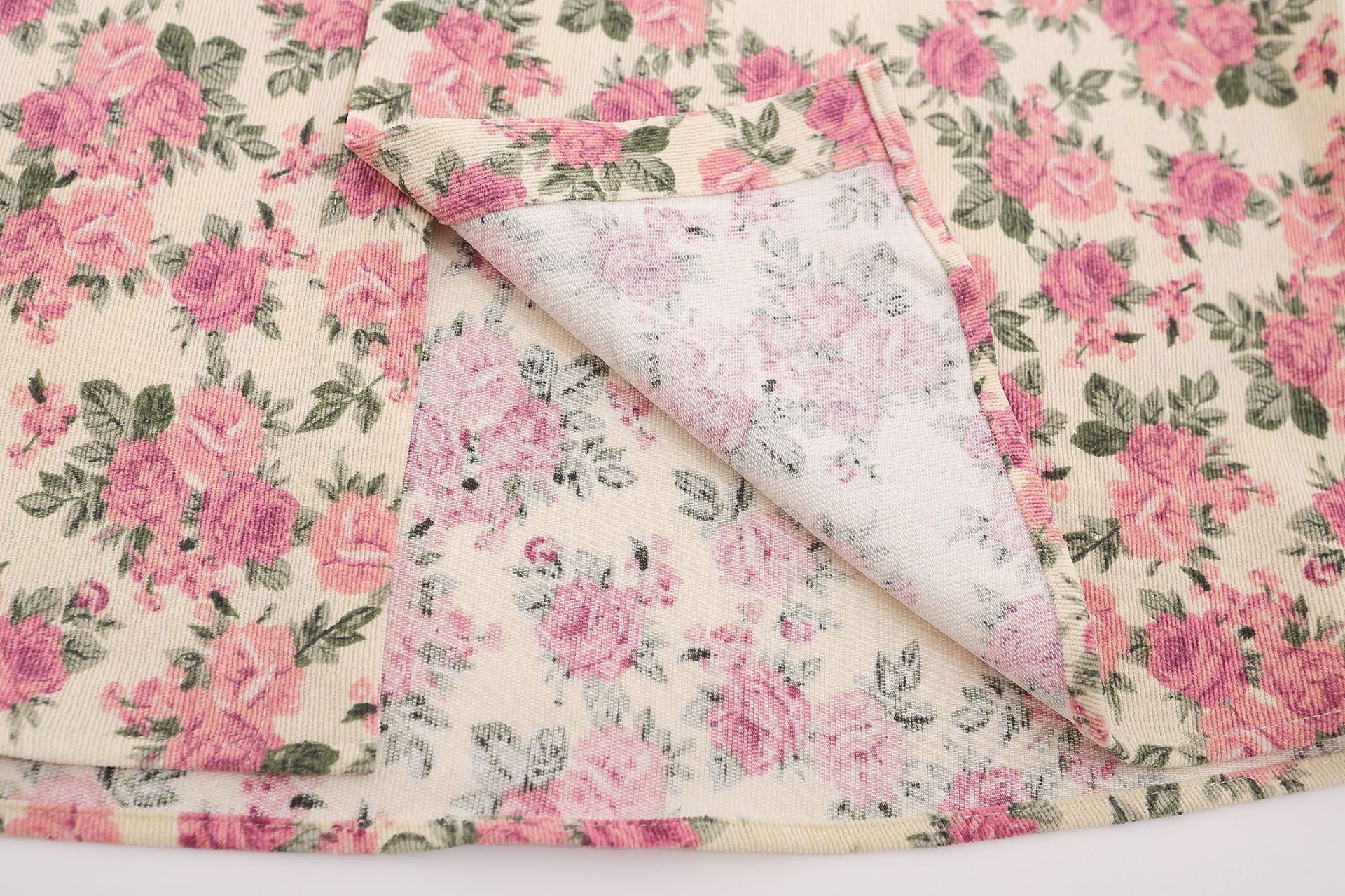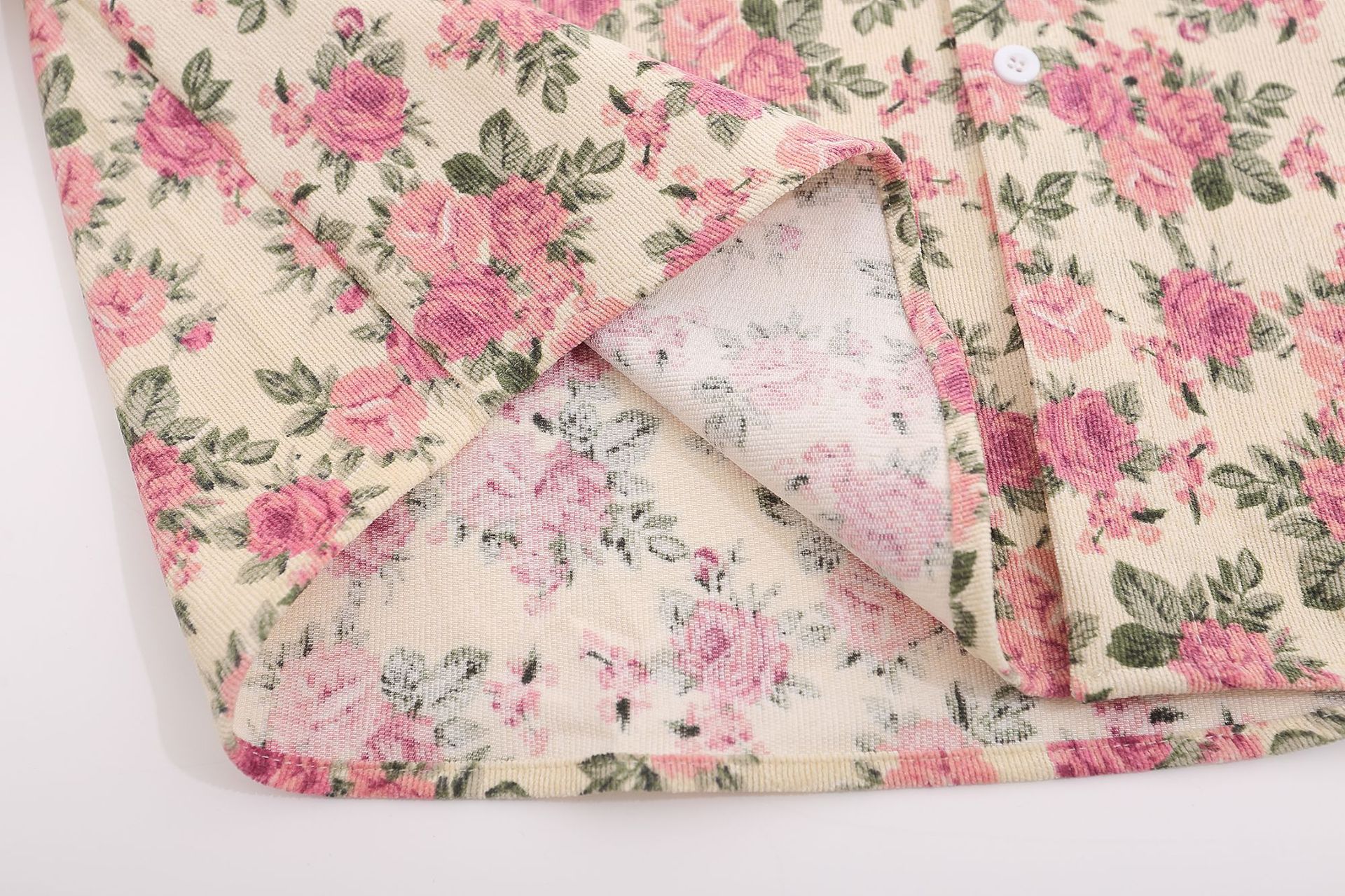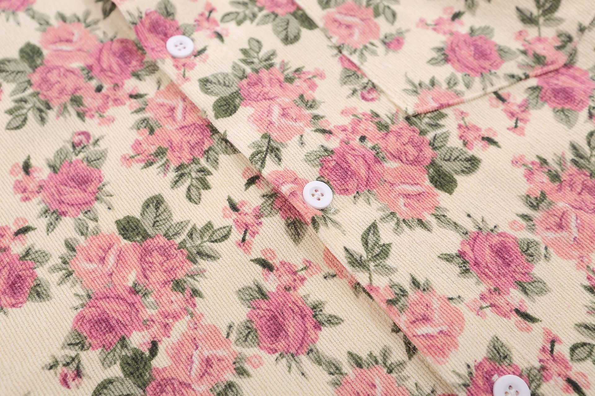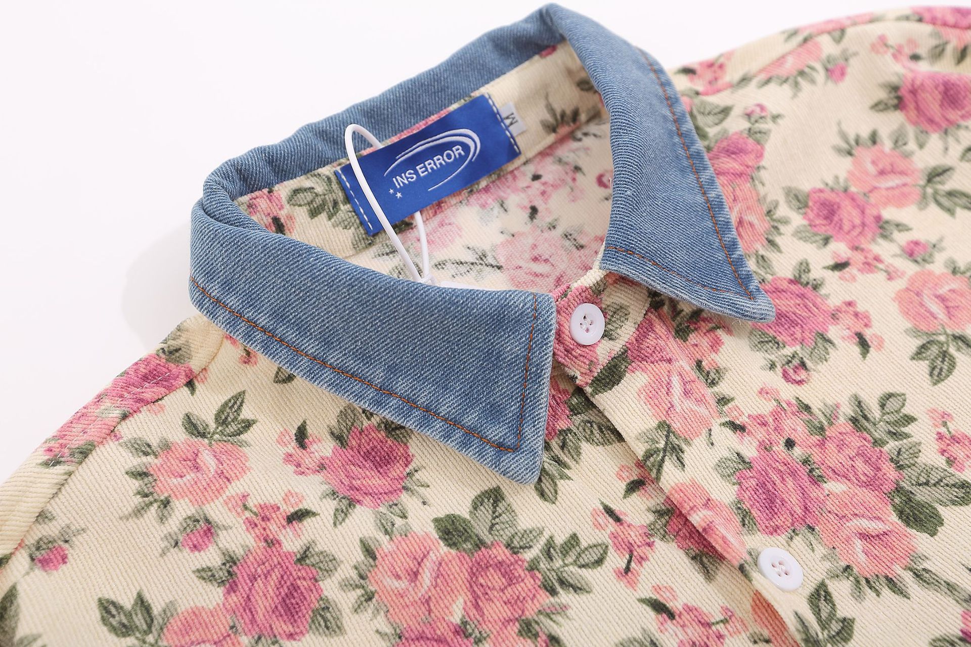 Floral Corduroy Denim Collar Long Sleeve Shirt WN11251