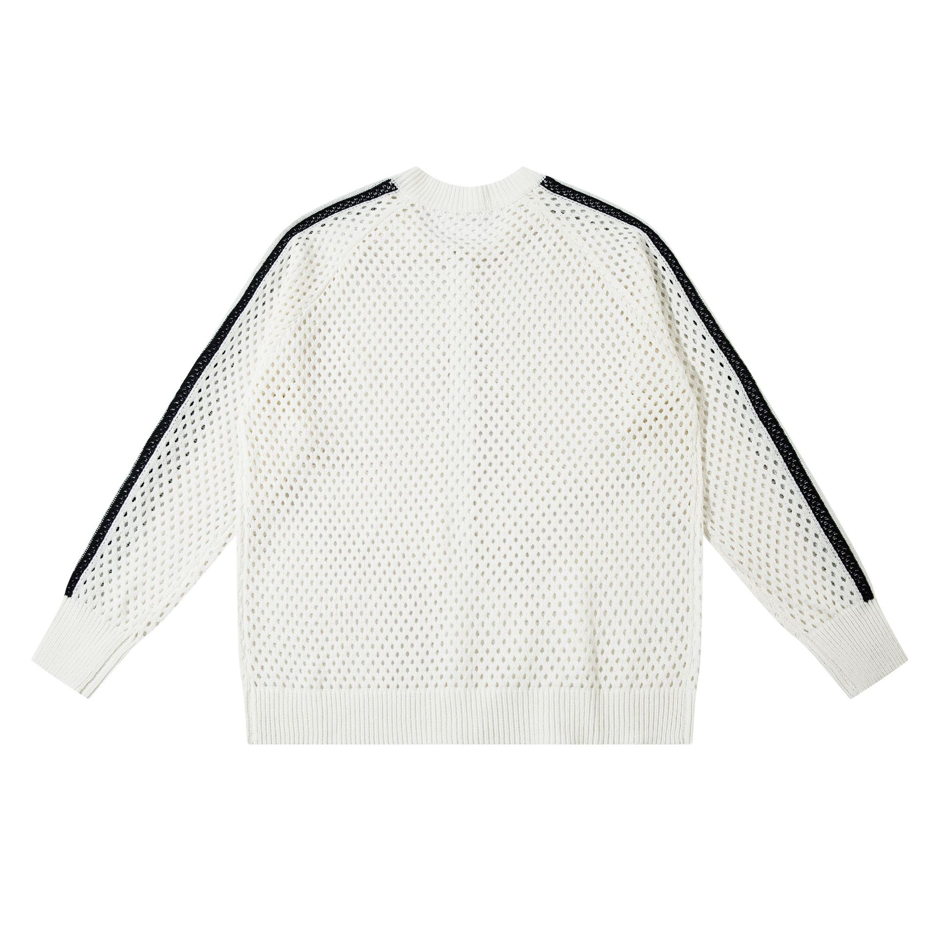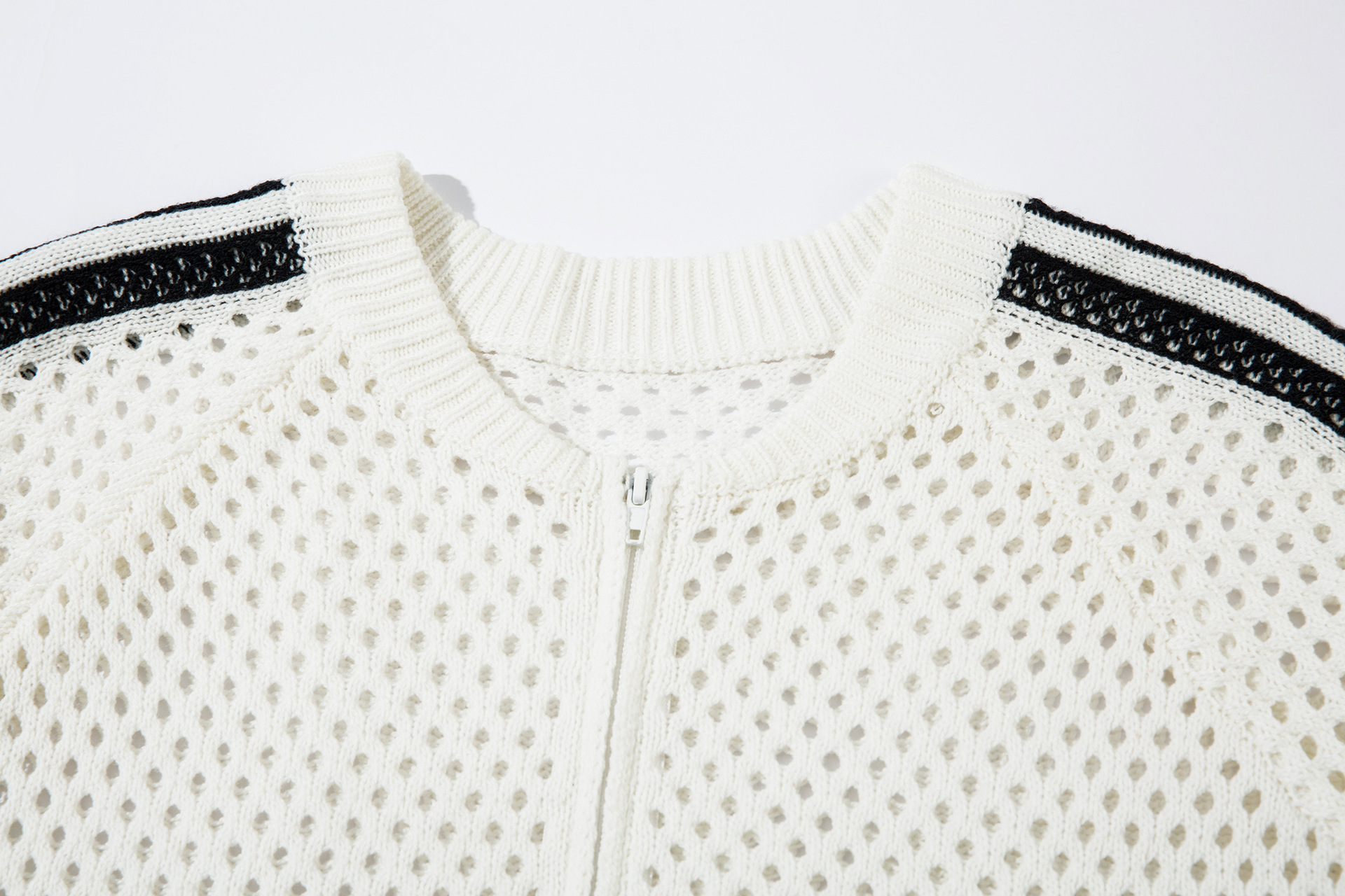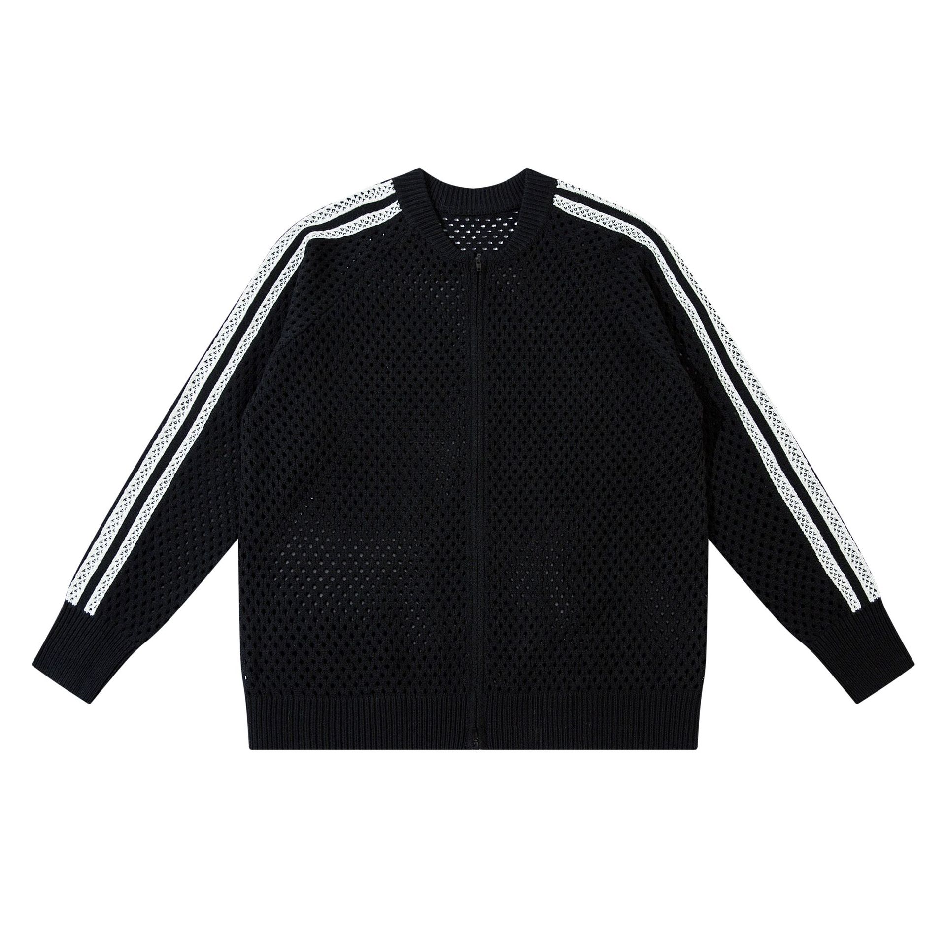 Striped Hollow-Out Zipper Knit Cardigan WN11272