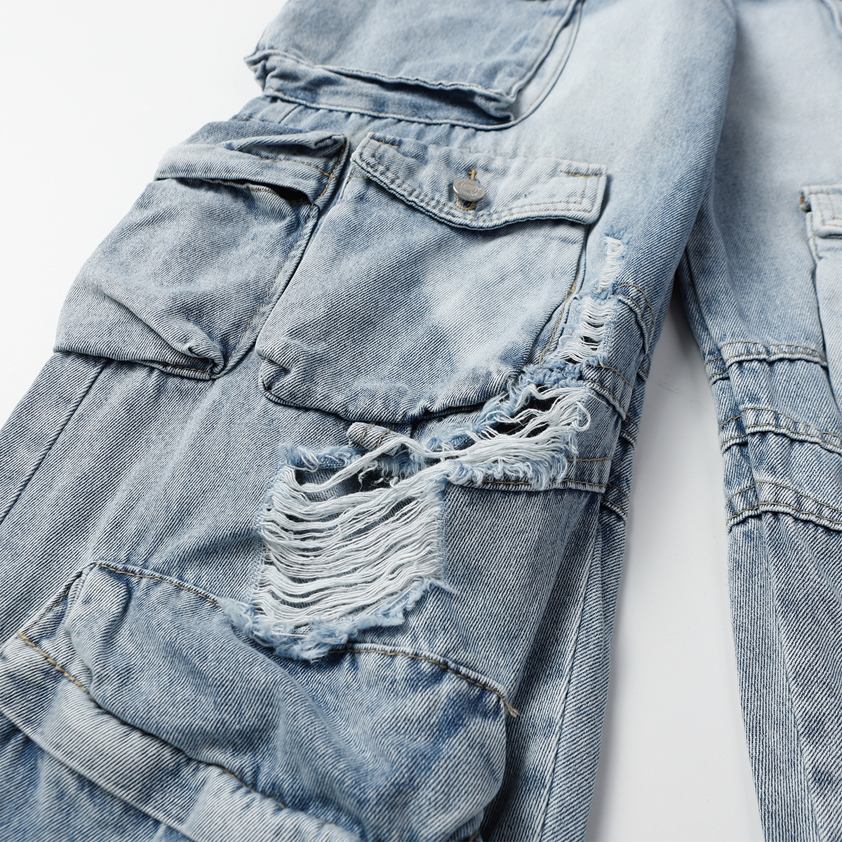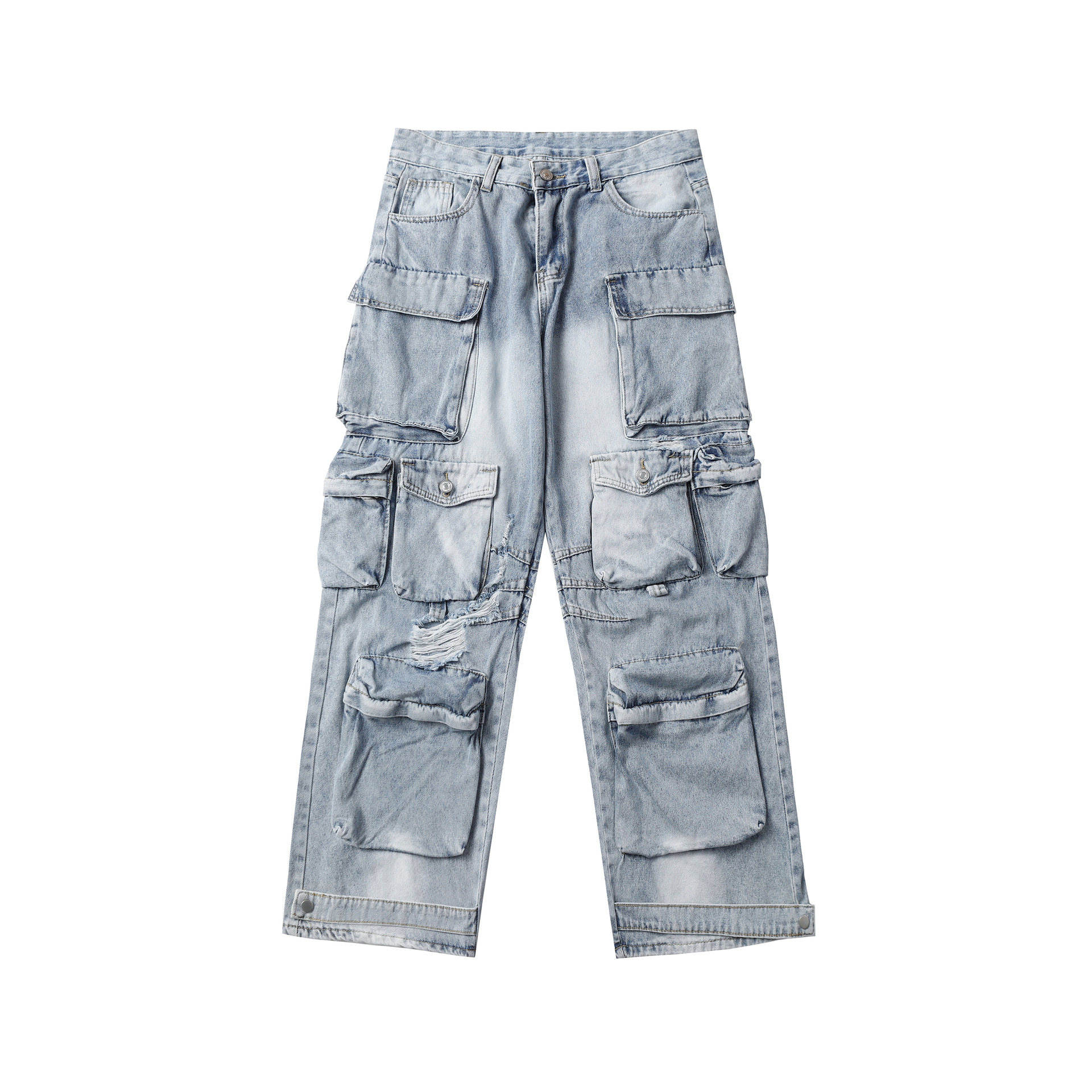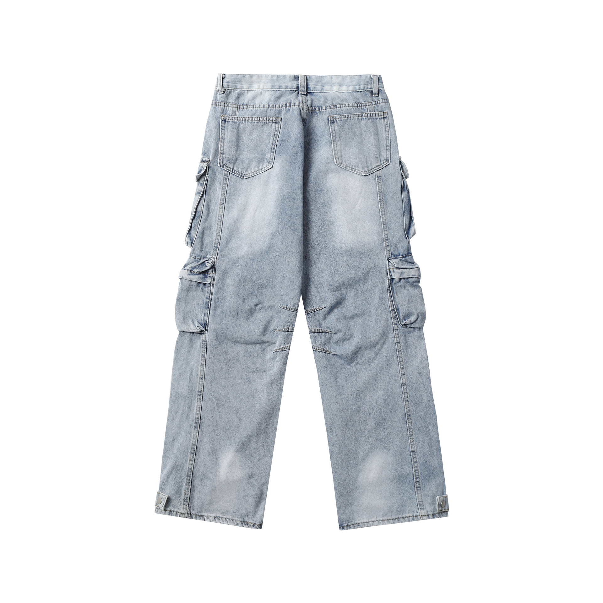 Multi-Pocket Washed Wide-Leg Cargo Denim Jeans WN11280