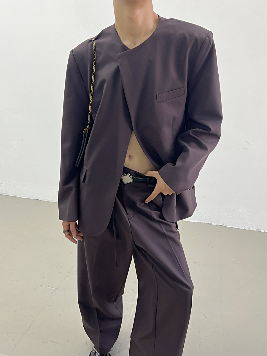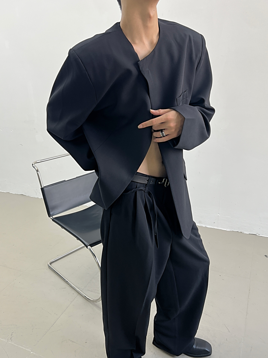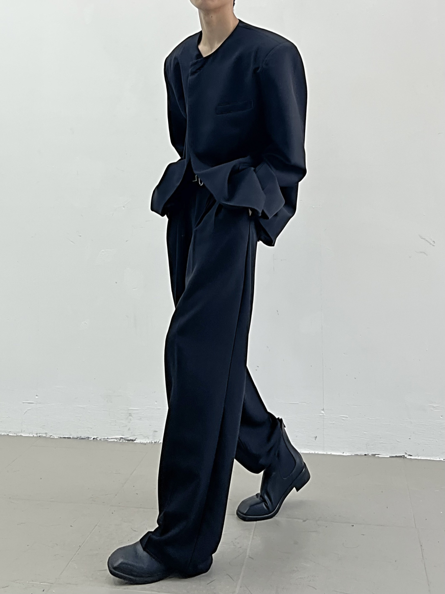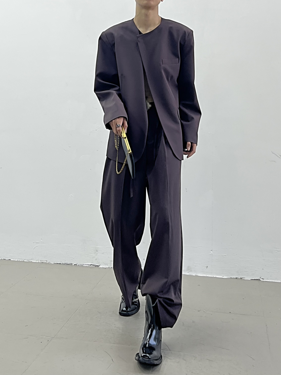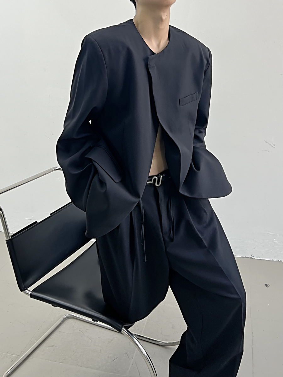 Split-Hem Collarless Tailored Jacket & Trousers Setup WN11639