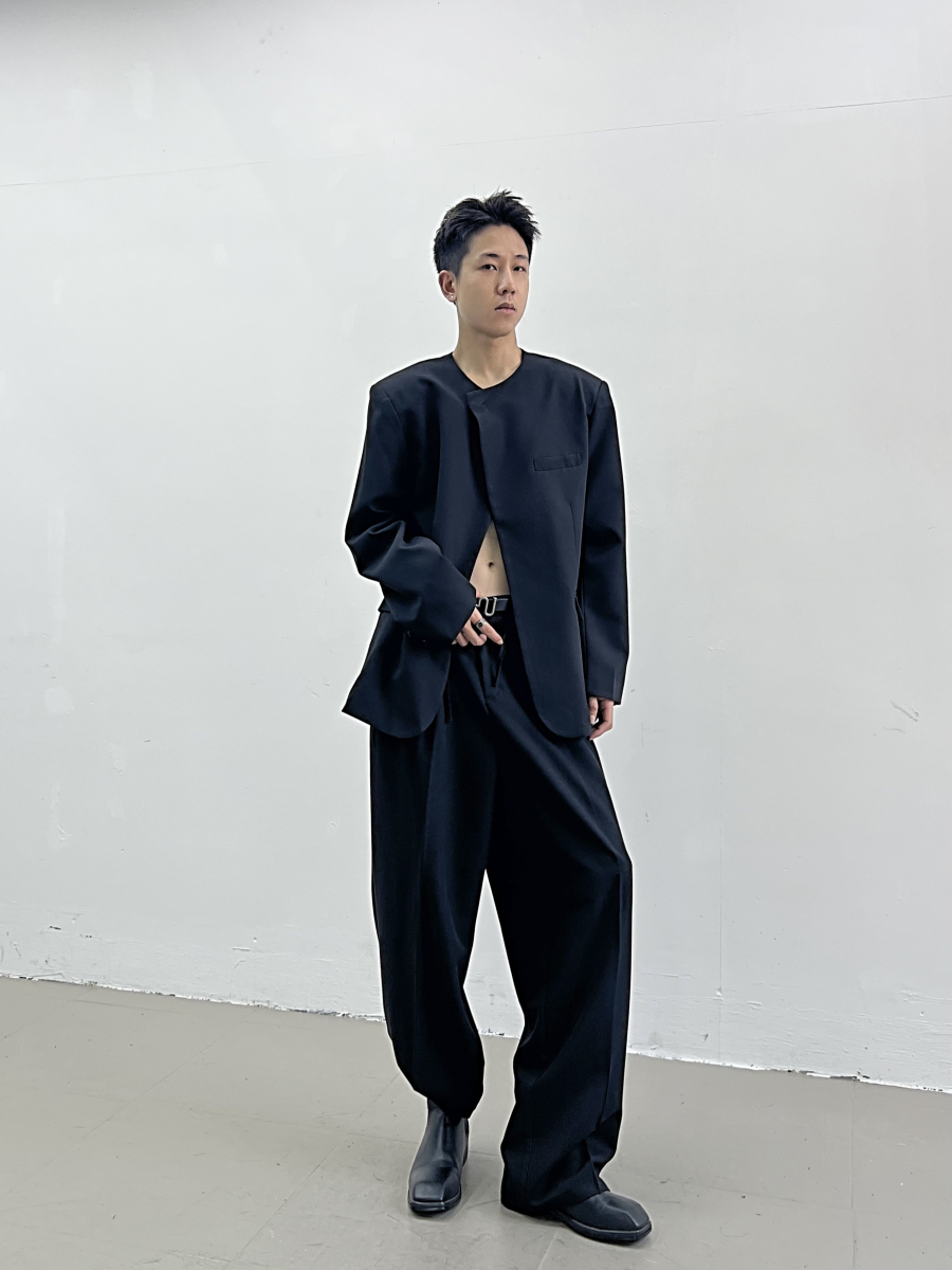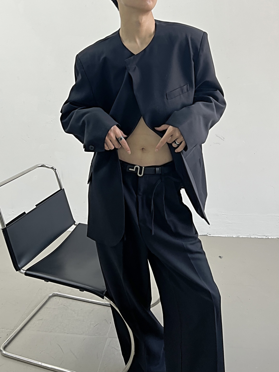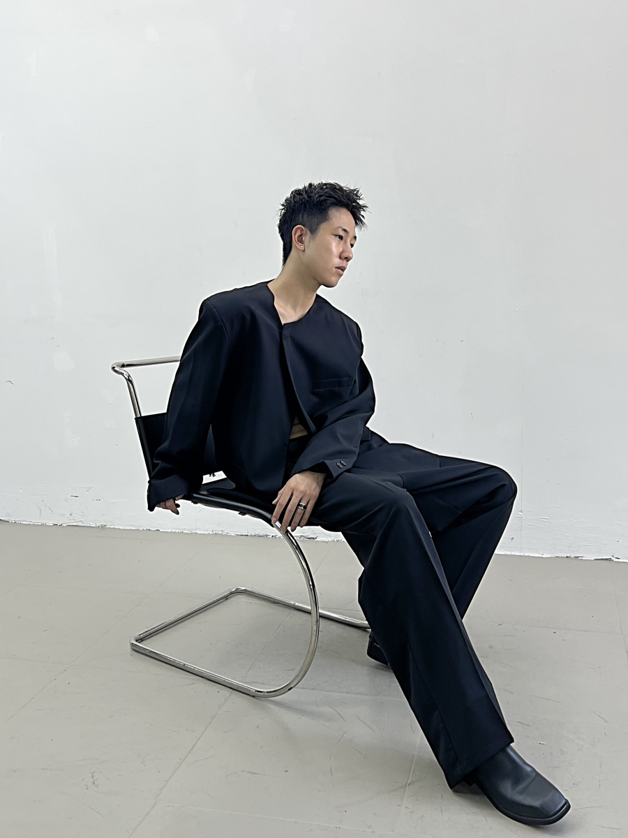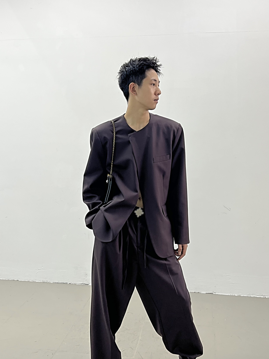 Split-Hem Collarless Tailored Jacket & Trousers Setup WN11639