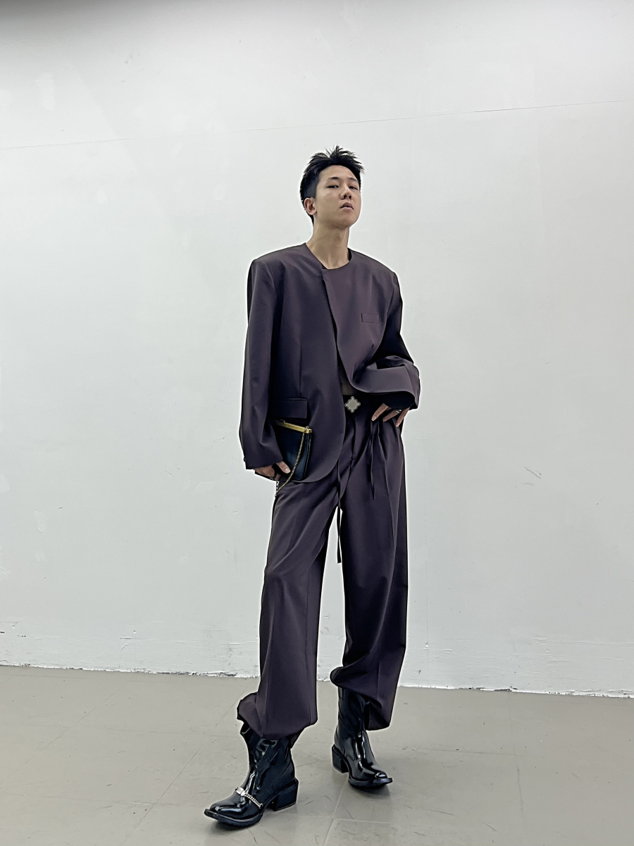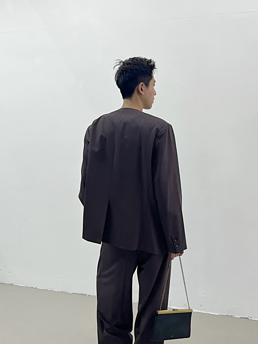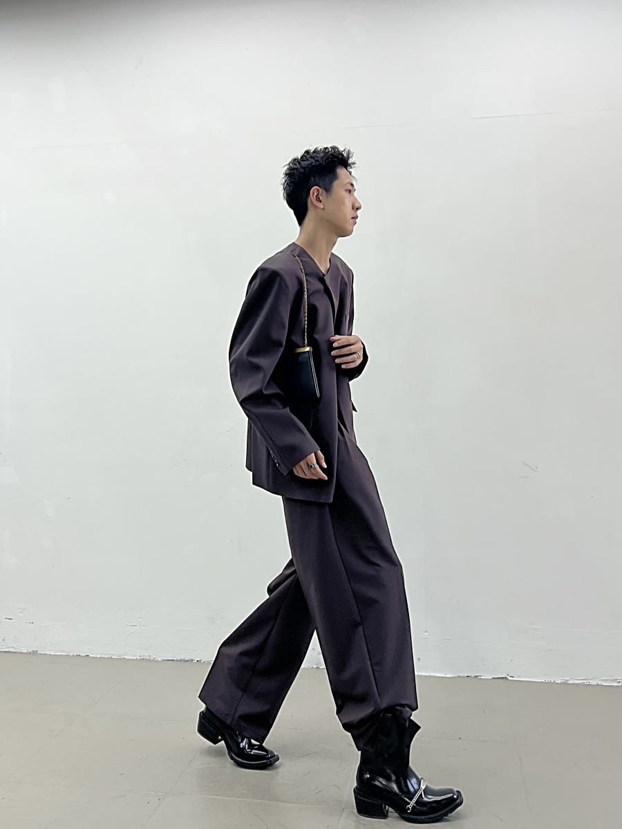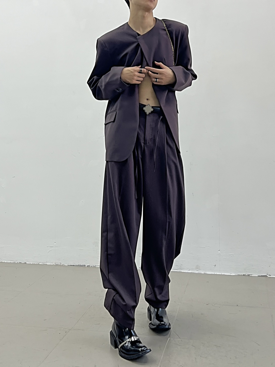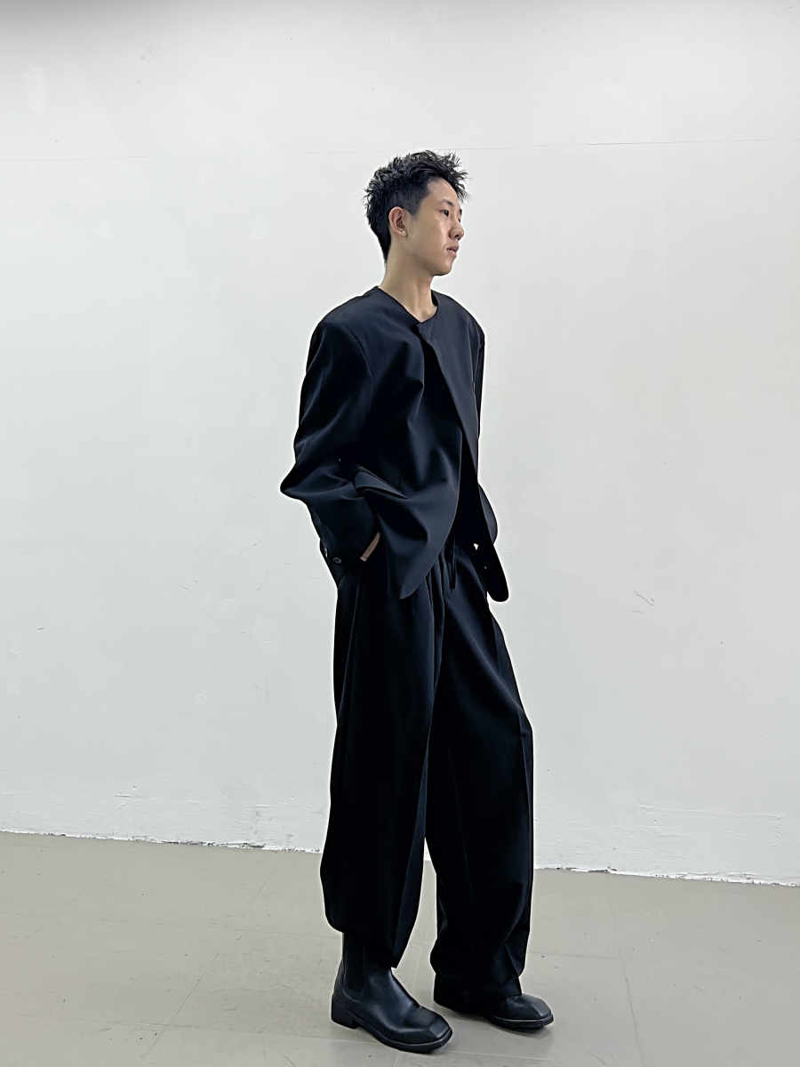 Split-Hem Collarless Tailored Jacket & Trousers Setup WN11639