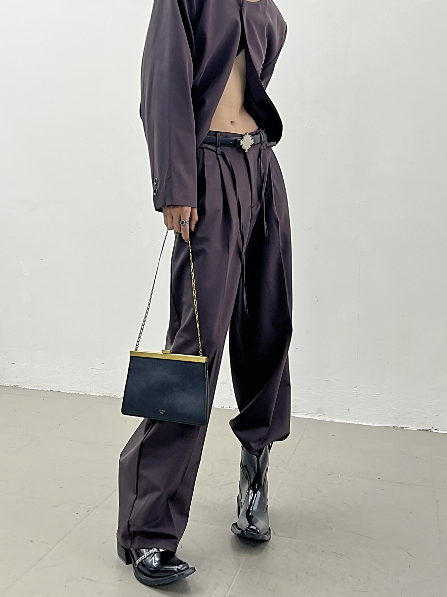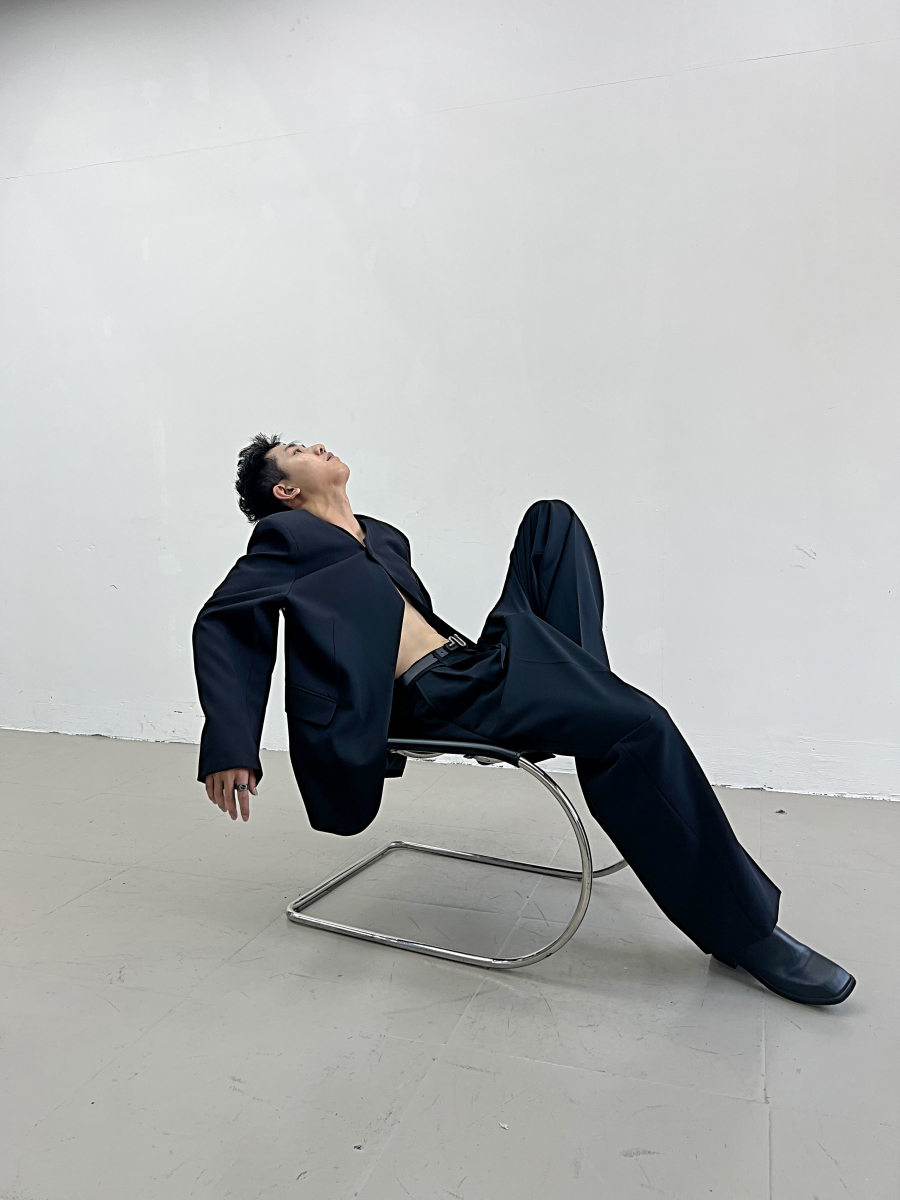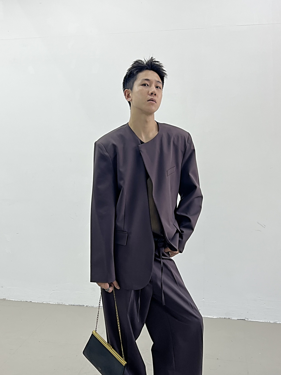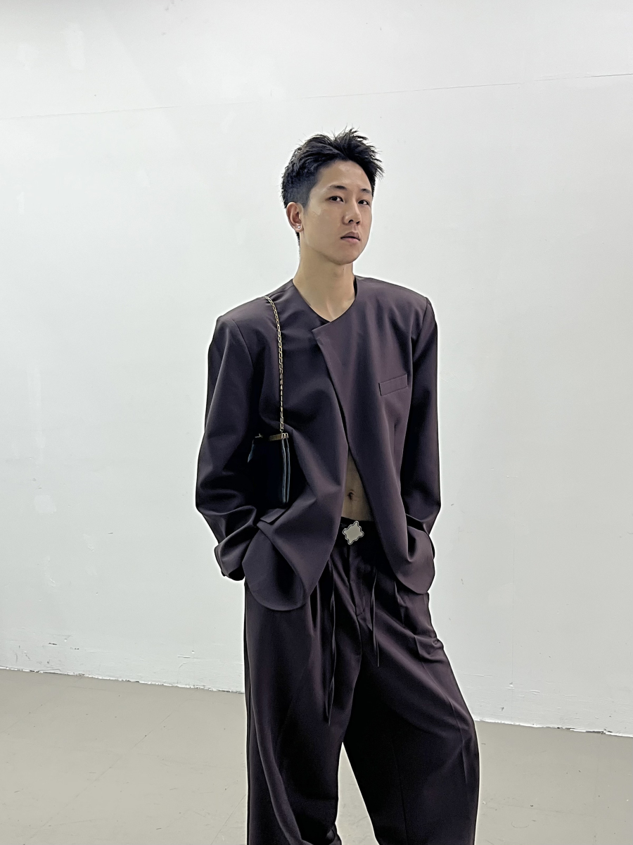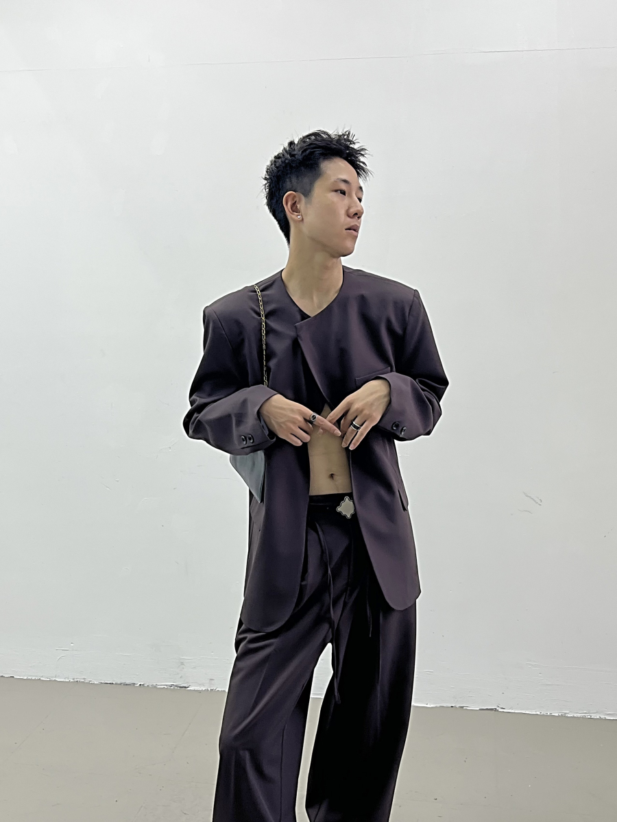 Split-Hem Collarless Tailored Jacket & Trousers Setup WN11639
