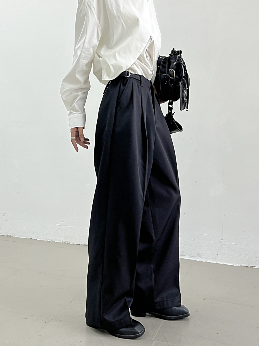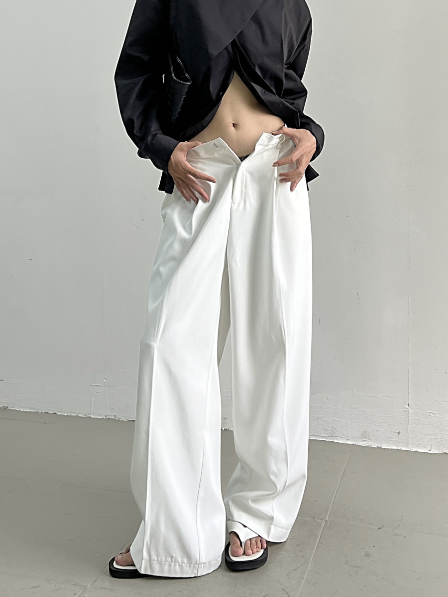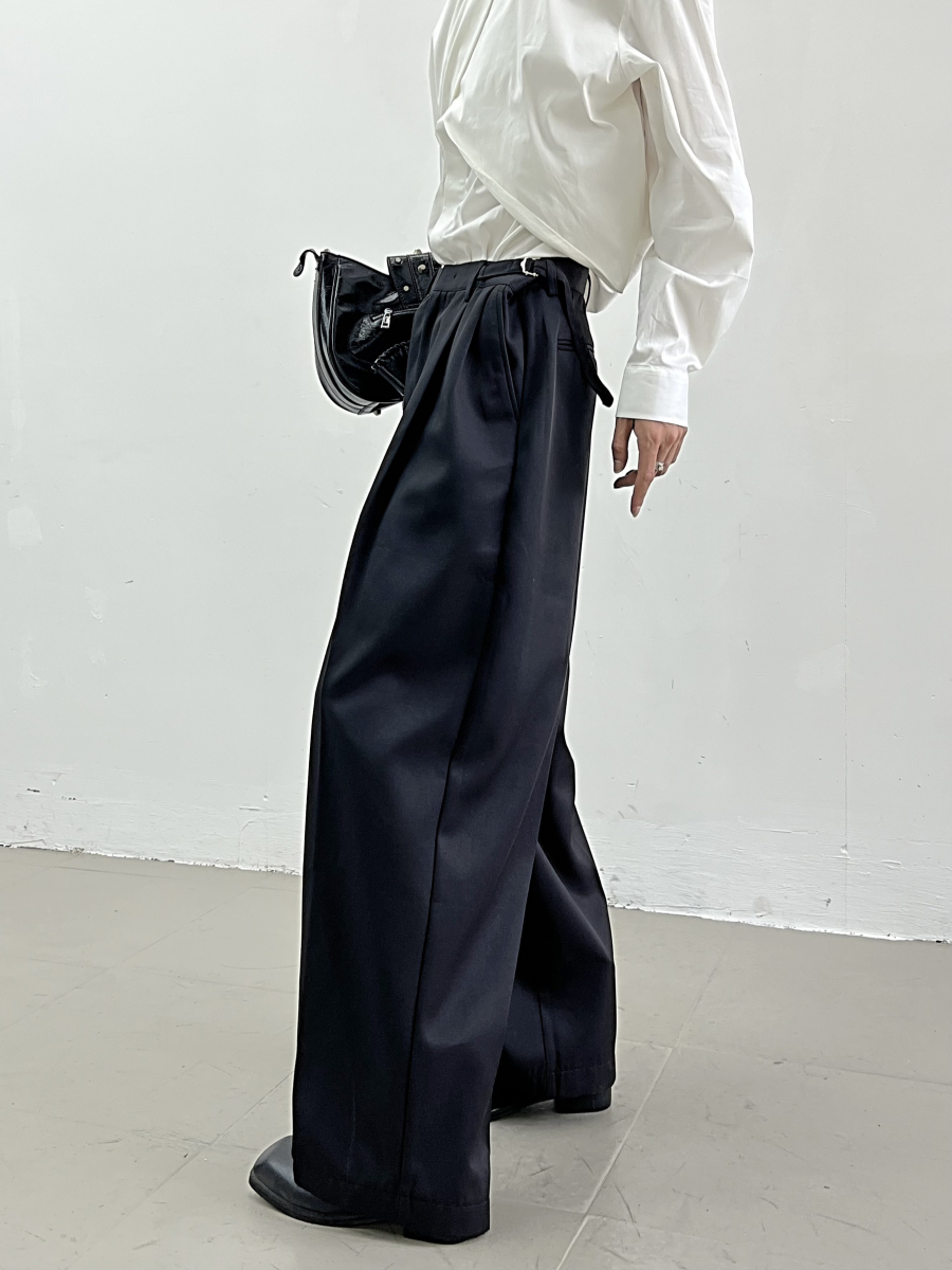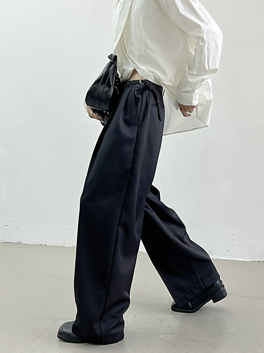 Drawstring Waist Draped Wide-Leg Trousers WN11640