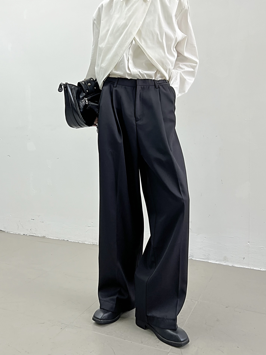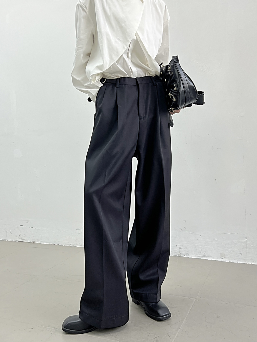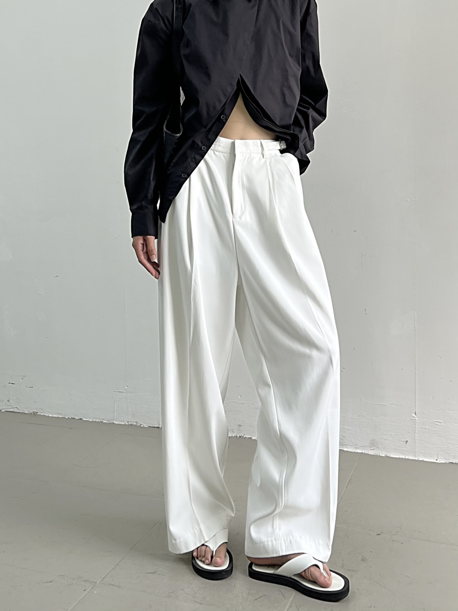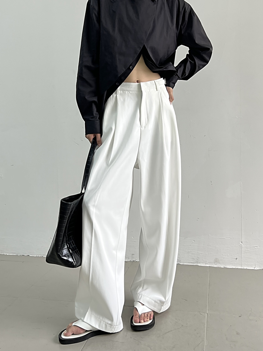 Drawstring Waist Draped Wide-Leg Trousers WN11640