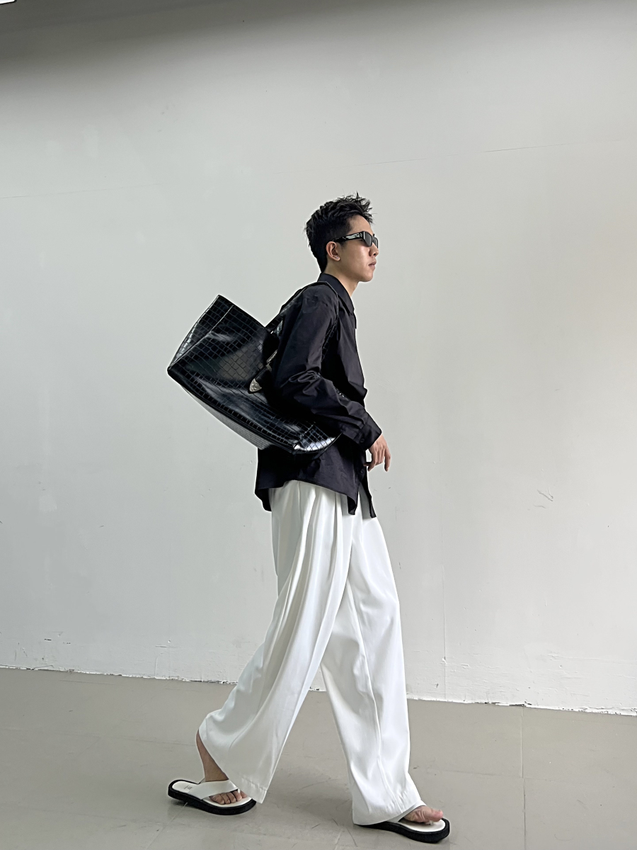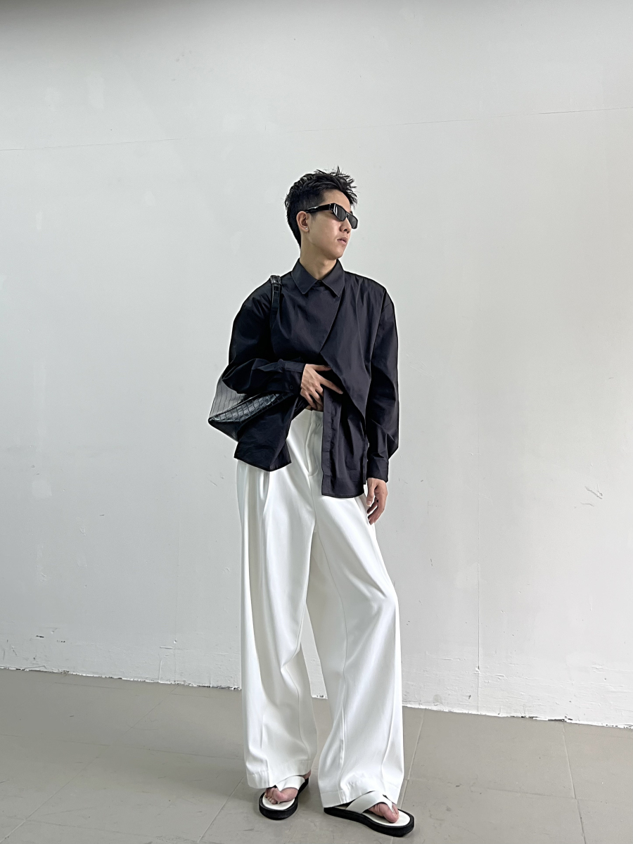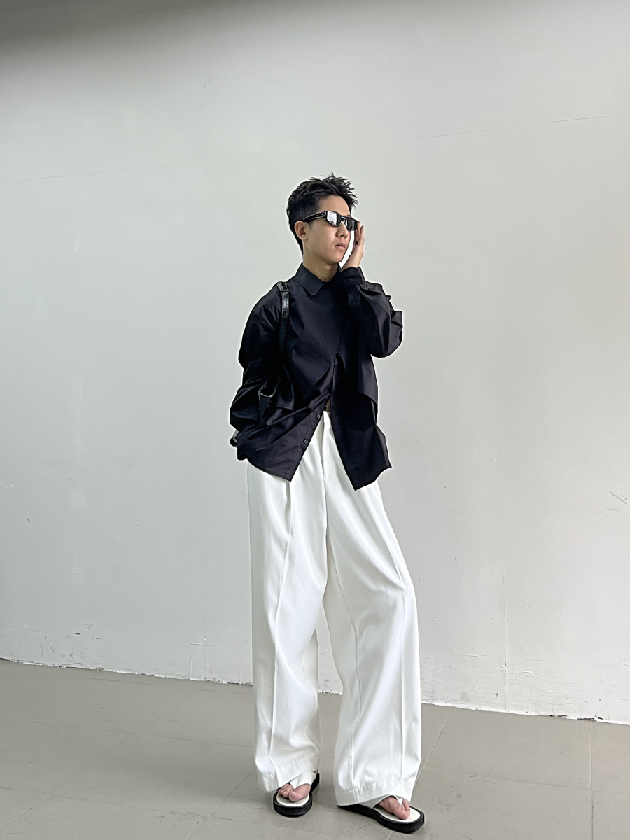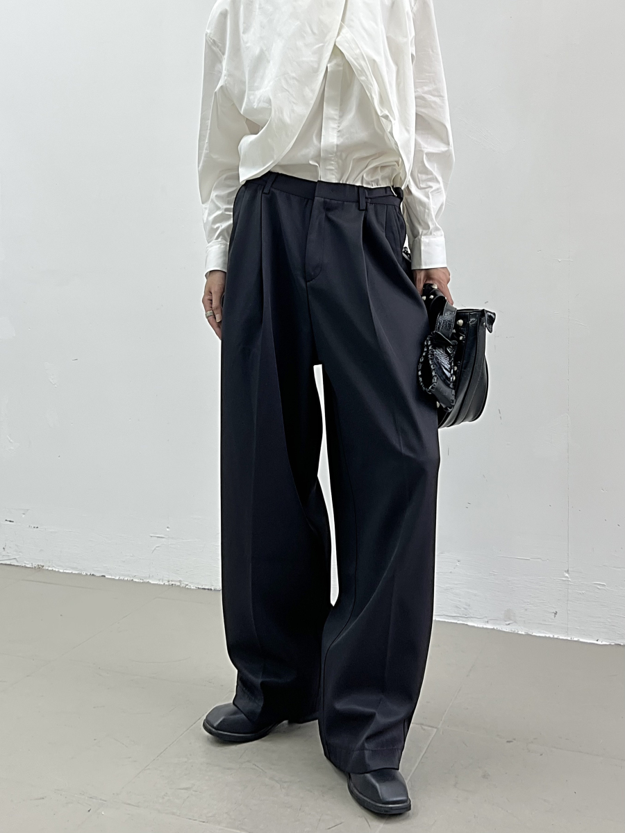 Drawstring Waist Draped Wide-Leg Trousers WN11640