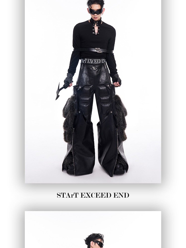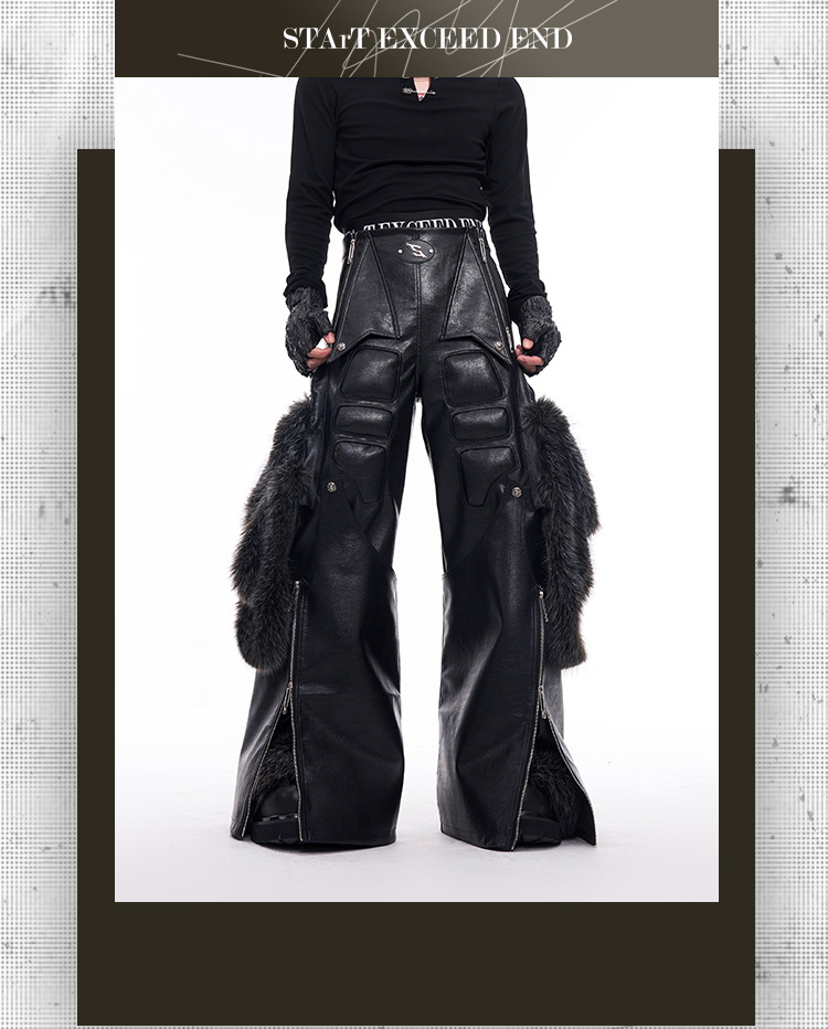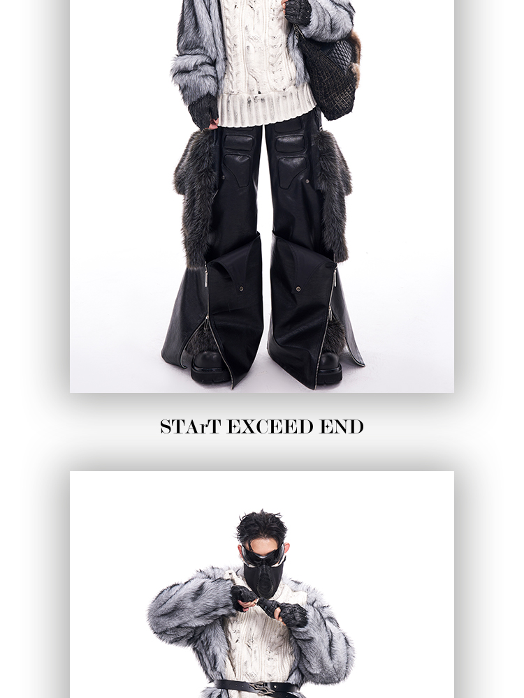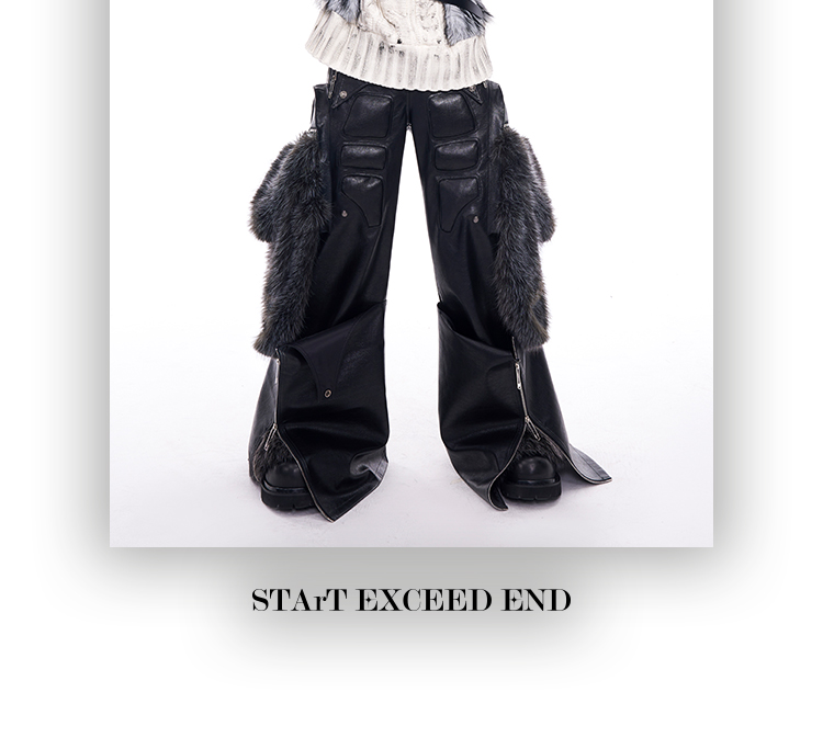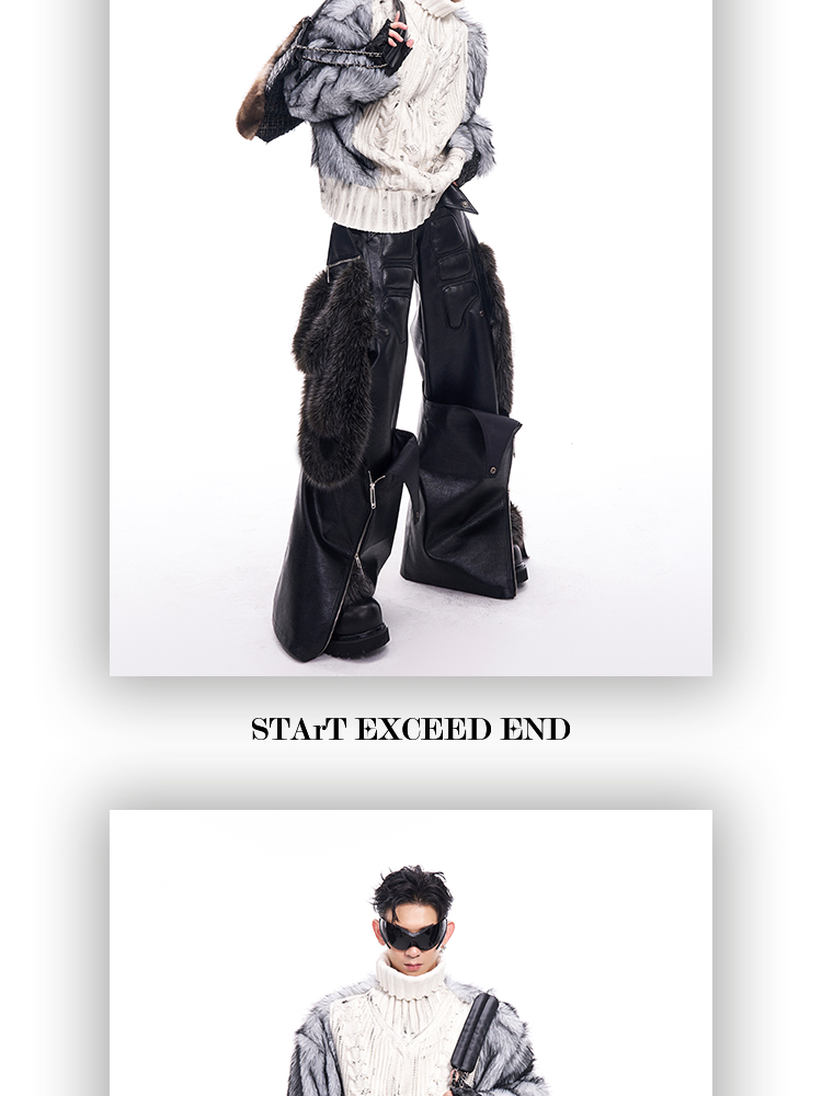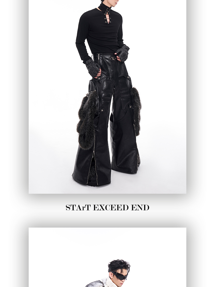 Fake Fur Patchwork PU Leather Wide-Leg Pants WN11681