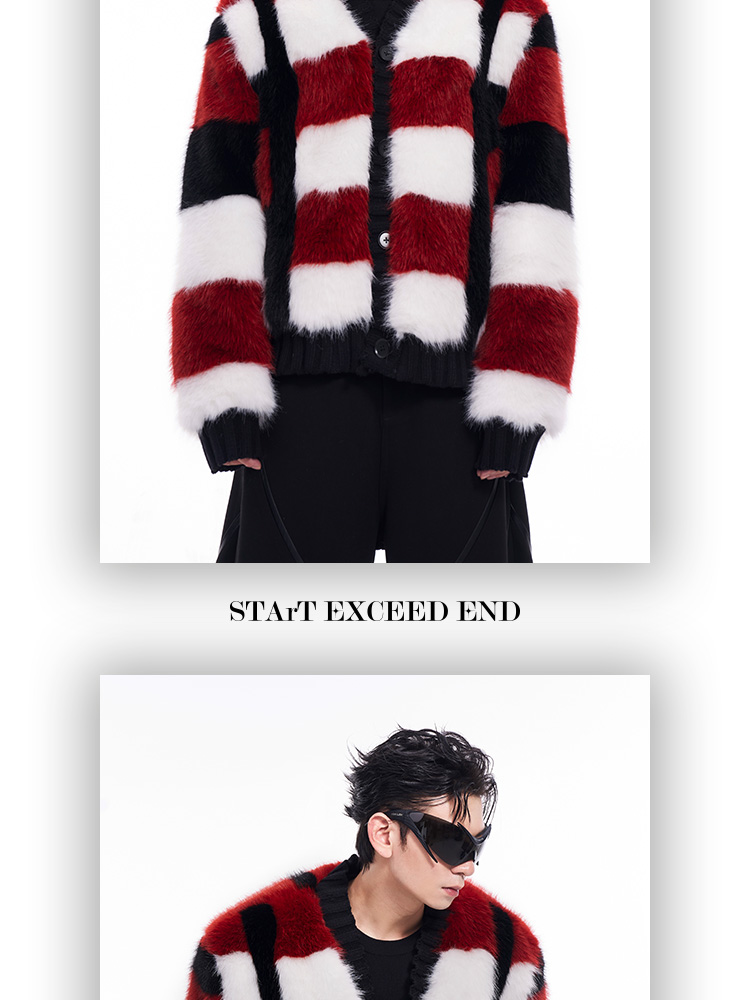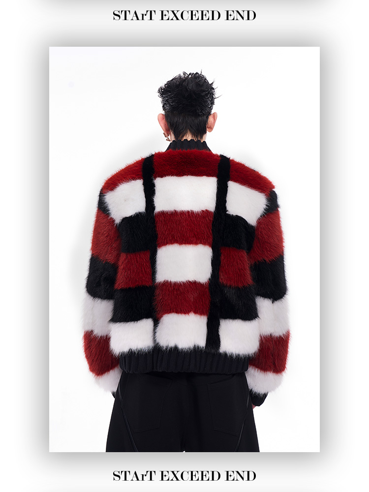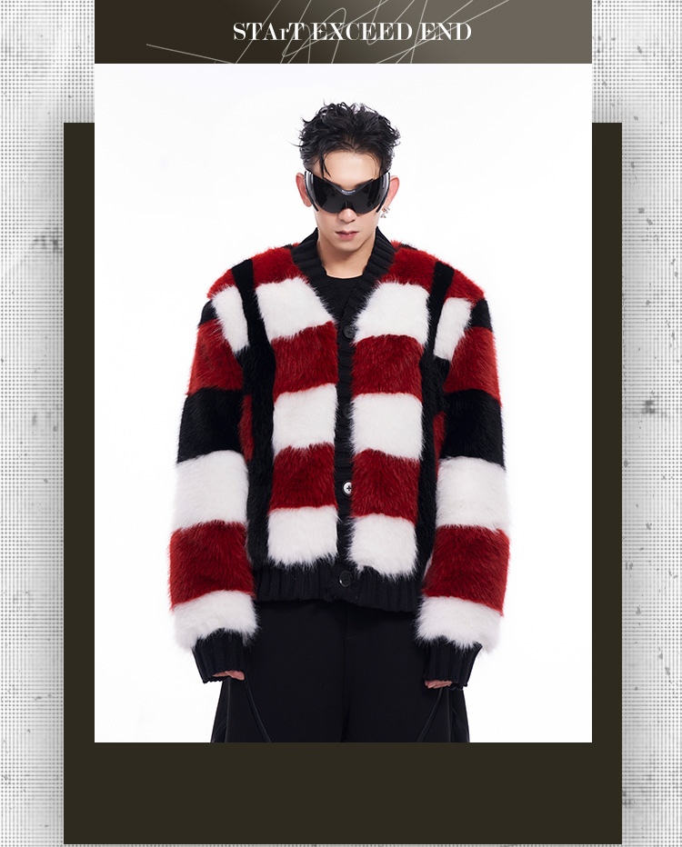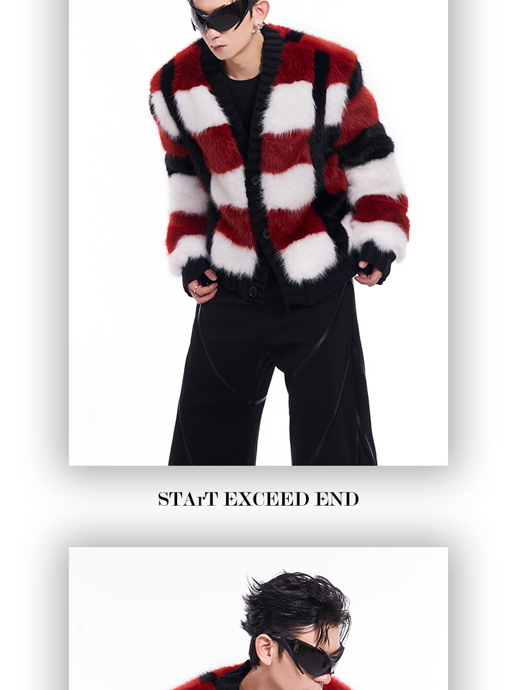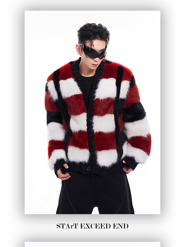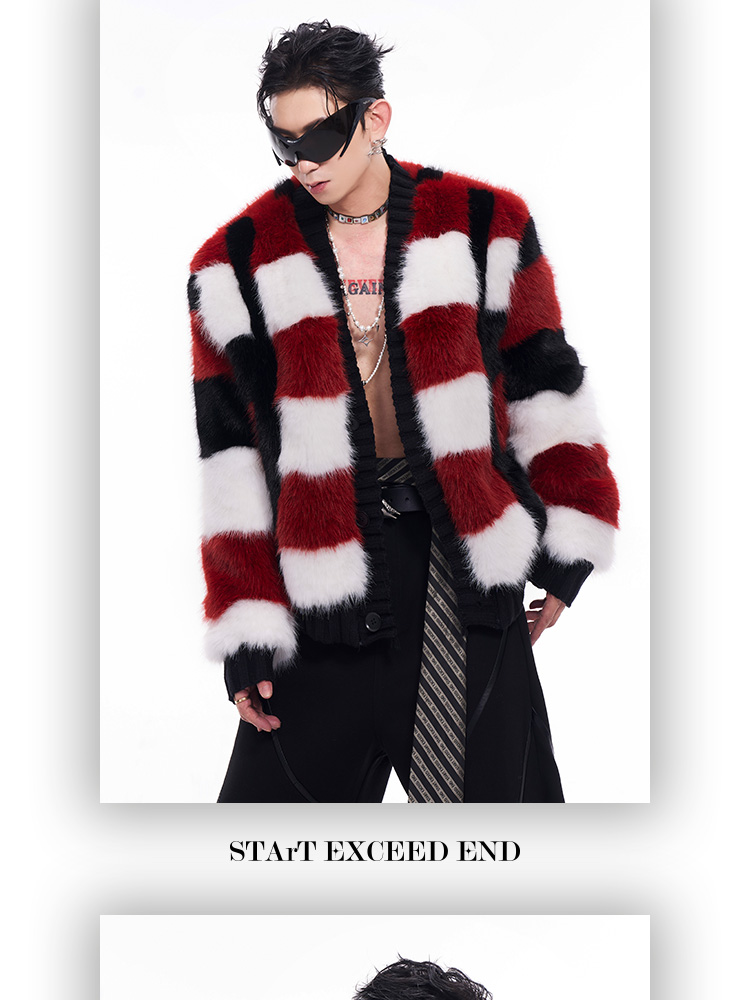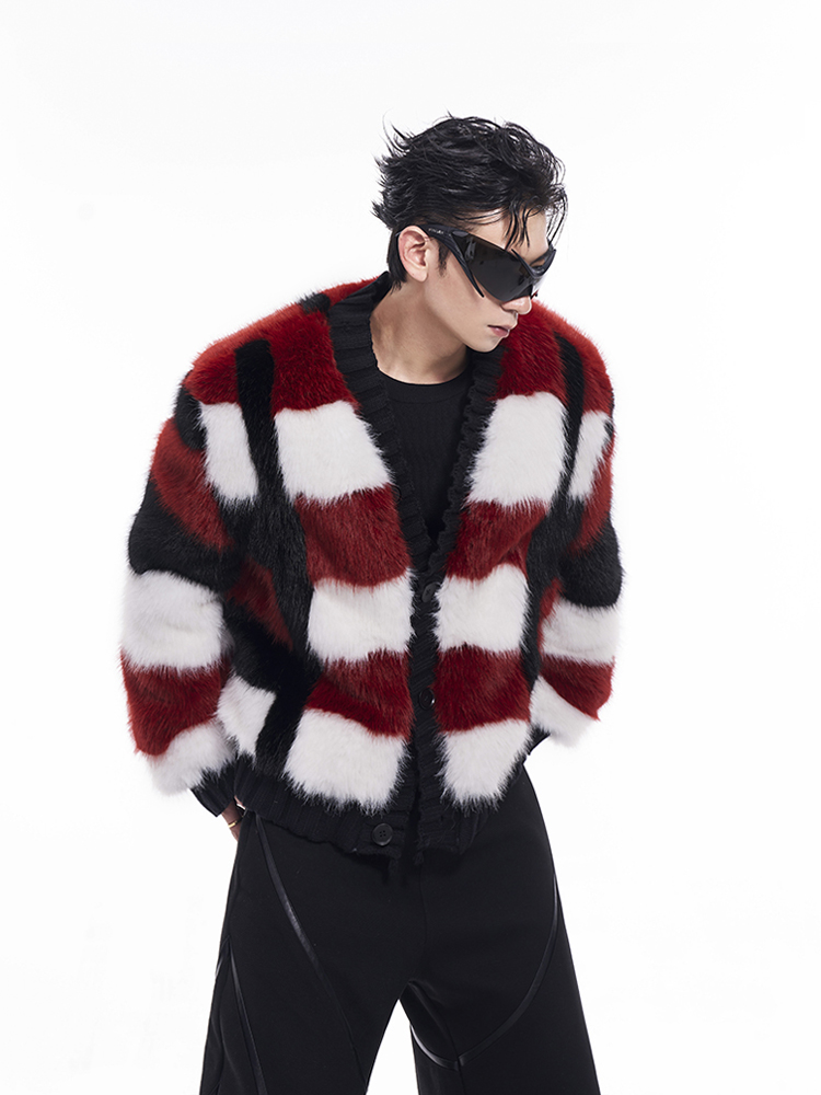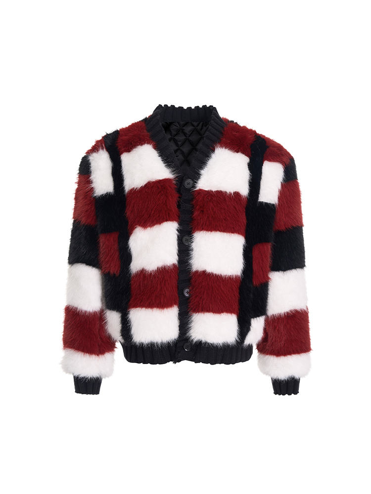 Fake Fur Quilted Collarless Knit Cardigan WN11685