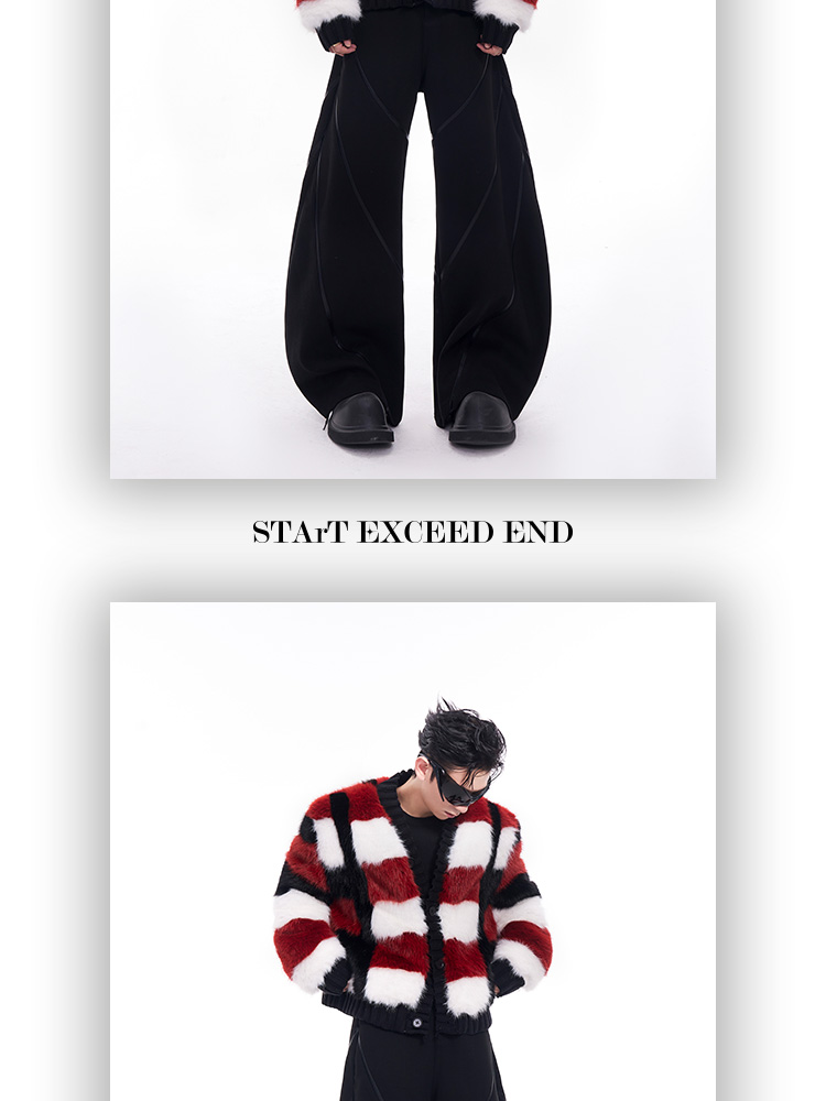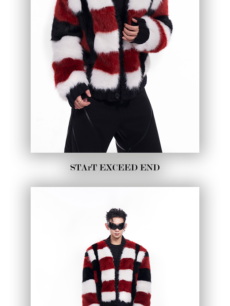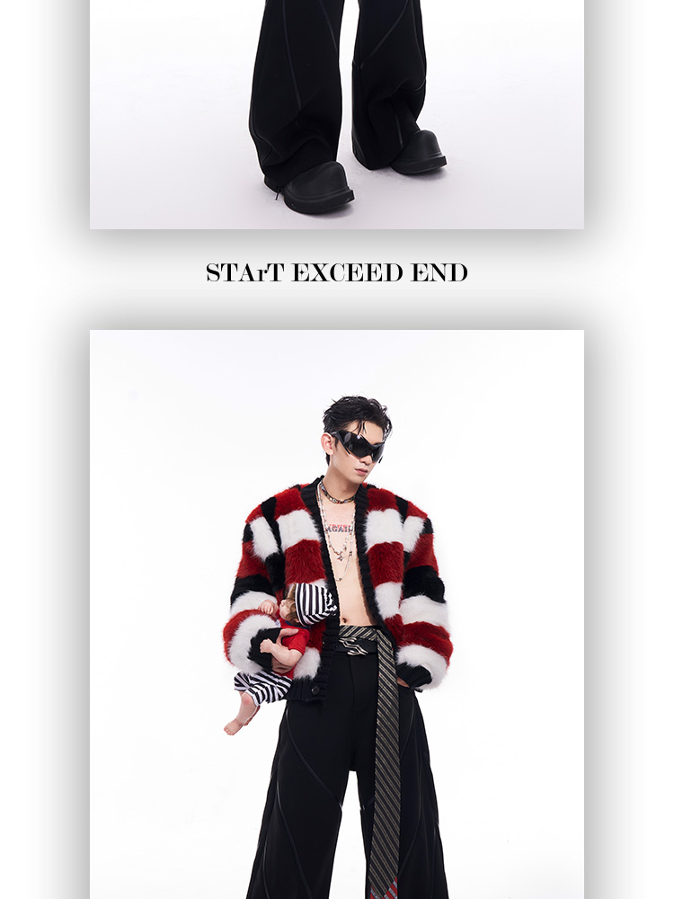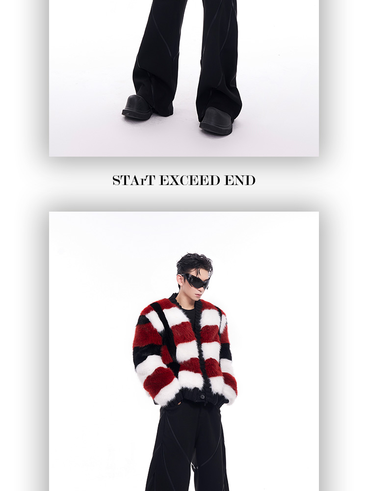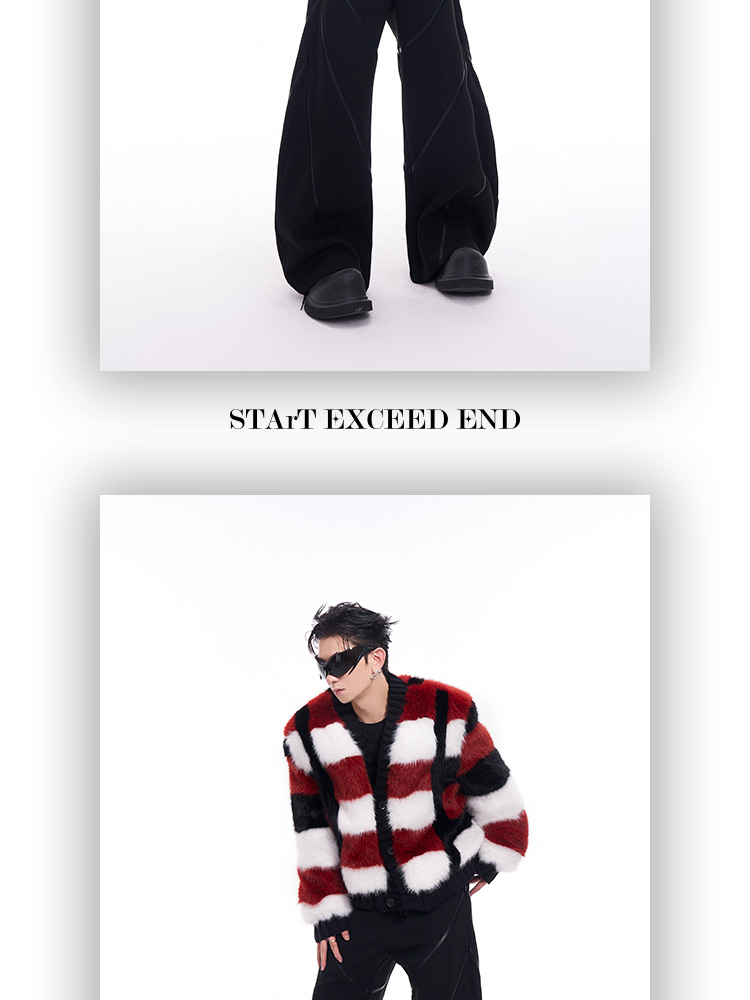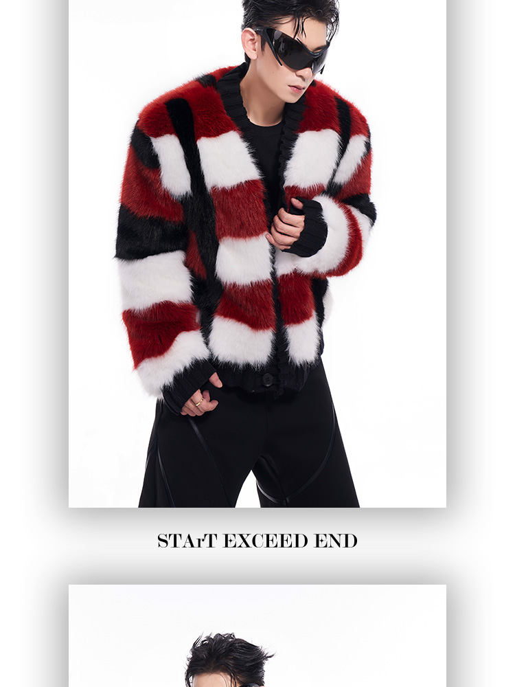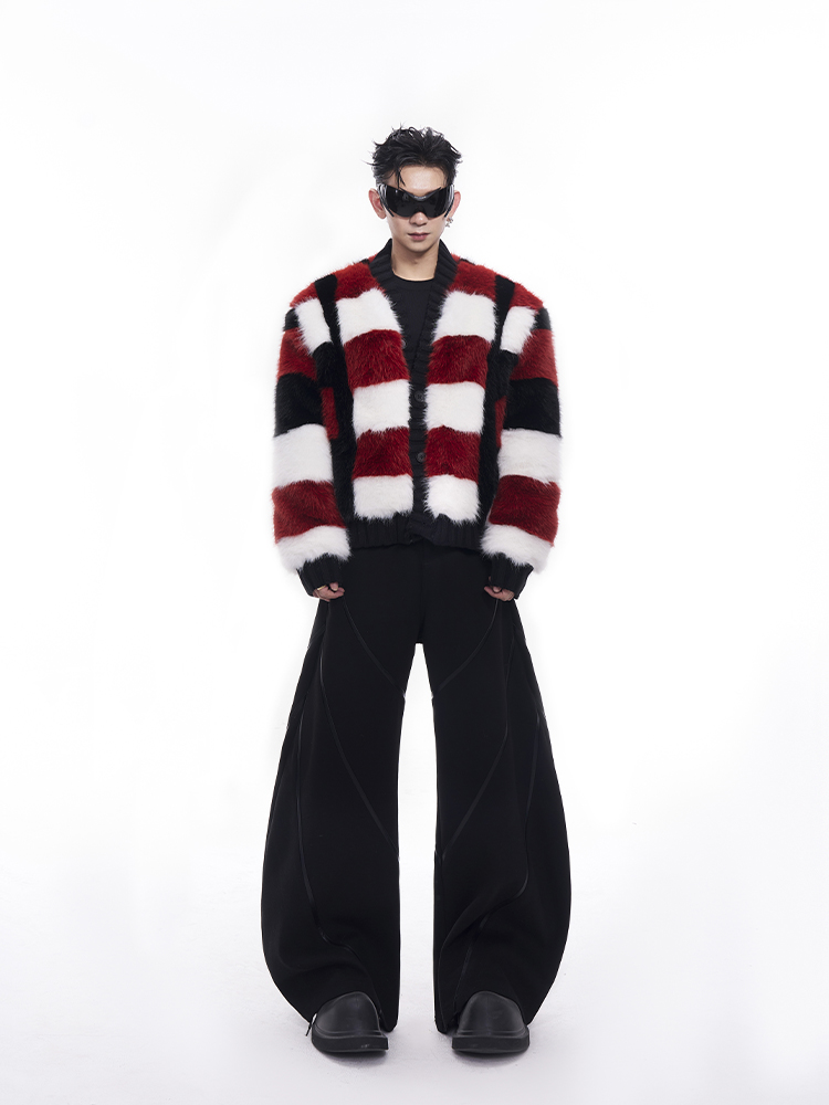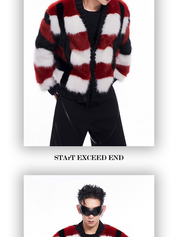 Fake Fur Quilted Collarless Knit Cardigan WN11685