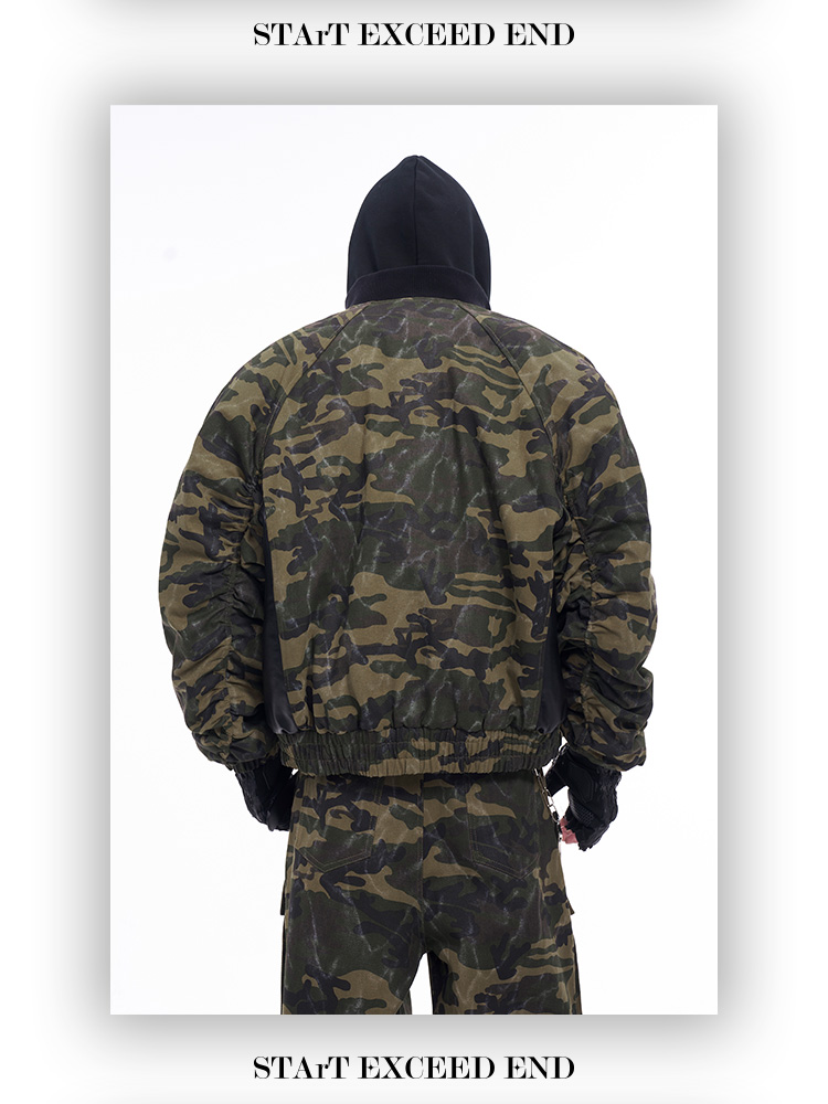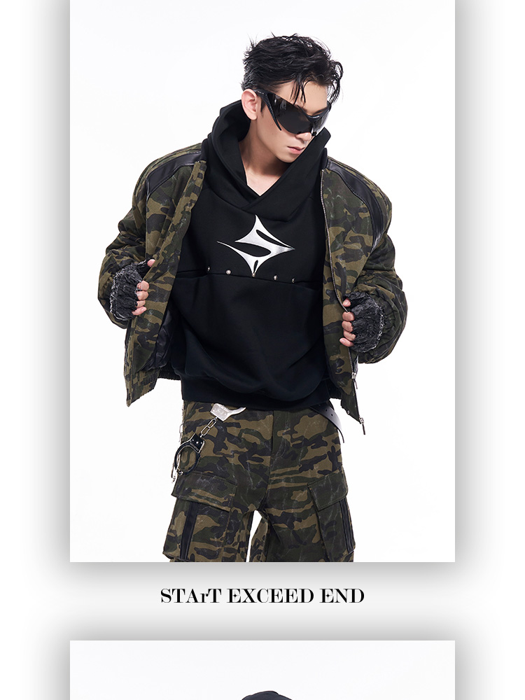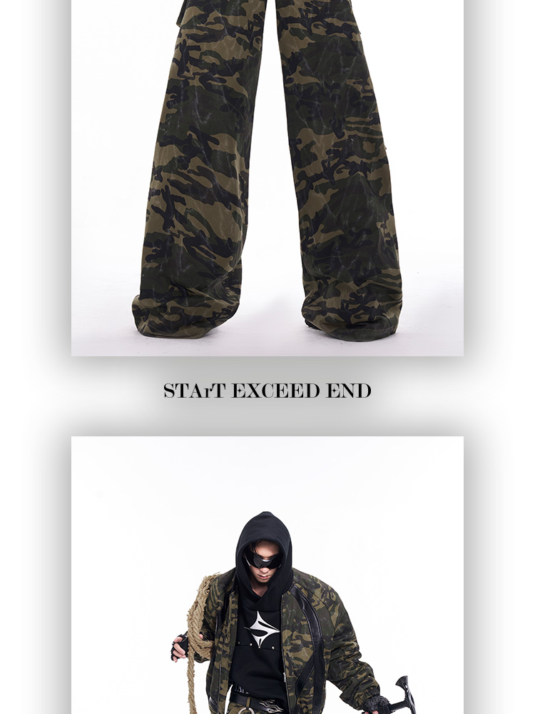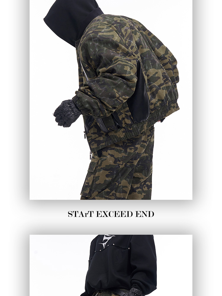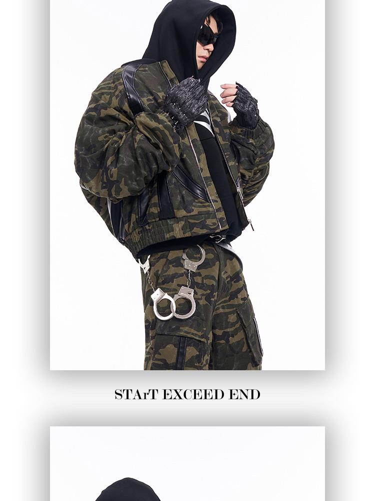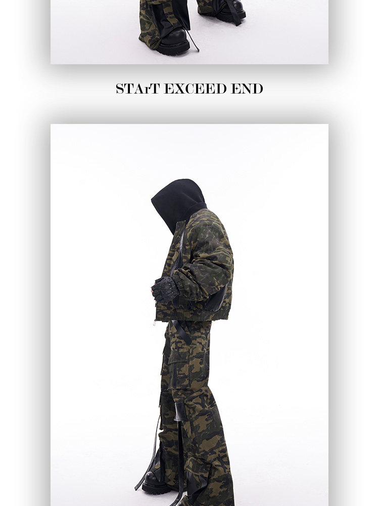 Camouflage Patchwork Leather Jacket & Cargo Pants Setup WN11726