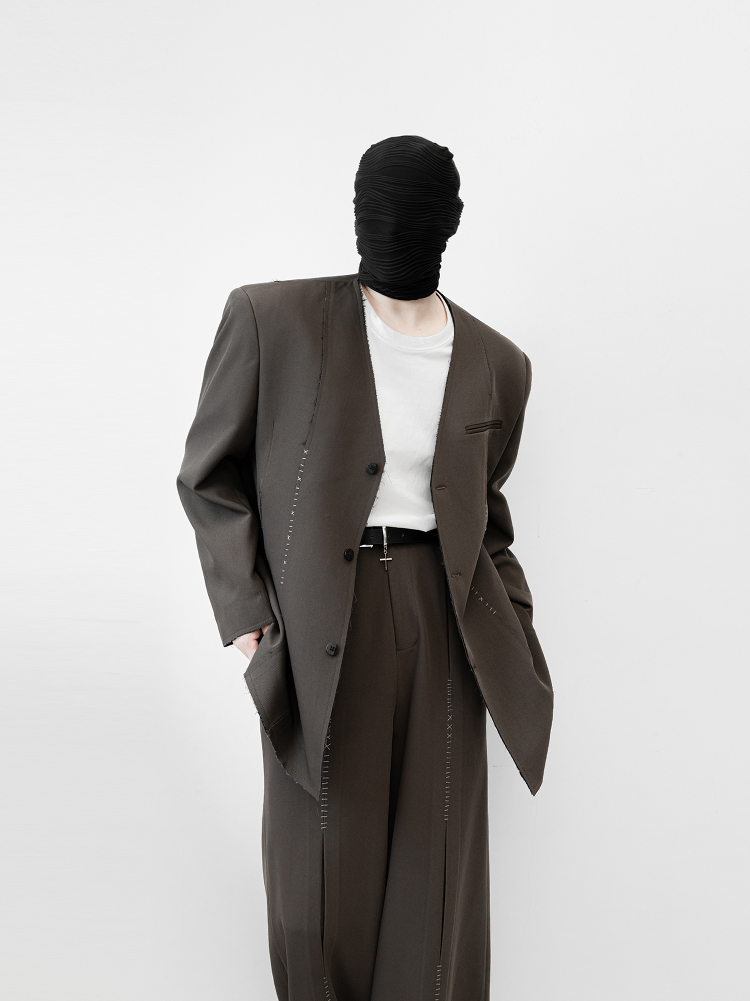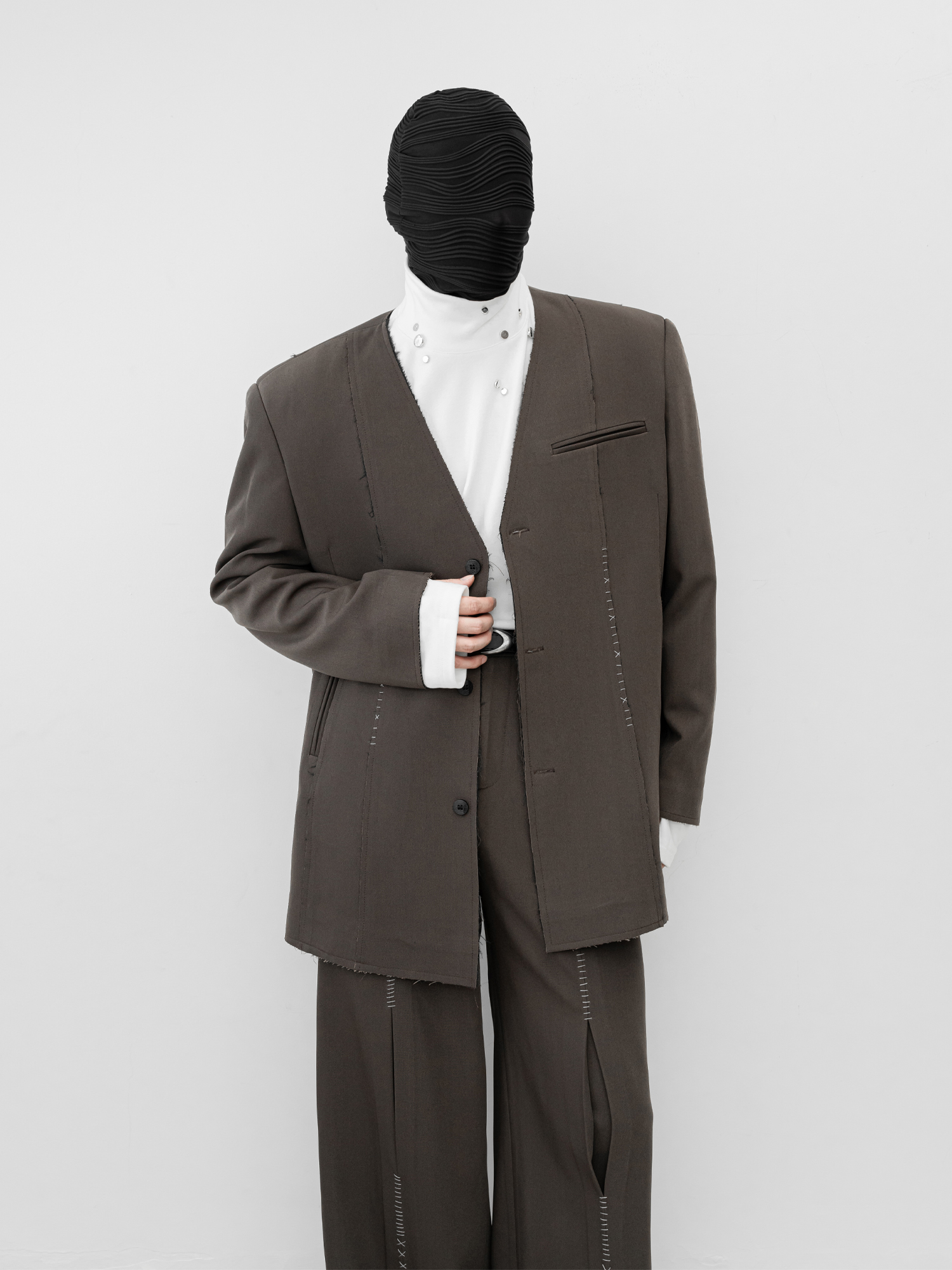 Hand-Stitched Raw Edge Tailored Jacket & Trousers Setup WN11796