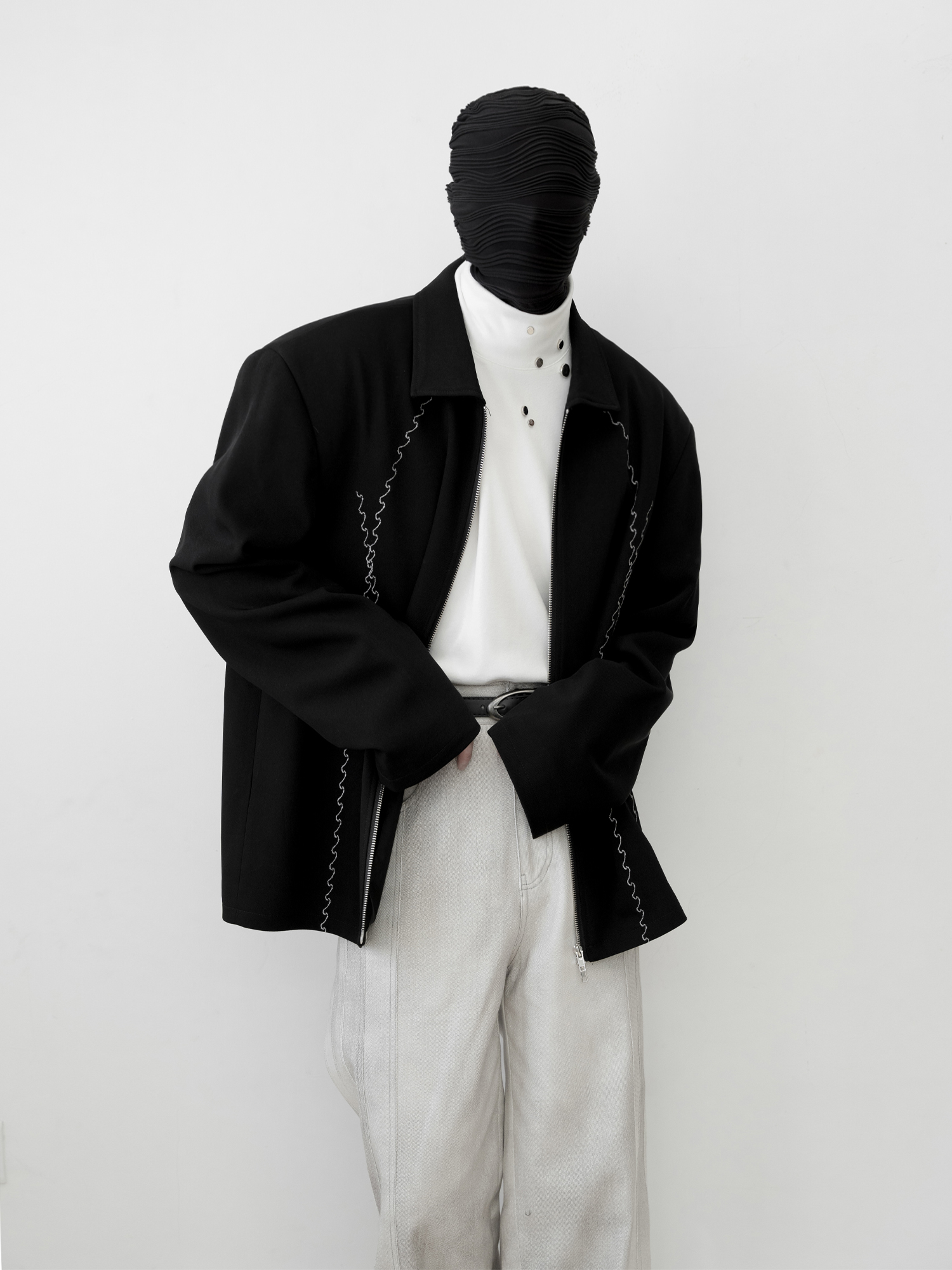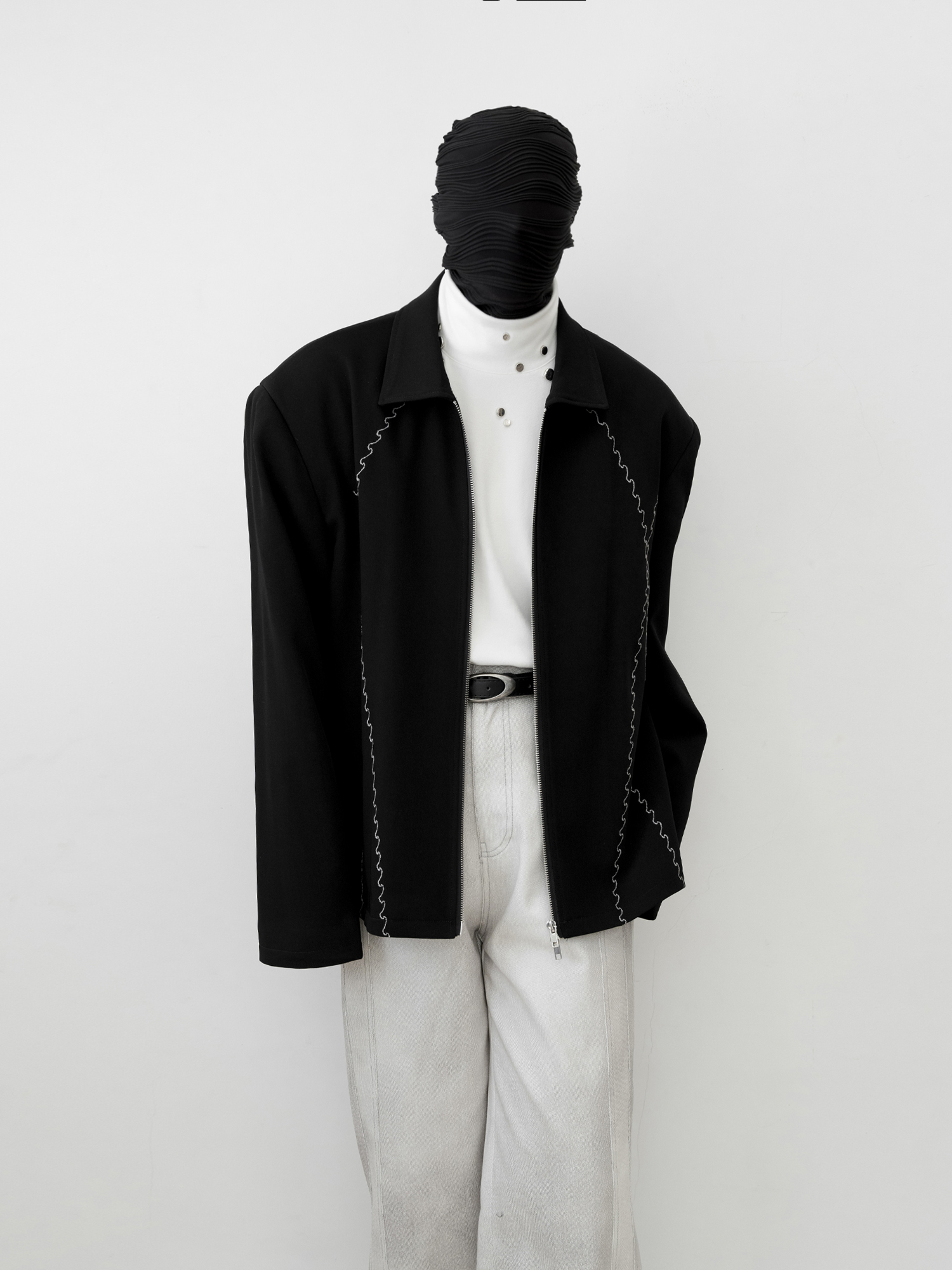 Oversize Shoulder-pad Embroidery Jacket WN11856