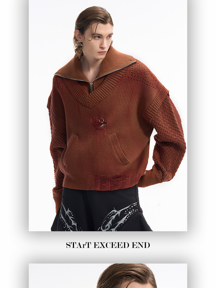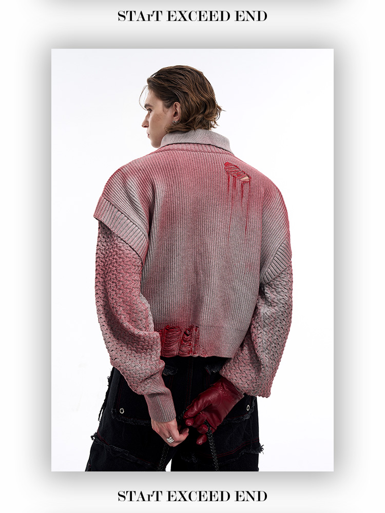 Spray-Paint Fake Layered Knit Sweater WN12117