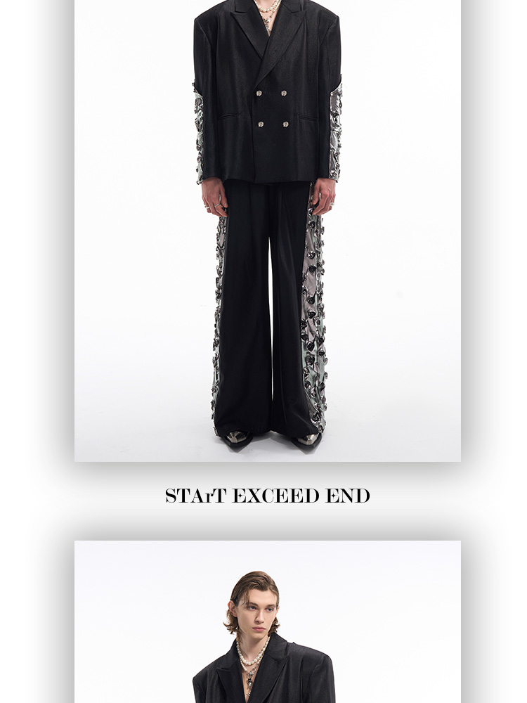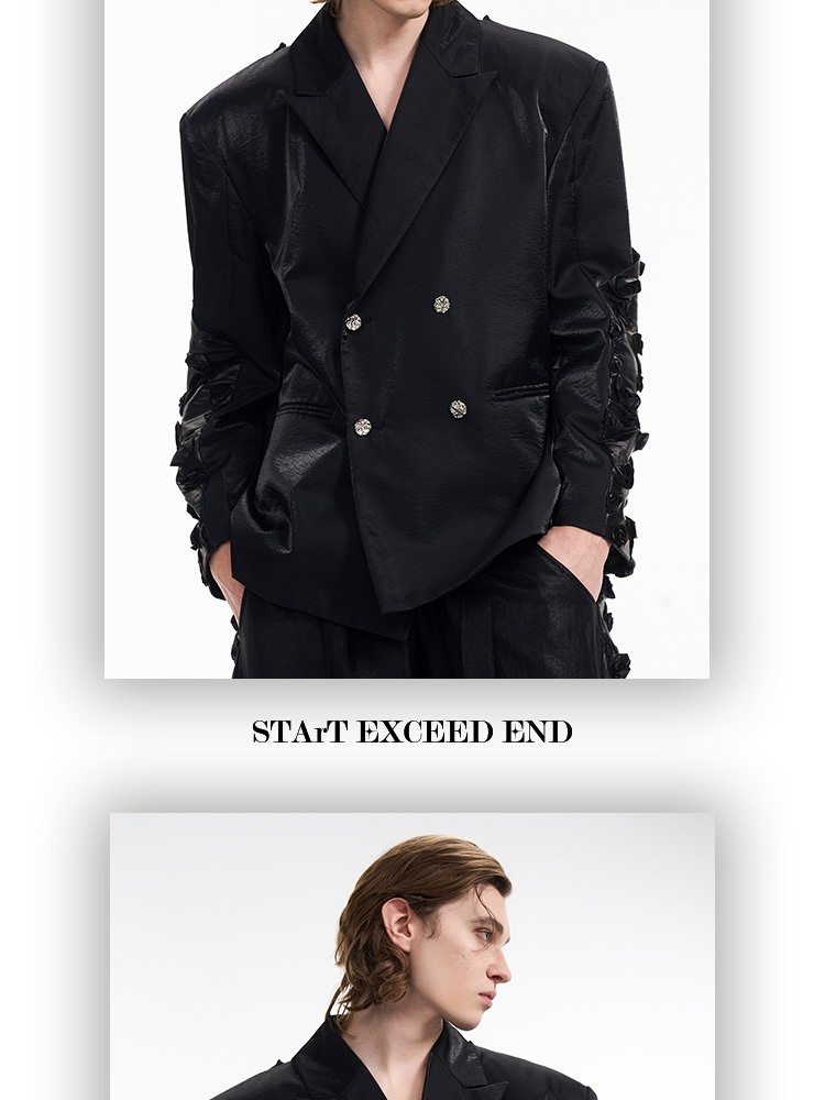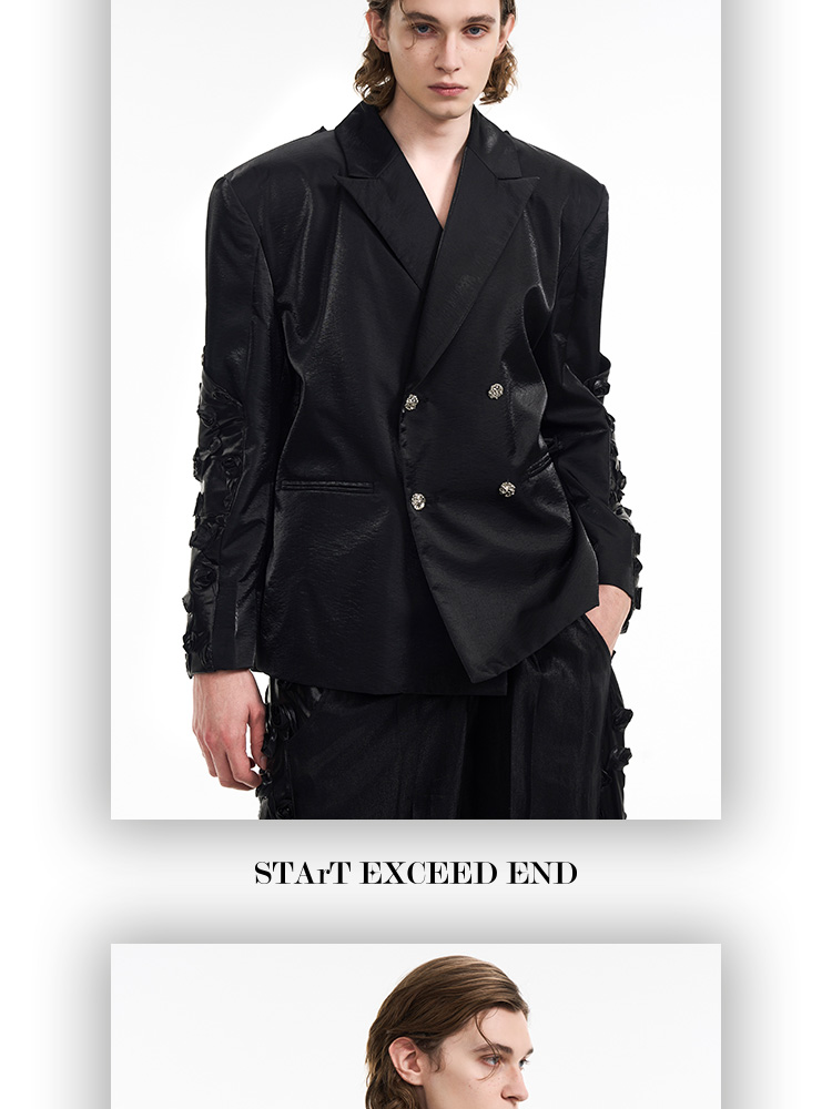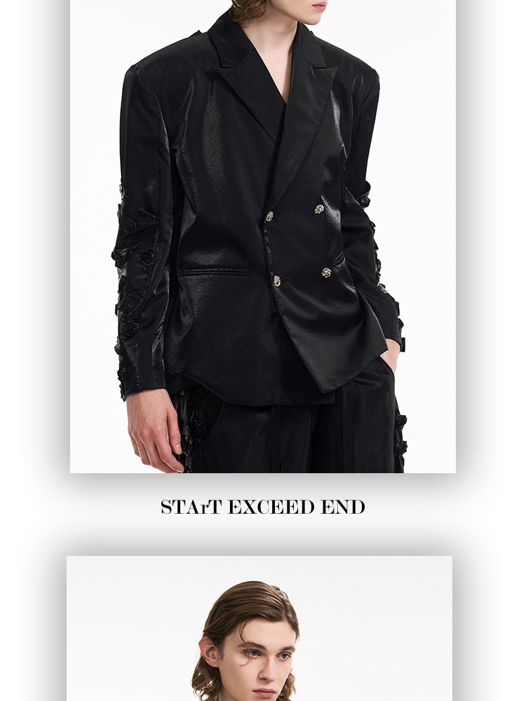 3D Rose Sleeve Glossy Tailored Jacket & Pants Setup WN12119