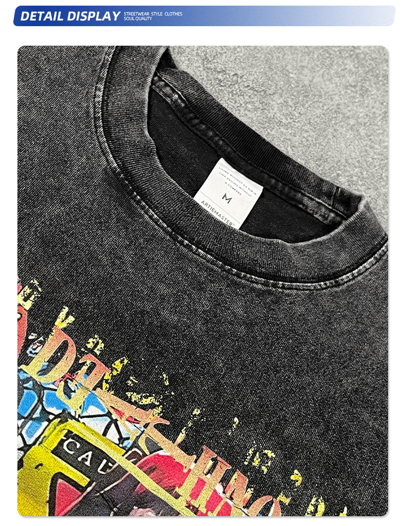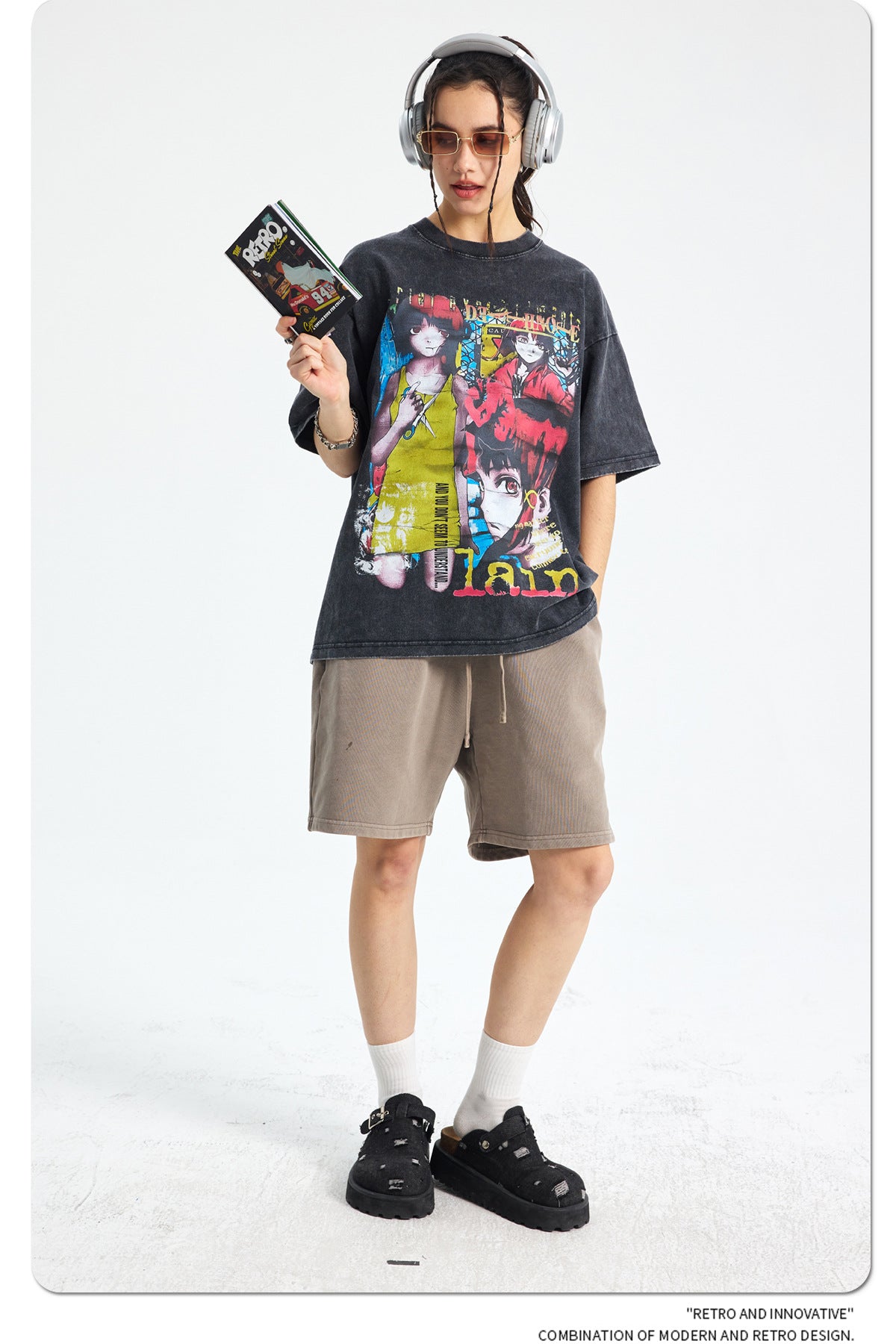 Cartoon Girl Print Washed Short Sleeve T-Shirt WN16269