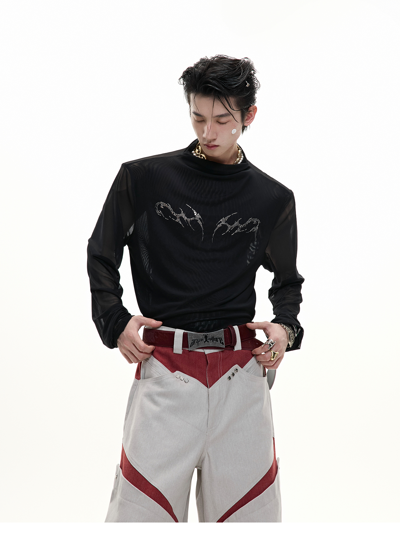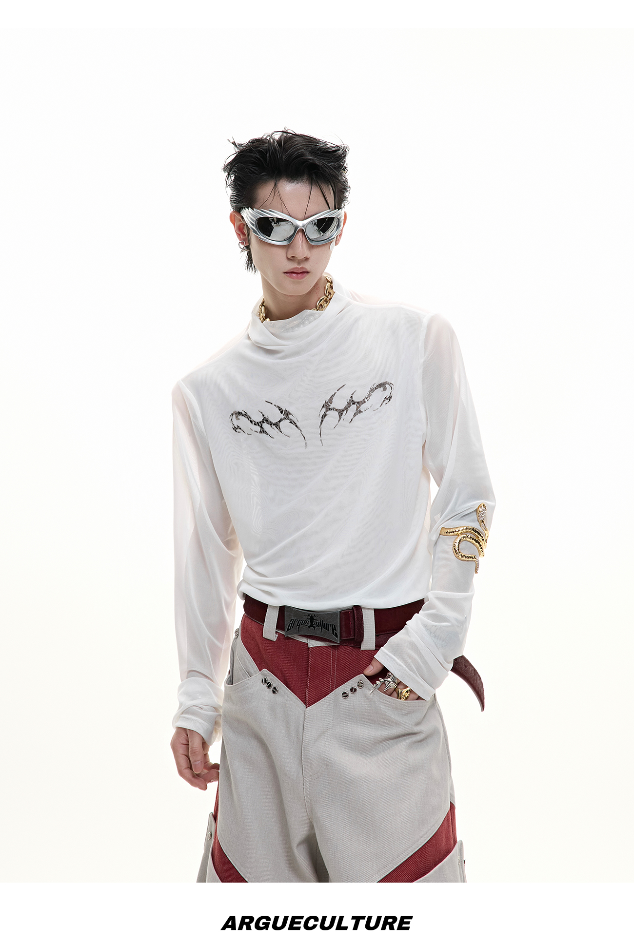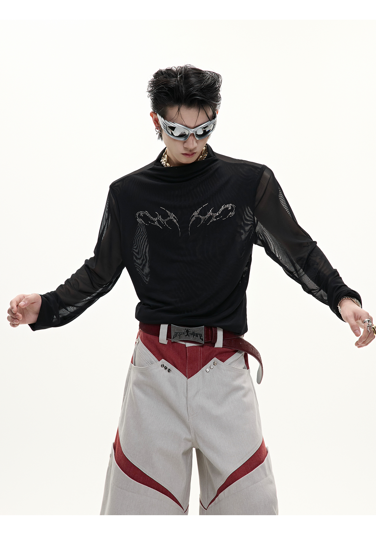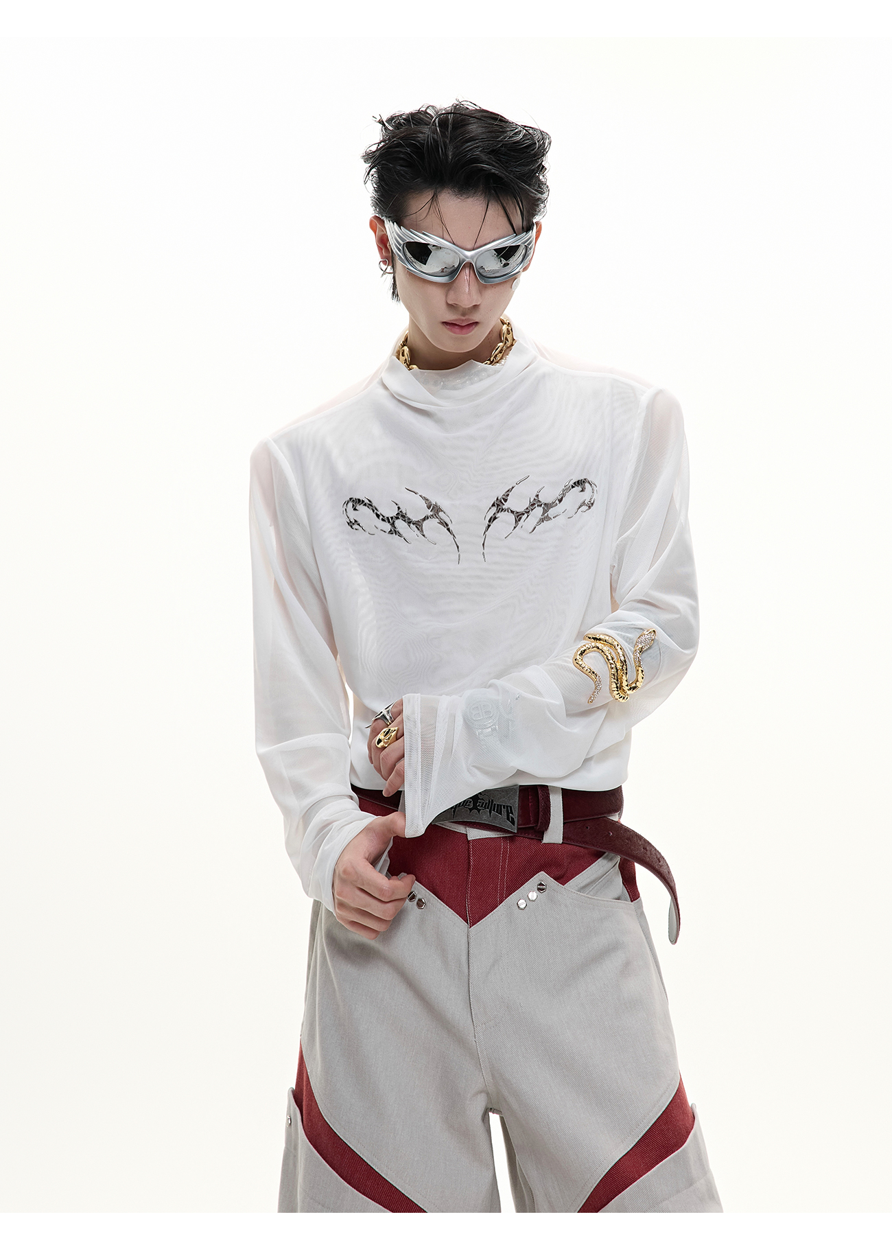Mesh Cool-Touch Slim Metal Print Short Sleeve T-Shirt WN18351