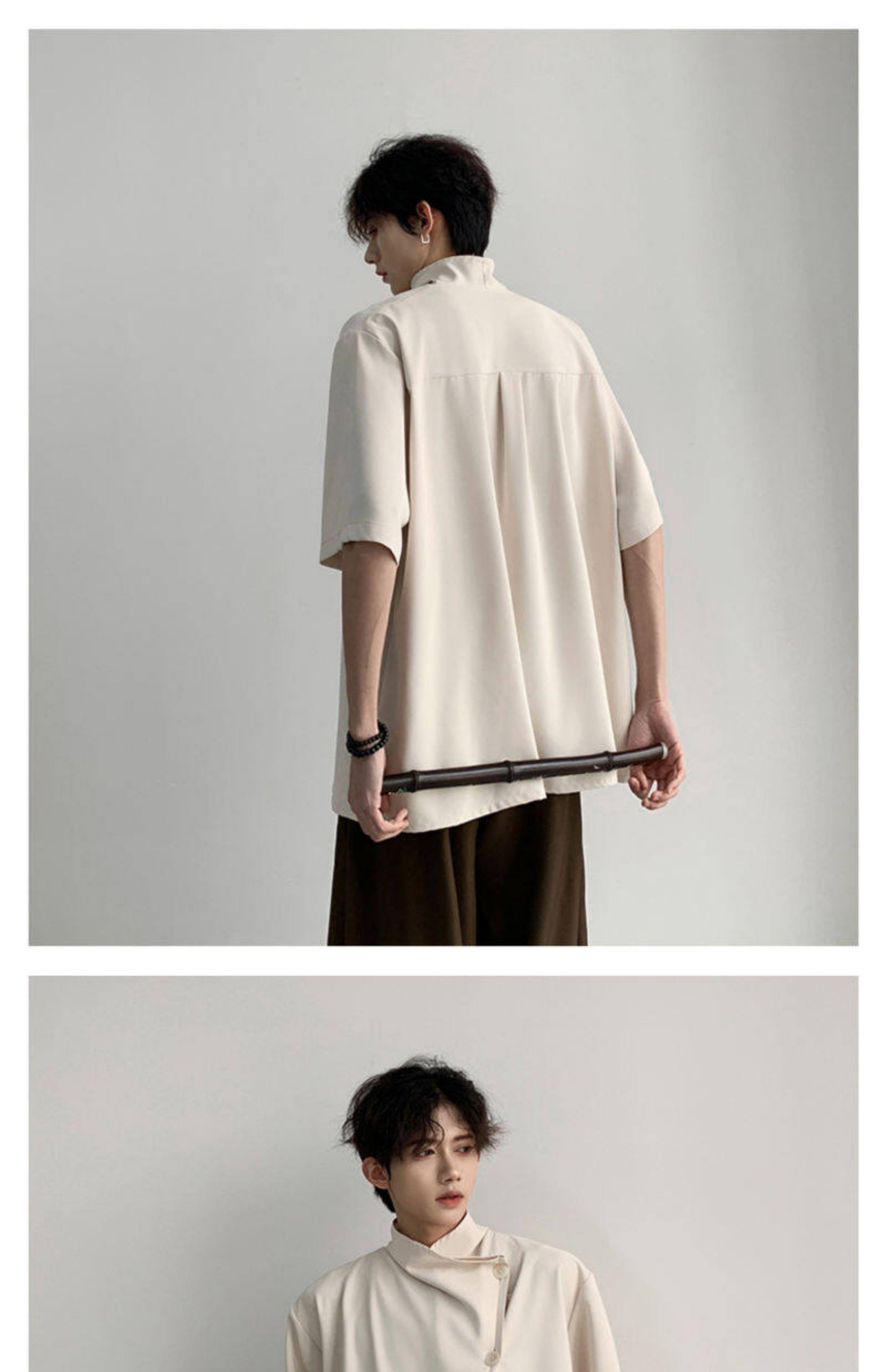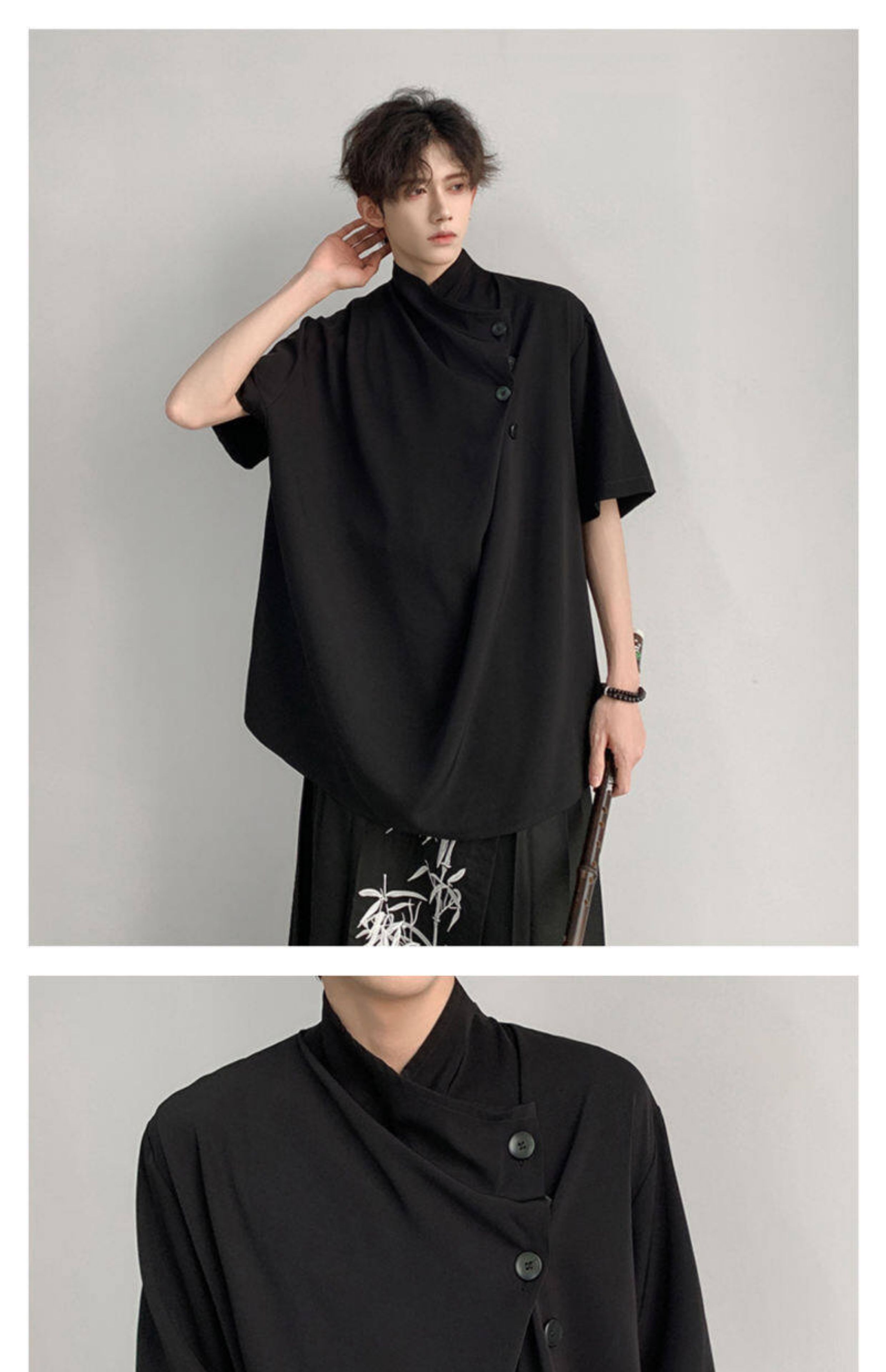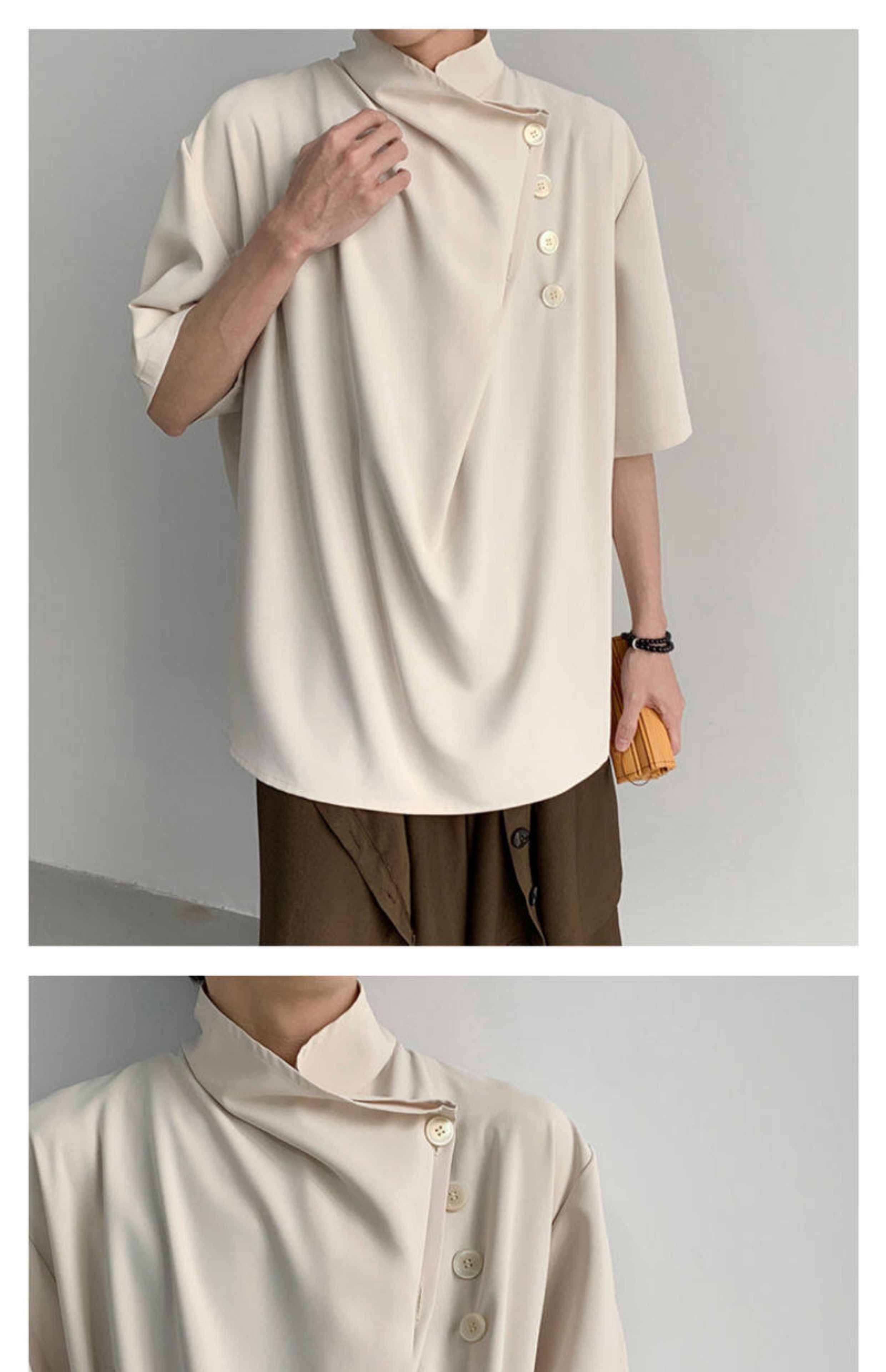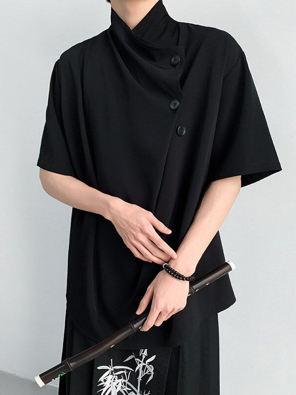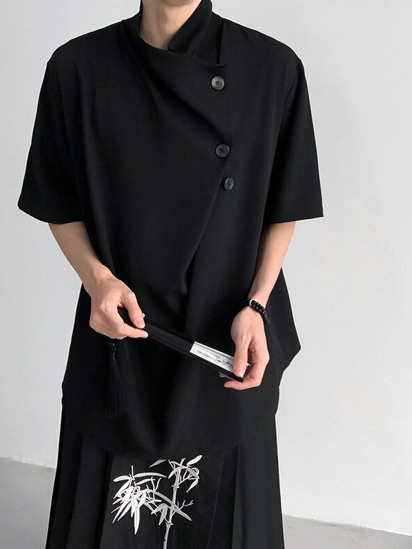 Chinese Style Asymmetrical Button Short Sleeve Shirt WN19319