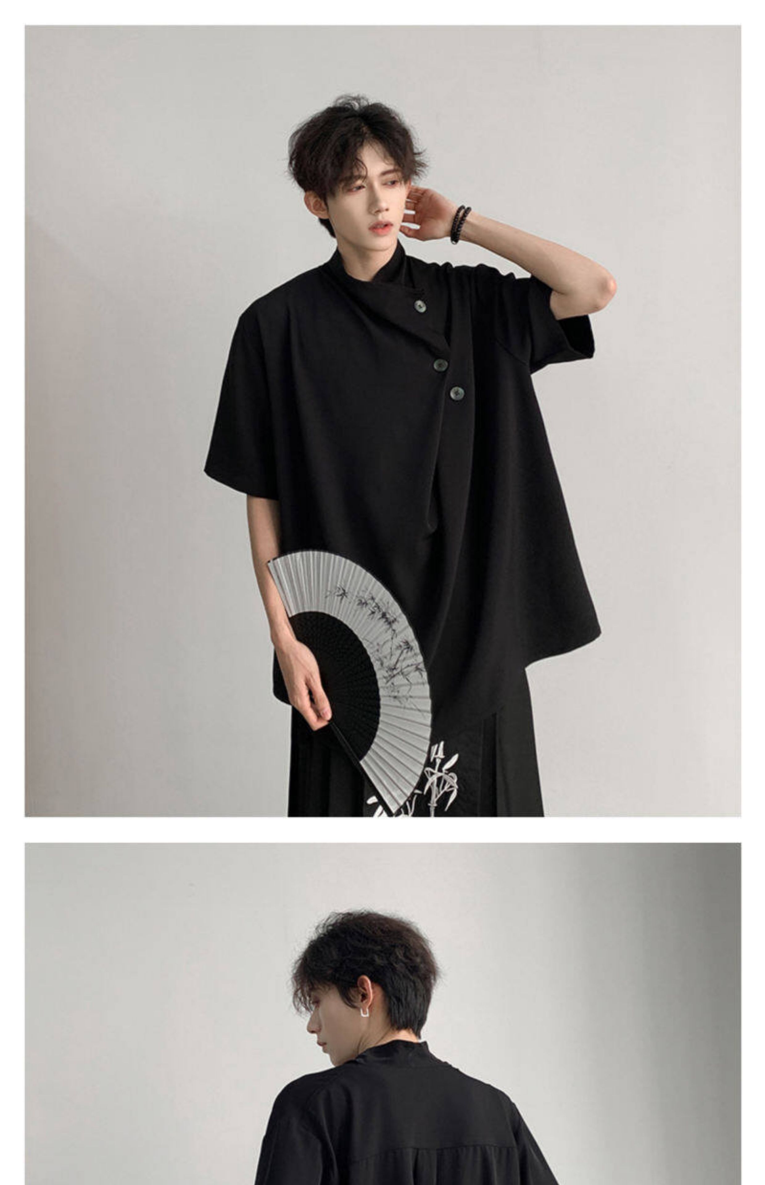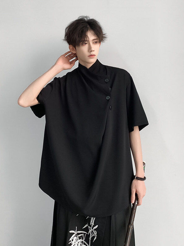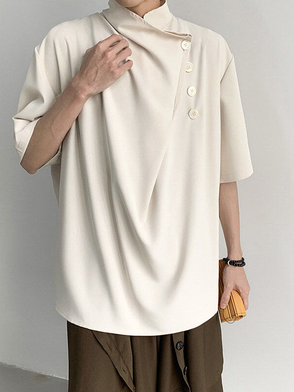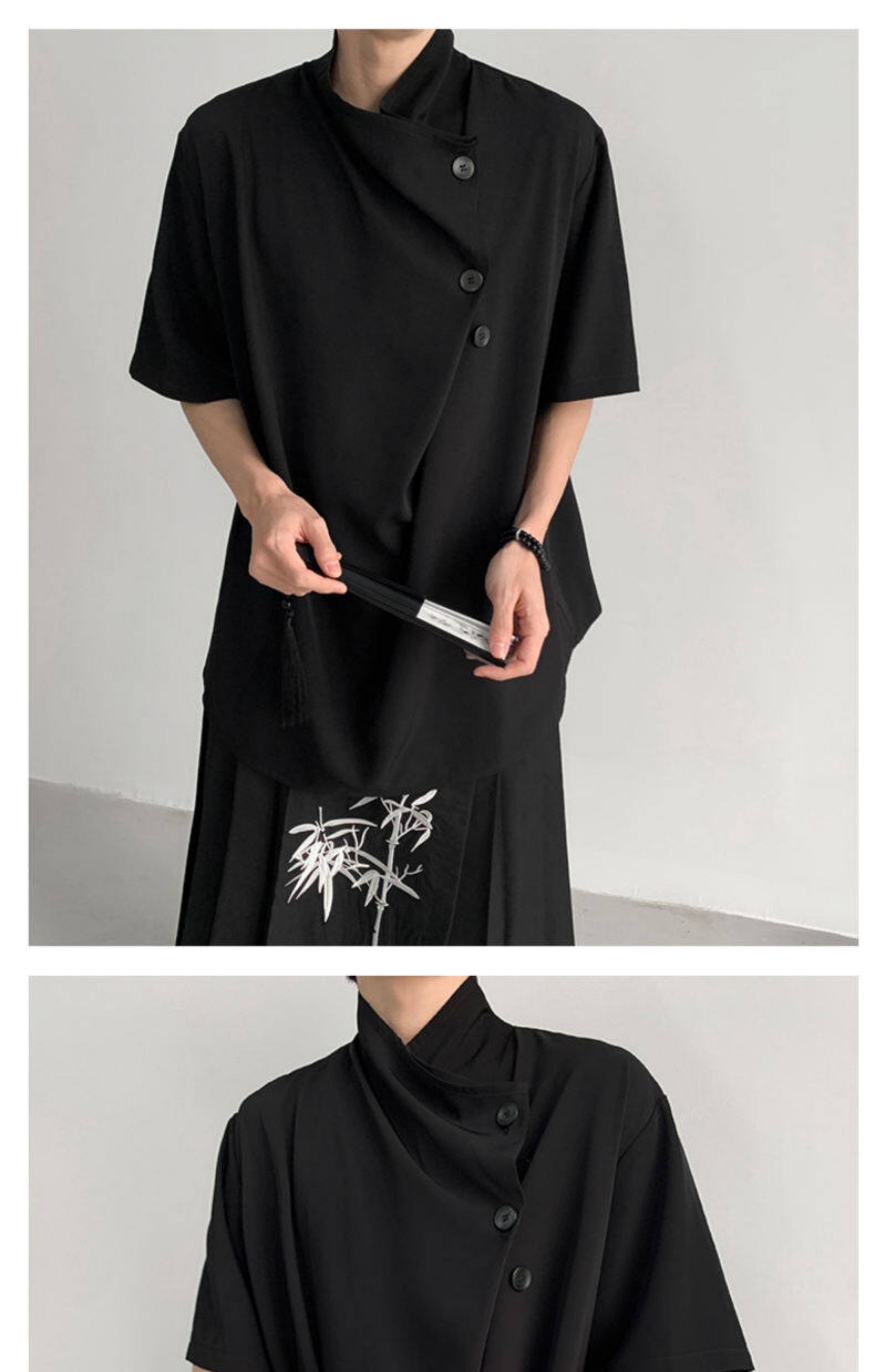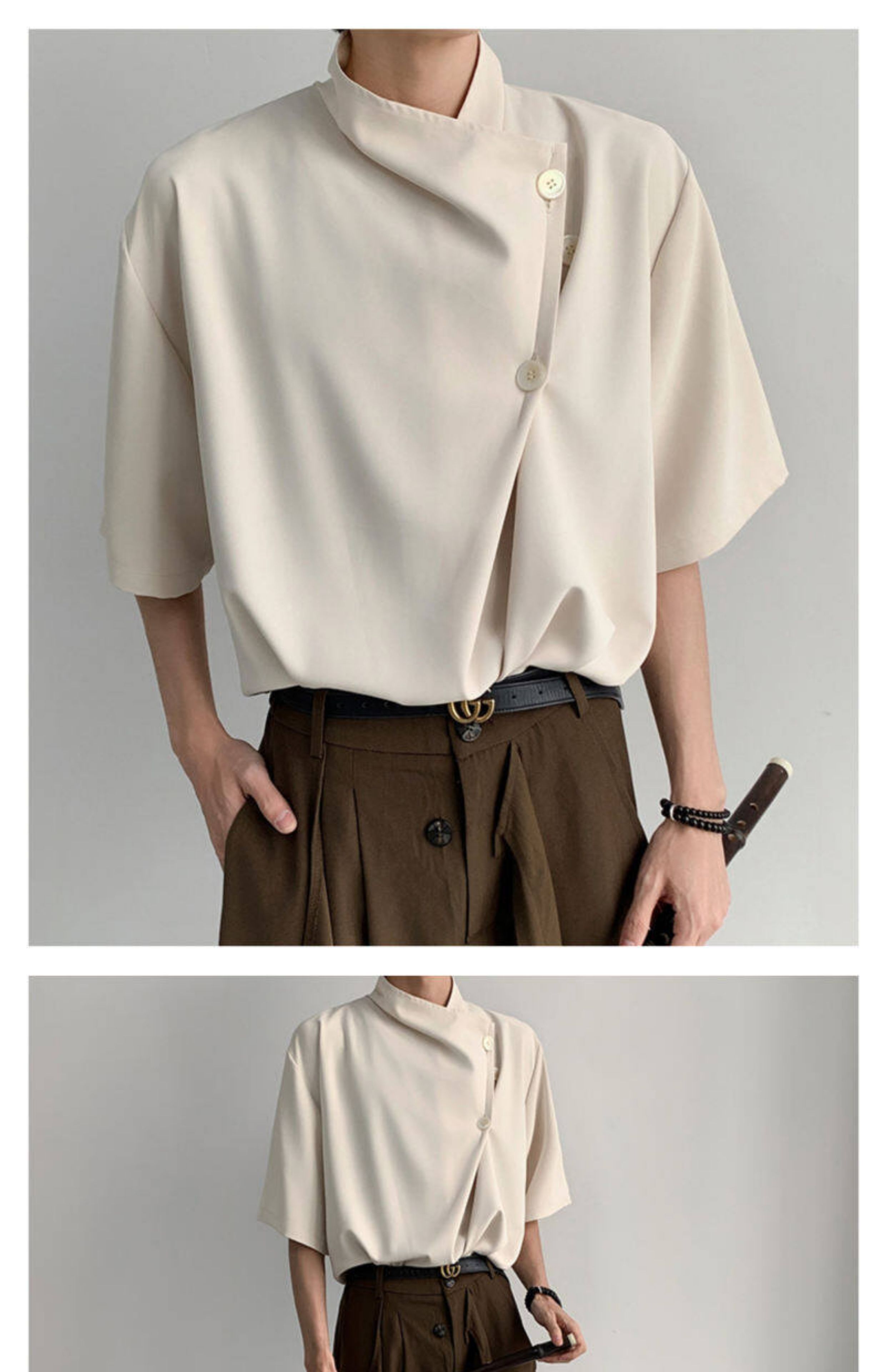Chinese Style Asymmetrical Button Short Sleeve Shirt WN19319