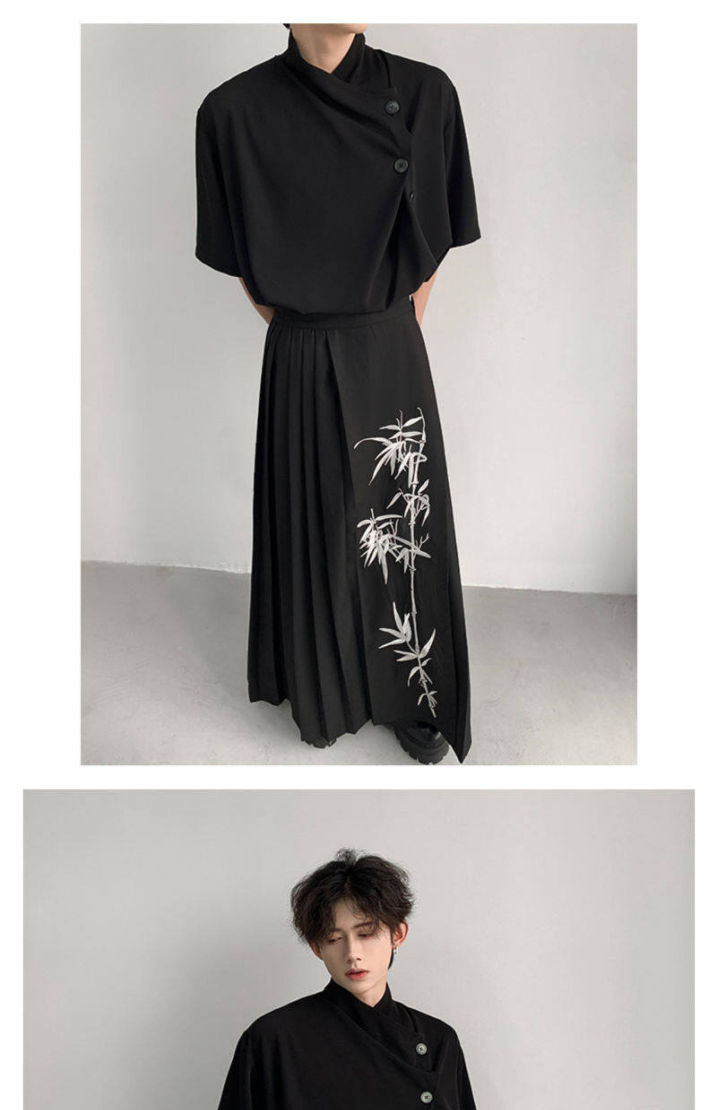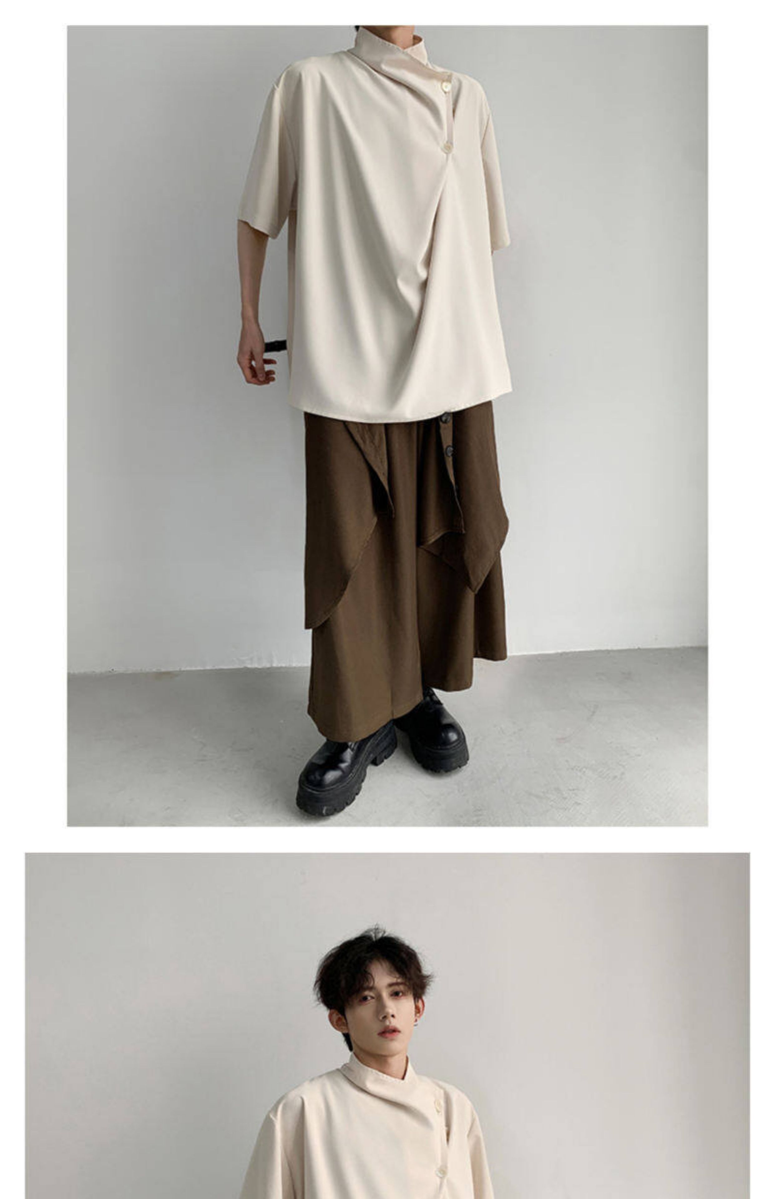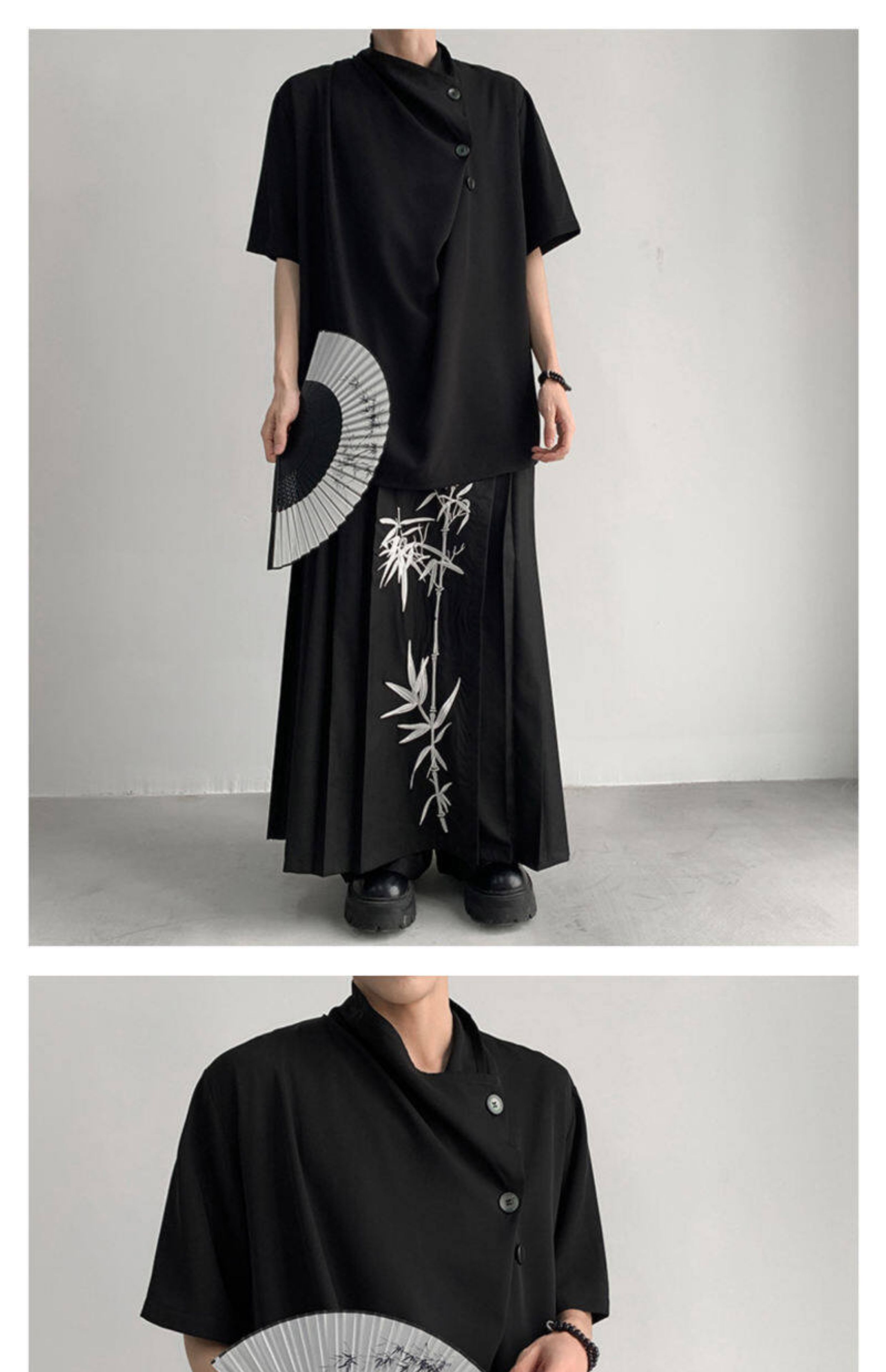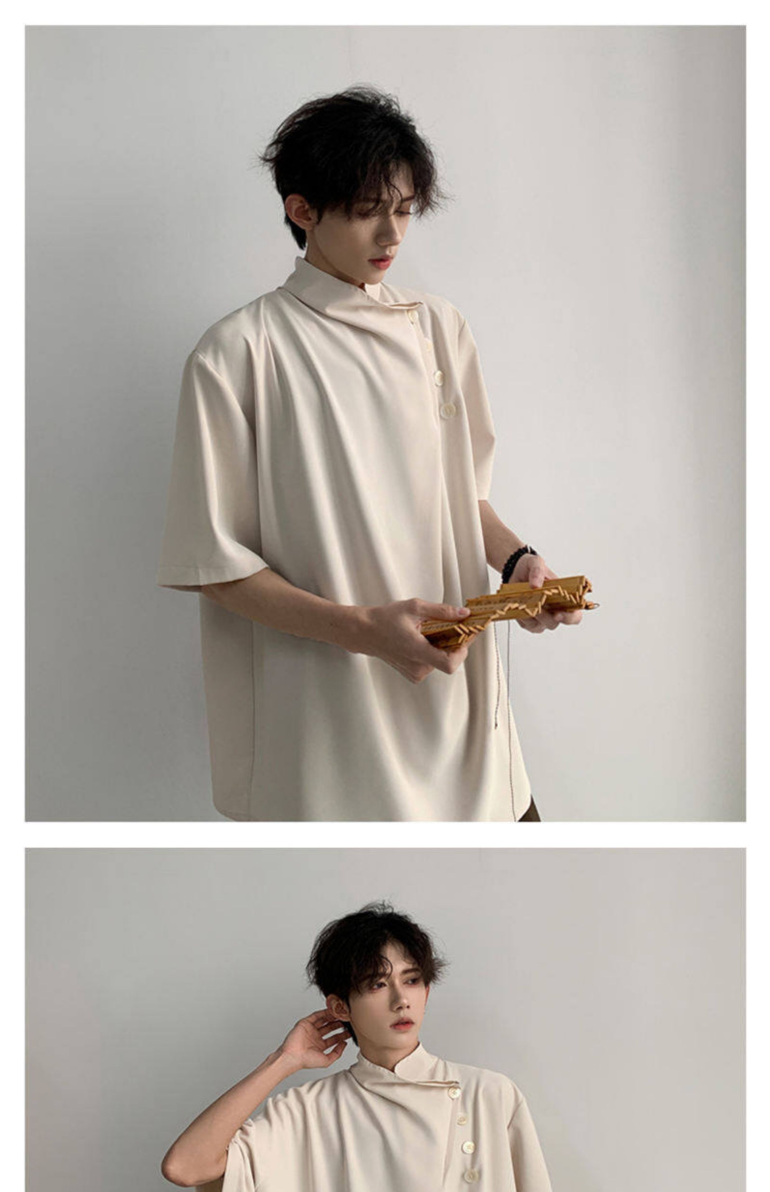 Chinese Style Asymmetrical Button Short Sleeve Shirt WN19319