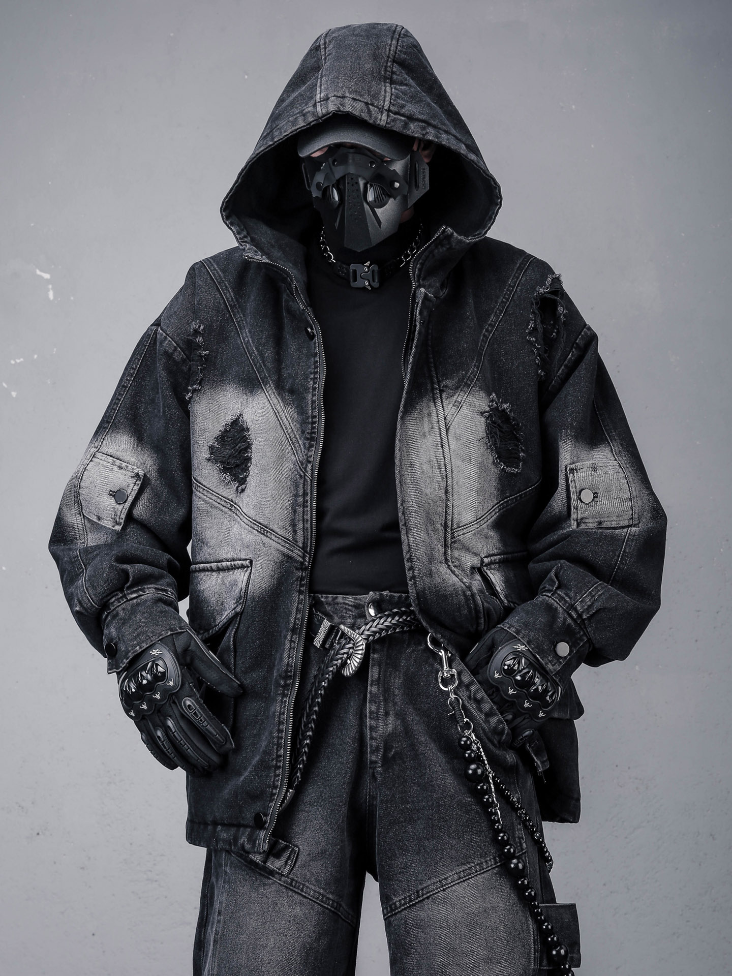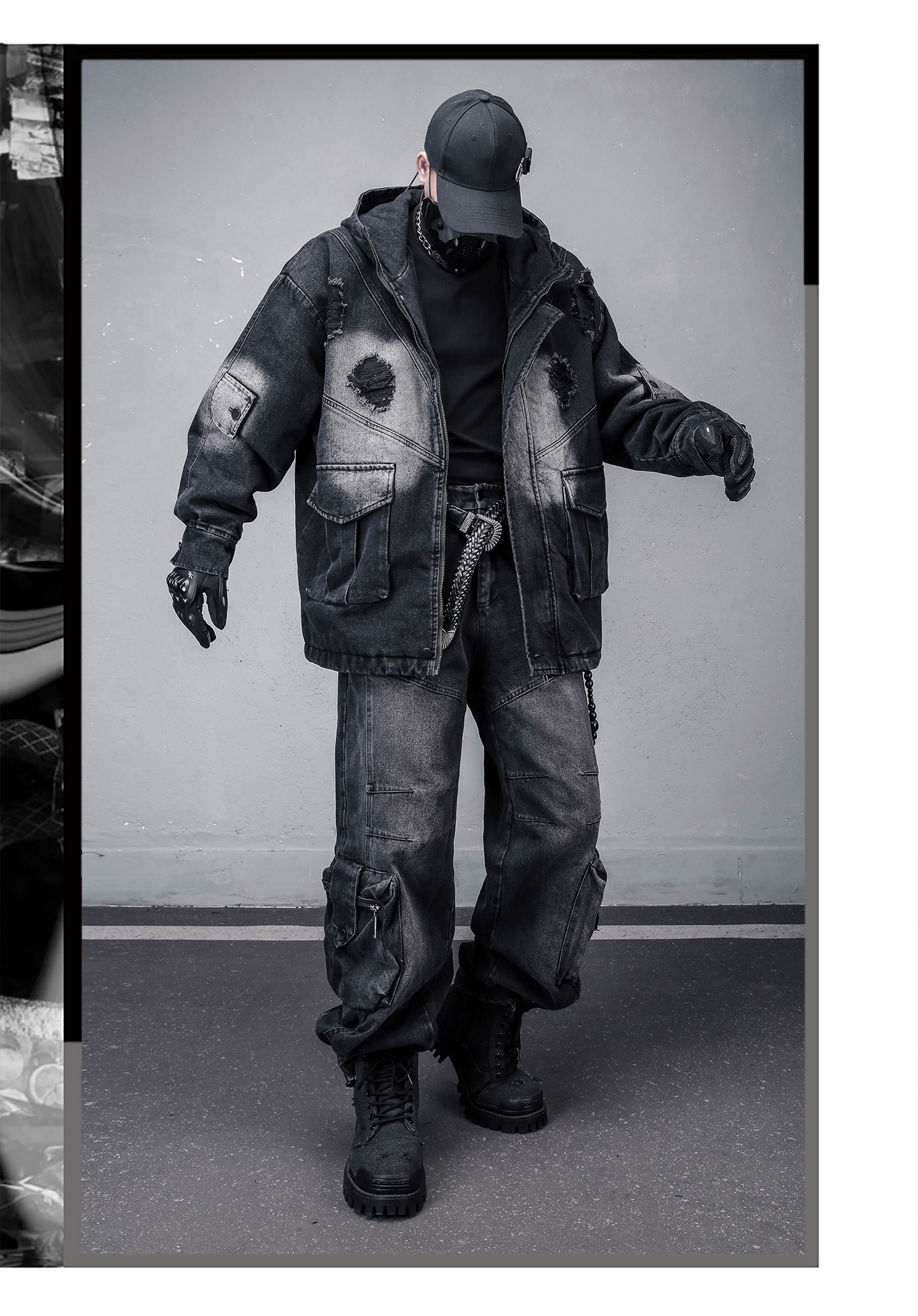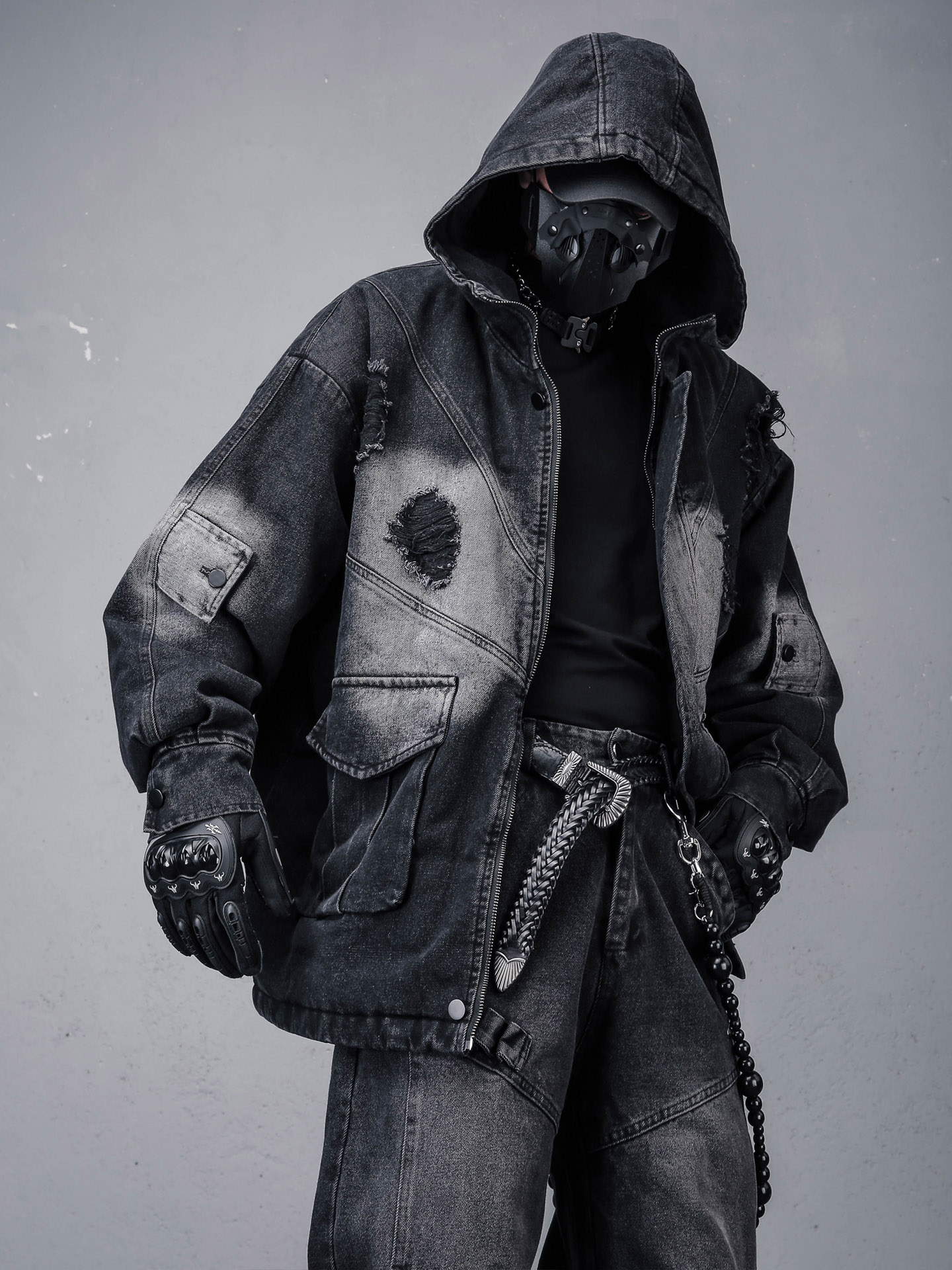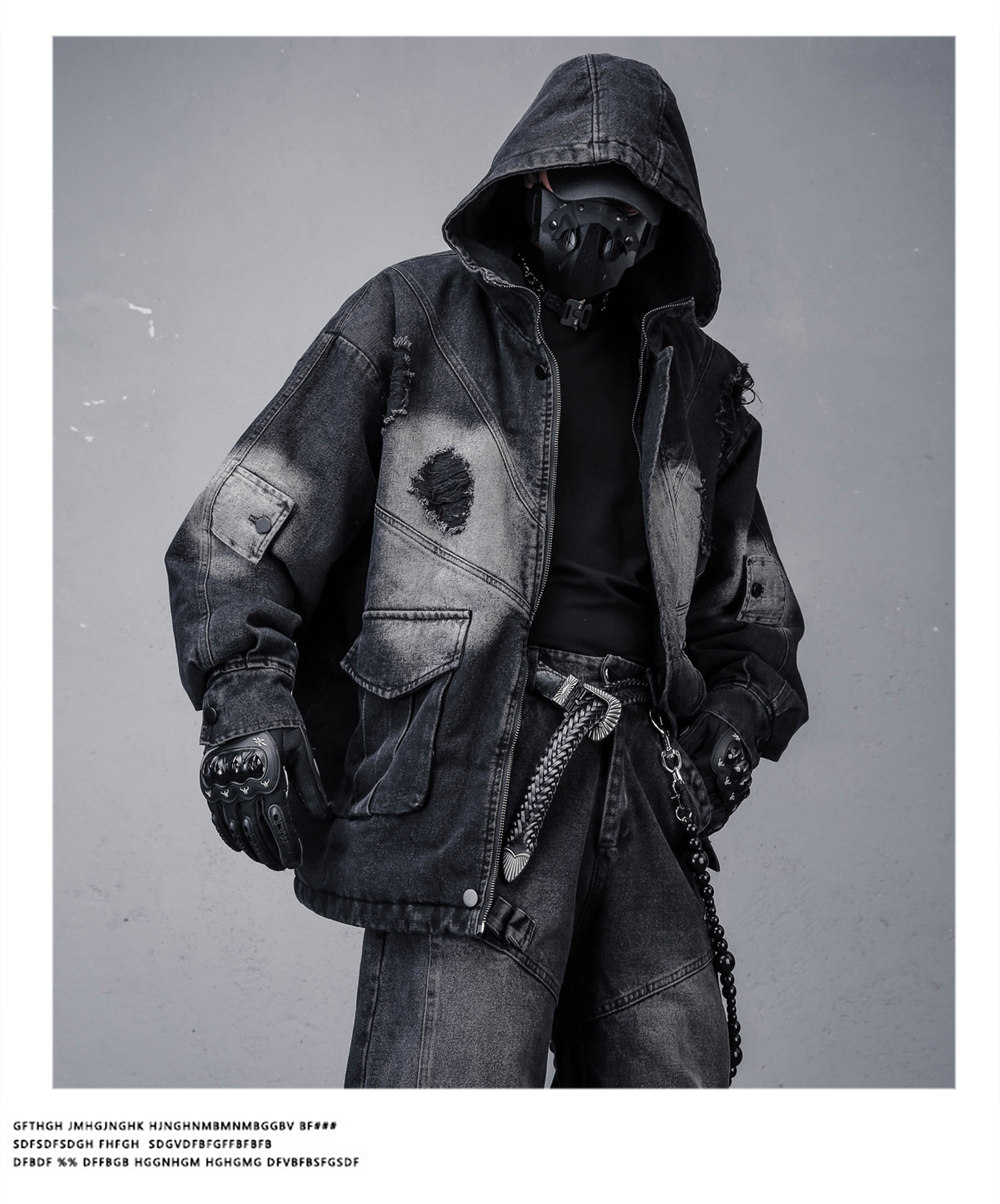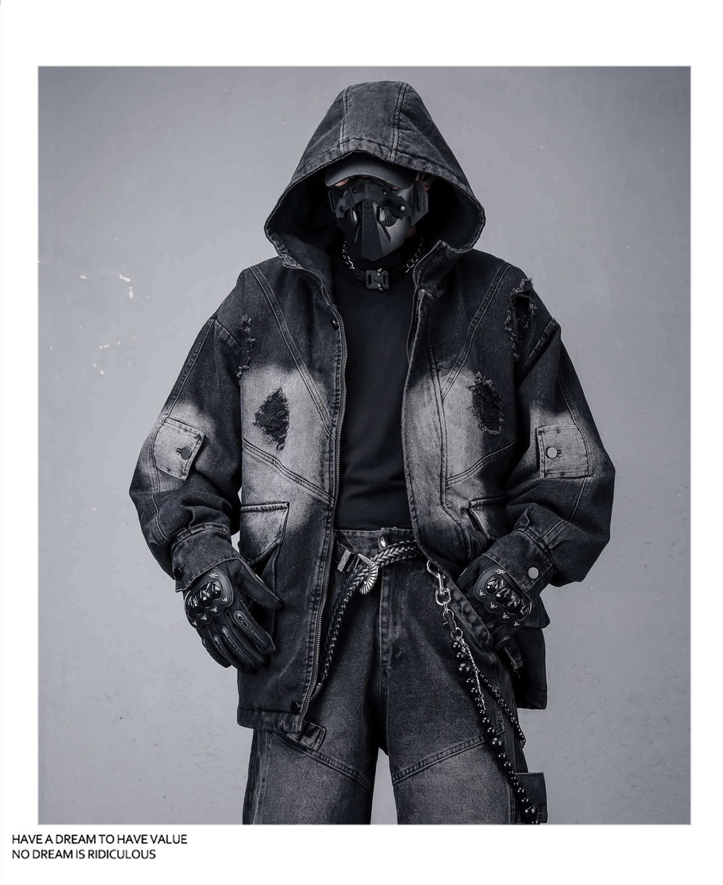 Heavy Wash Damage Hooded Denim Jacket WN22302
